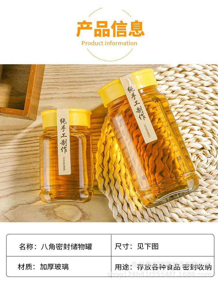 Compra Botella de miel octogonal al por mayor, botella de vidrio de 1 jin y 2 jin, botella de pepinillos, botella de mermelada, frasco de almacenamiento de alimentos sellado con tapa al por mayor en Joom.pro
