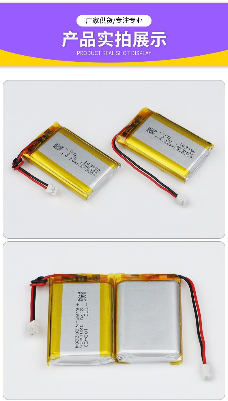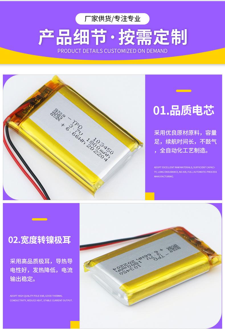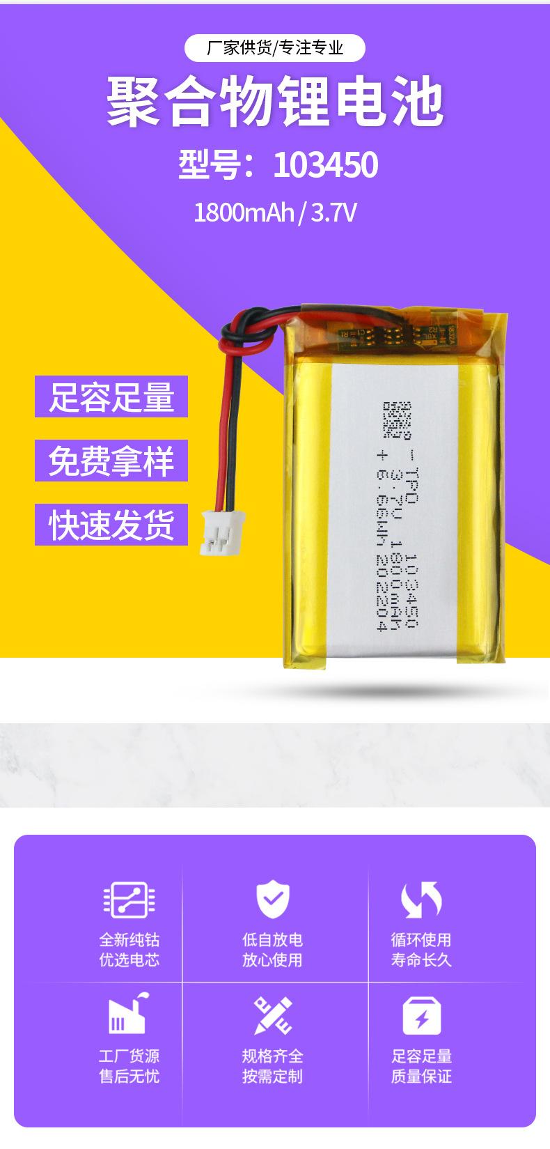 Batería de polímero de litio 103450 de 3,7 V, instrumento de belleza e hidratación, batería de litio de 1800 mAh y 2000 mAh.