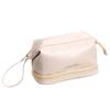 Pink PU double-layer cosmetic bag, Milk White PU Double Layer Cosmetic Bag