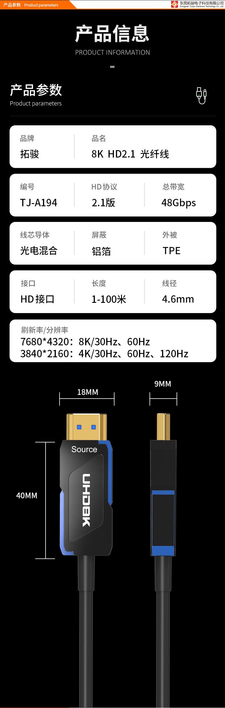 Hdmi2.1 fiber optic cable style 3