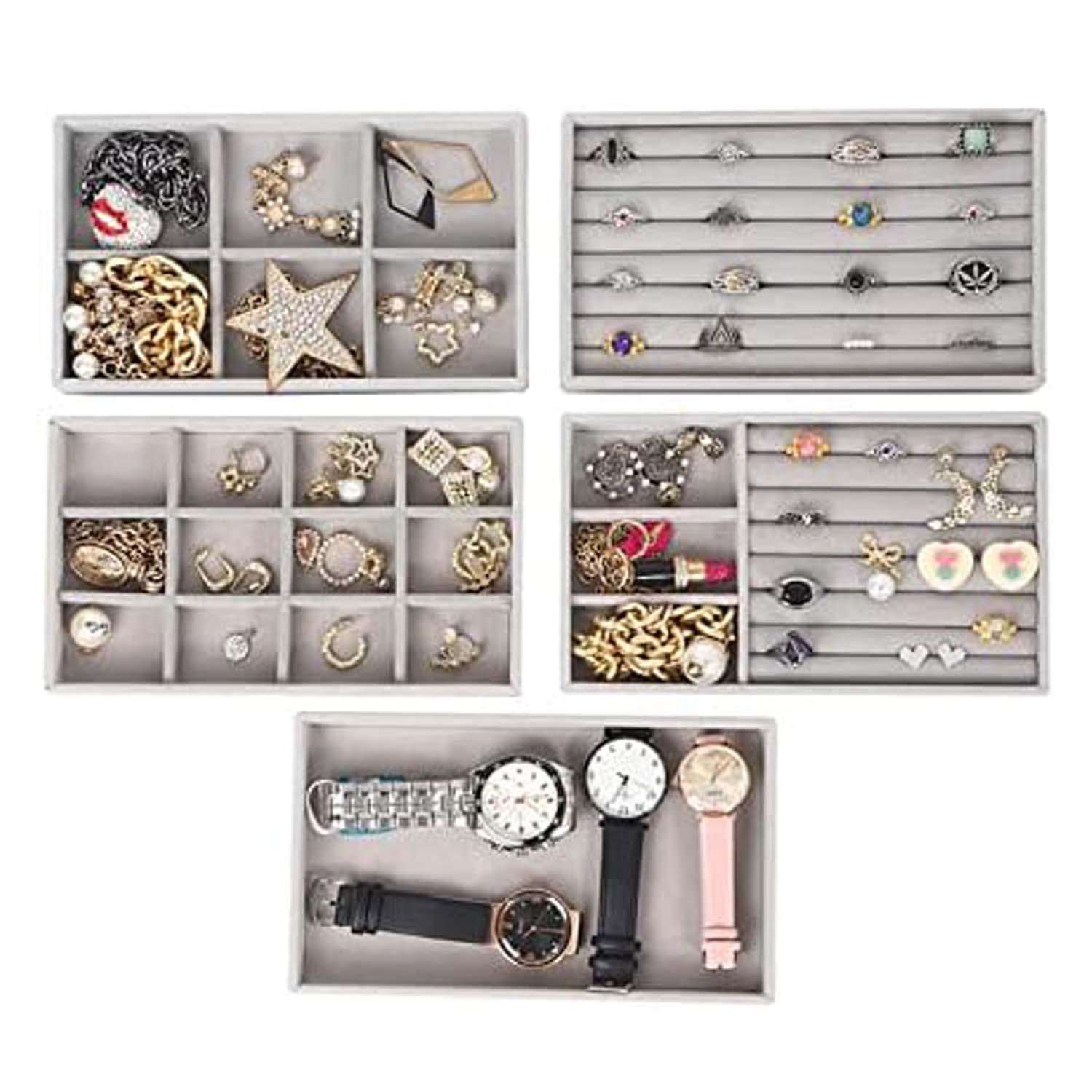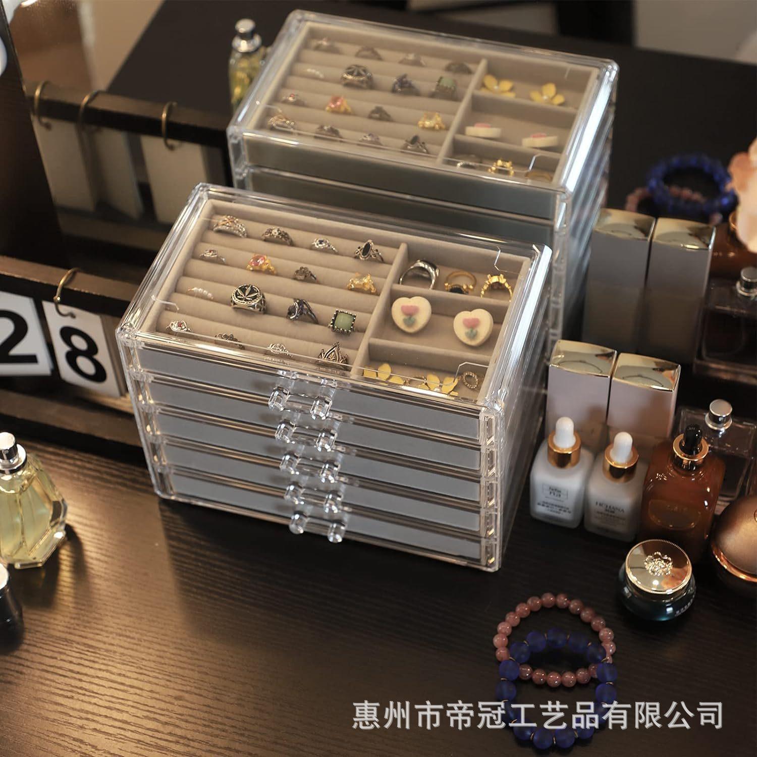 Joyero acrílico transparente con 5 cajones, apilable, de terciopelo, para pendientes, color gris