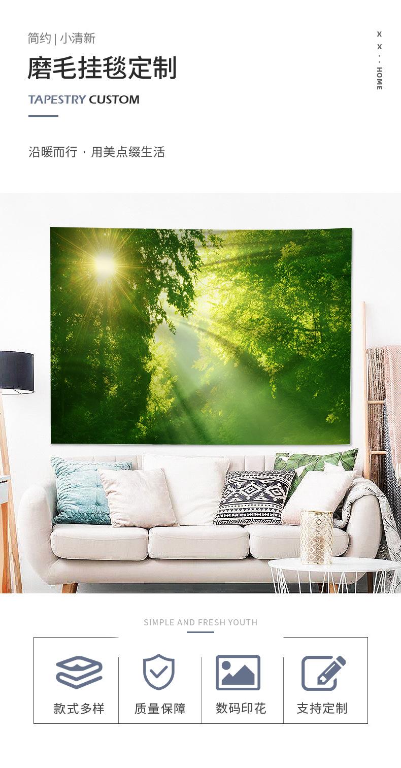 Tapiz con impresión digital de bosque, personalizado, fondo de tela, decoración para sala de estar, estudio, manta de playa, tela cepillada