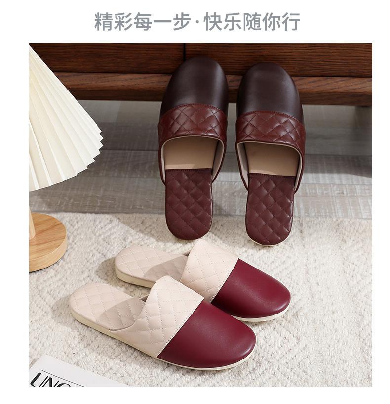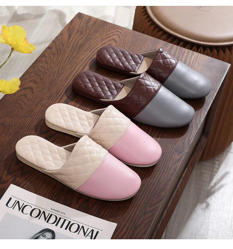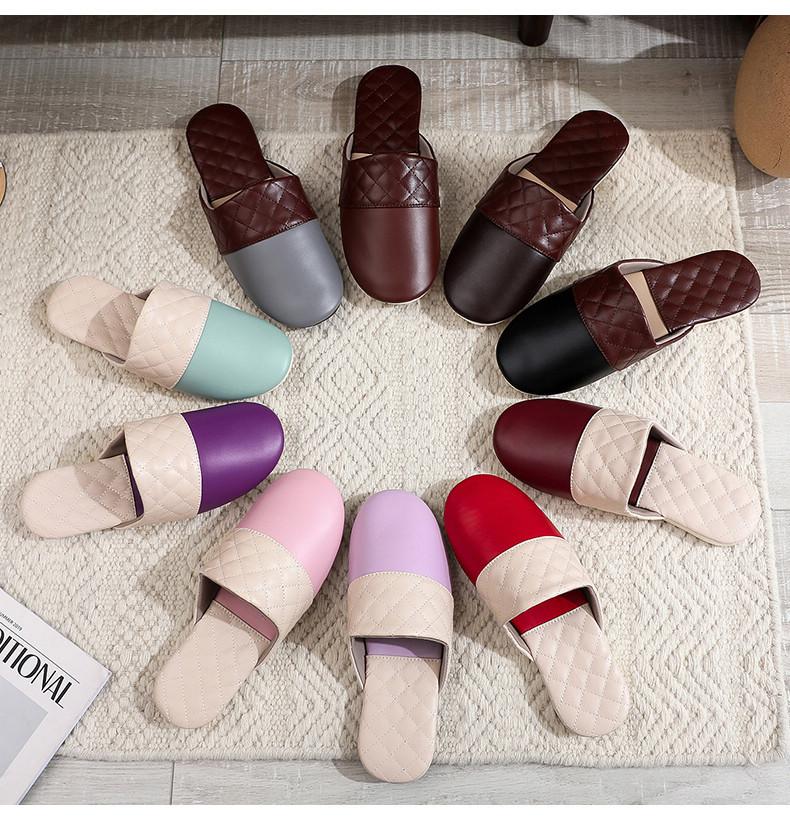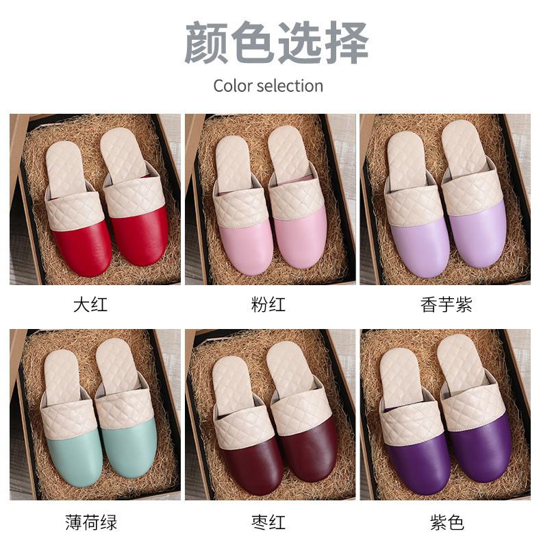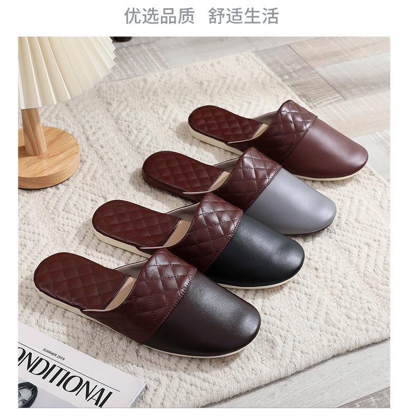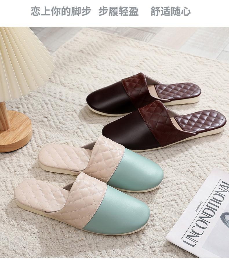 Pantuflas de Cuero de Primavera y Otoño para Mujer de Alta Gama para Oficina Pareja Hogar Interior Hogar Antideslizantes Cuatro Estaciones Pantuflas de Hogar al por Mayor