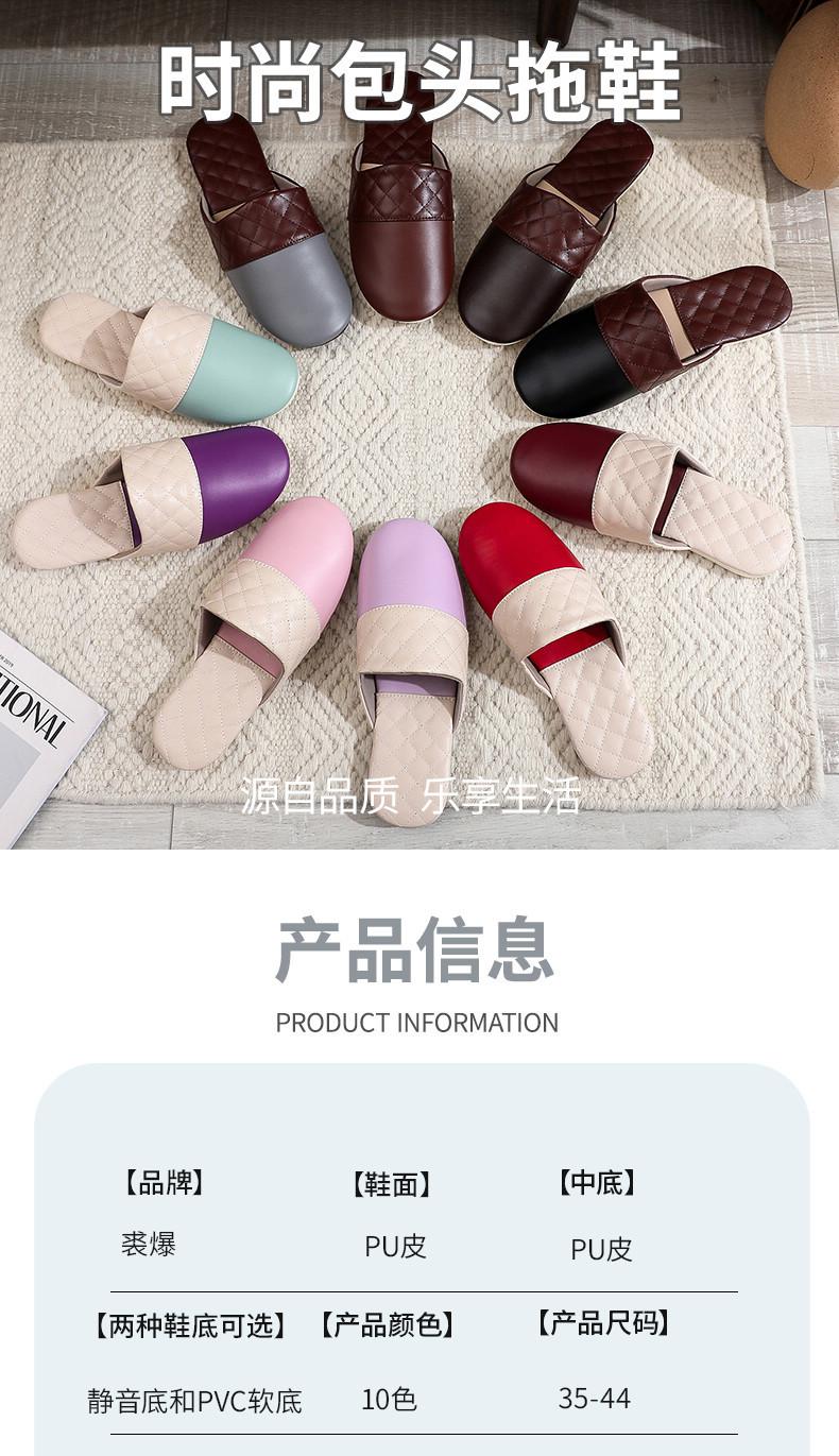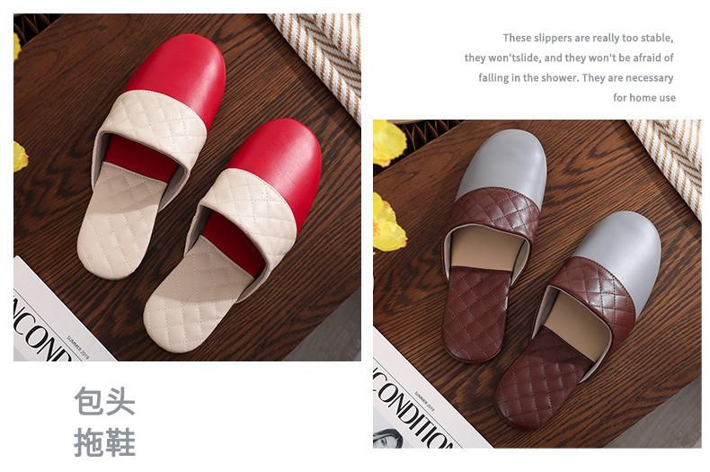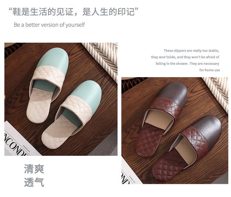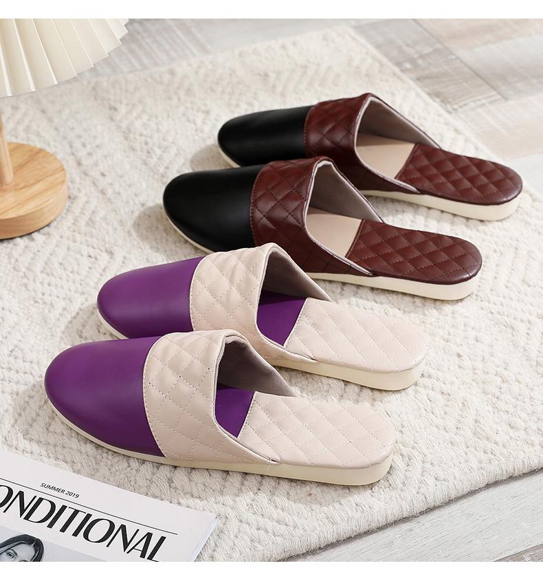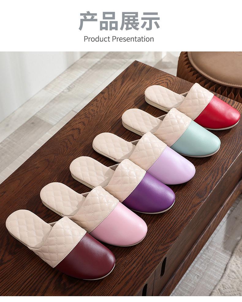 Pantuflas de Cuero de Primavera y Otoño para Mujer de Alta Gama para Oficina Pareja Hogar Interior Hogar Antideslizantes Cuatro Estaciones Pantuflas de Hogar al por Mayor