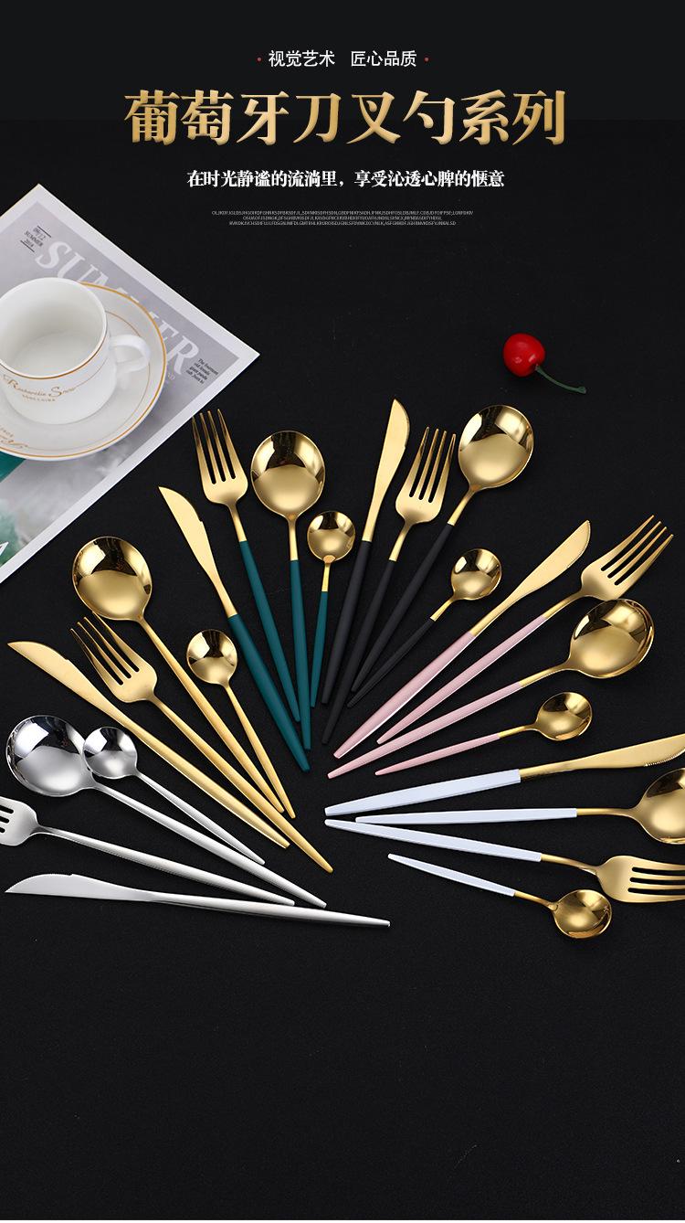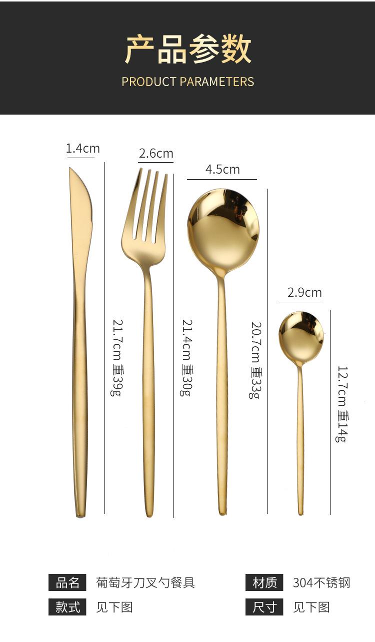 Vajilla de acero inoxidable 304 de Internet Celebrity, cuchillo y tenedor, cuchara, vajilla portuguesa, vajilla de hotel, juego de vajilla de comida occidental, cuchillo y tenedor para carne