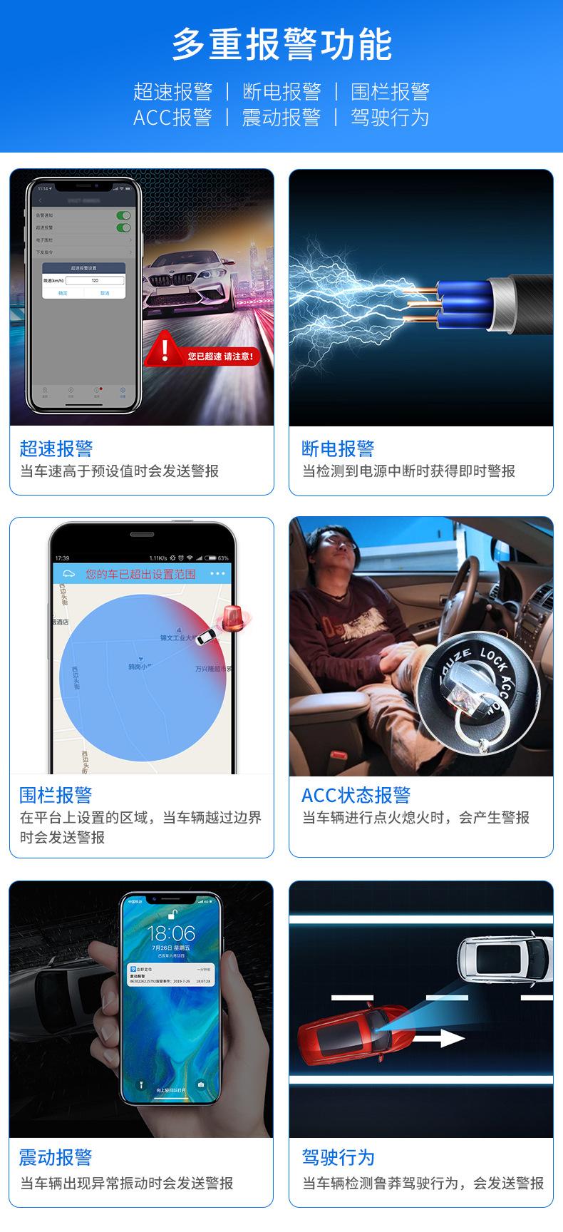 Vibration alarm, Power off alarm, Mobile alarm, Fence alarm, Super speed alarm