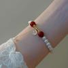 Pulsera de plata de ley S925 con perlas de jade hetian y frijol rojo, estilo chino vintage de nicho, de alta gama y personalidad. Nuevo estilo.