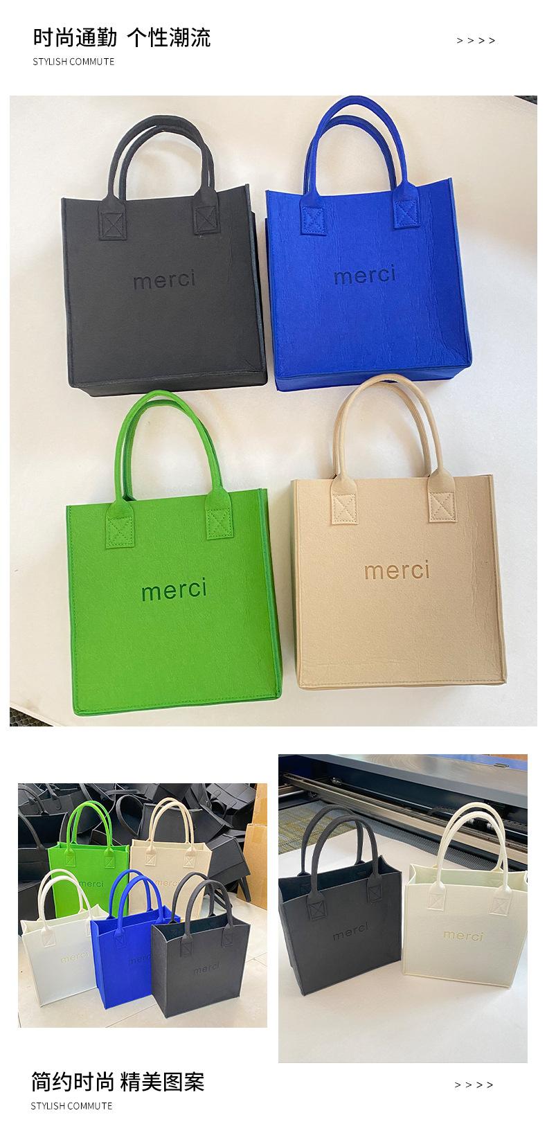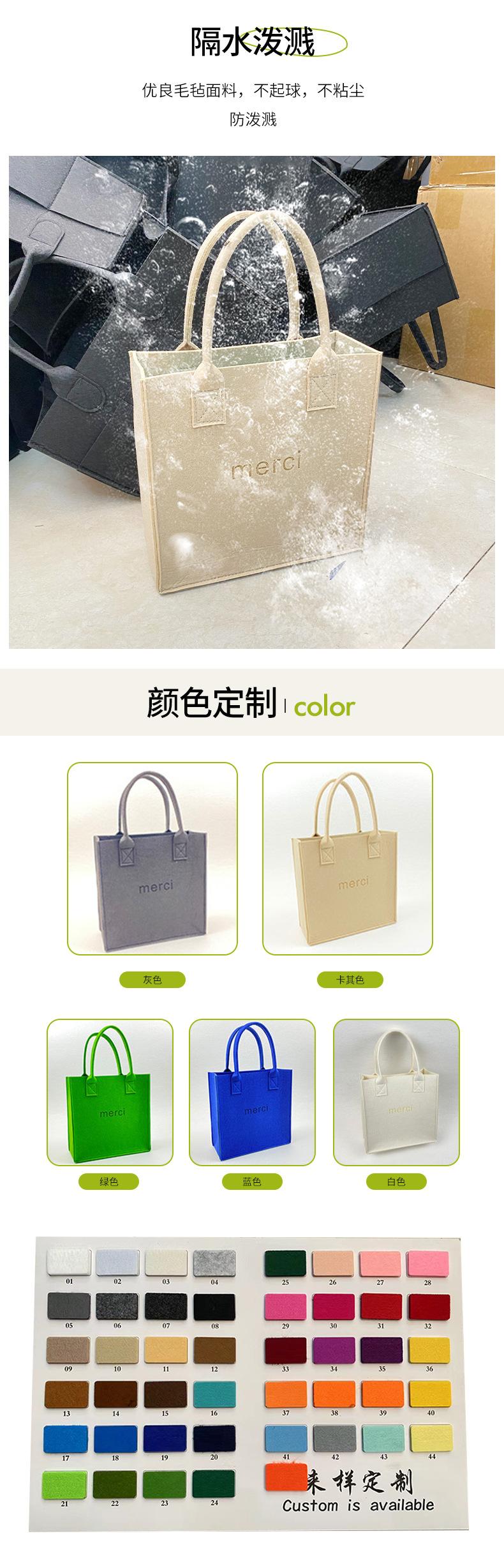 Bolsa de Compras de Fieltro de Gran Capacidad Procesamiento Personalizado Bolso de Mano de Moda con Letras Diversos Colores Bolso de Mano de Fieltro