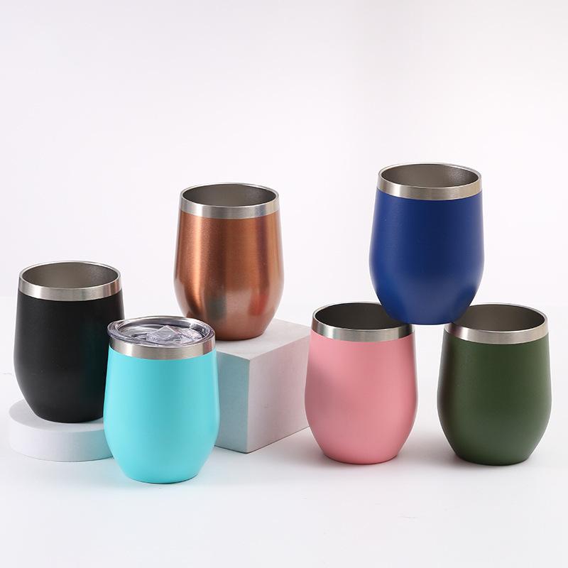 Taza térmica de acero inoxidable 304 de 12 oz para huevos, de color sólido, simple, de doble capa, ideal para el hogar, ideal para vino tinto.