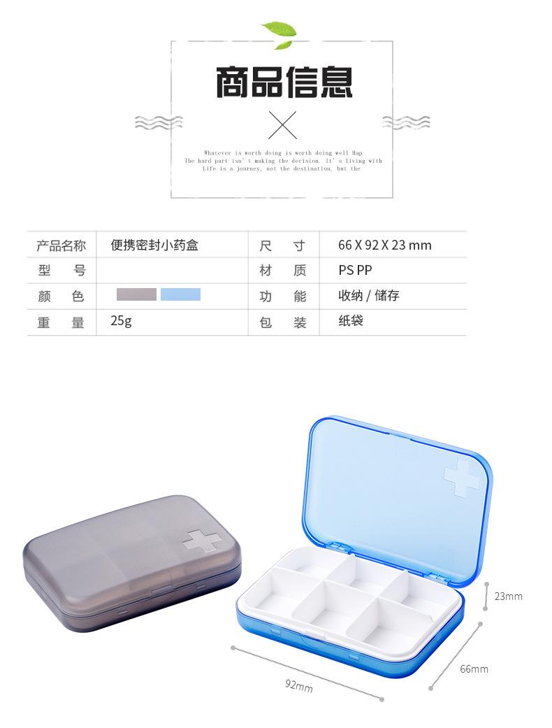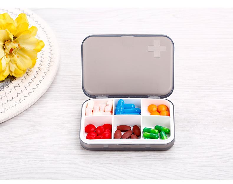 Nombre del producto: Pastillero portátil sellado de seis compartimentos