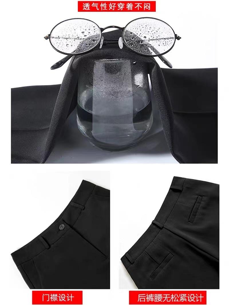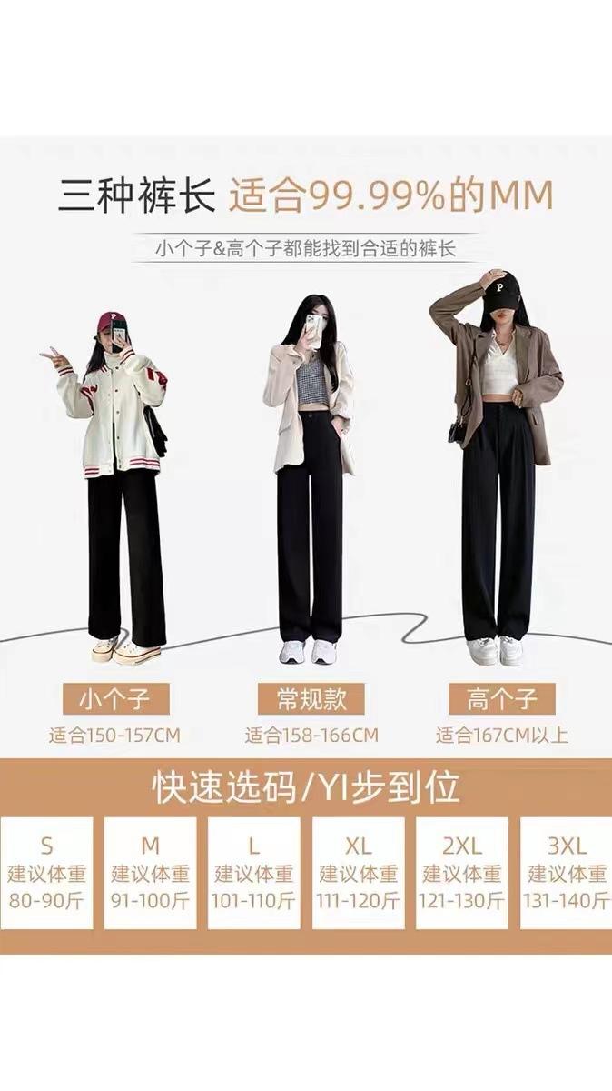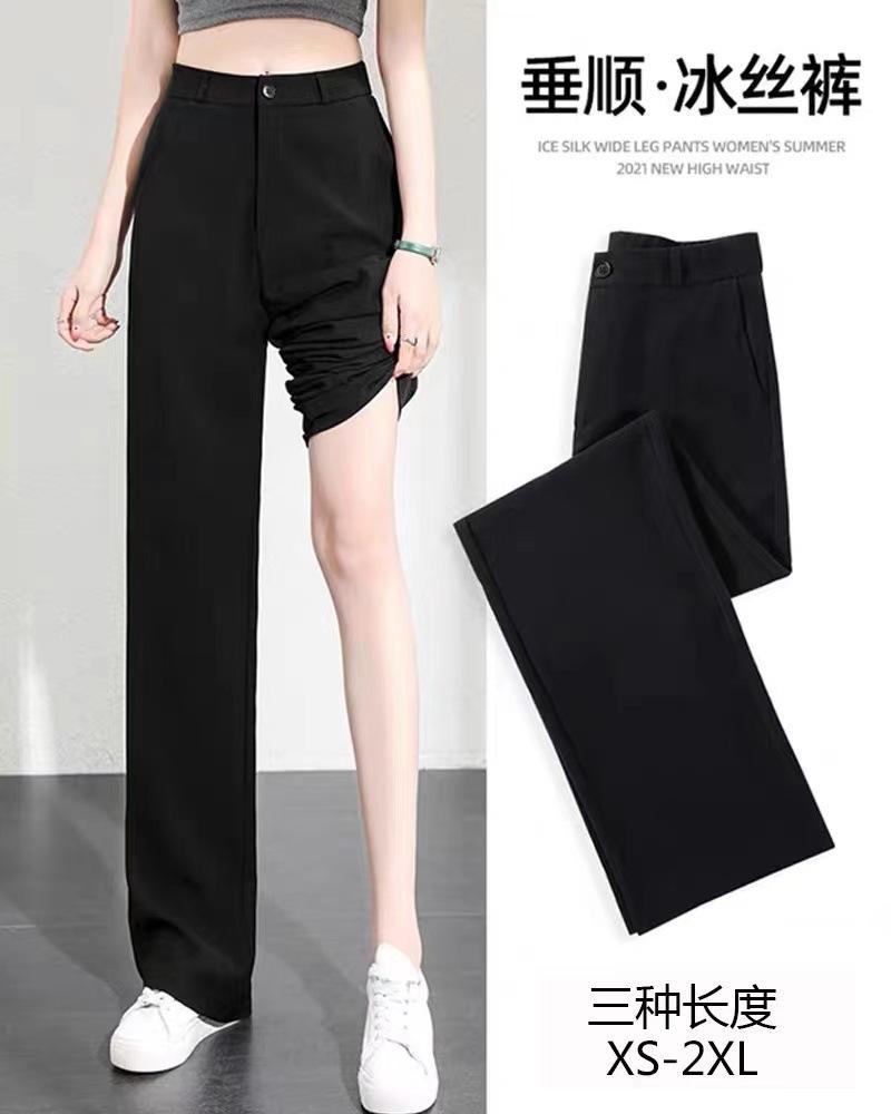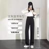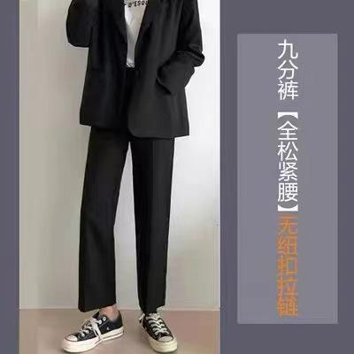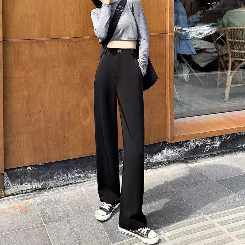 Compra Pantalones de traje para mujer Primavera y Otoño 2024 Nuevos Pantalones rectos estrechos negros de cintura alta drapeados casuales de pierna ancha pequeña al por mayor en Joom.pro