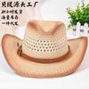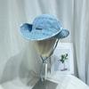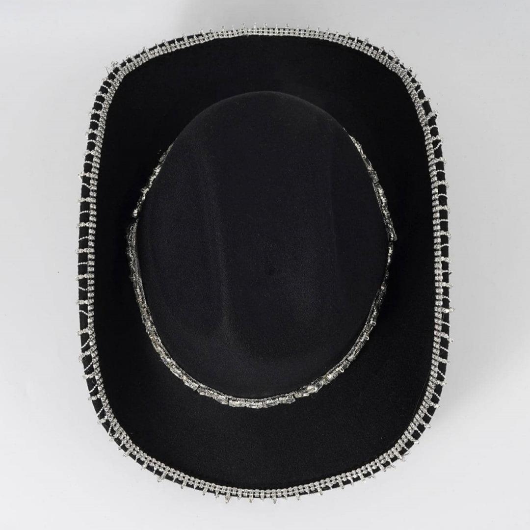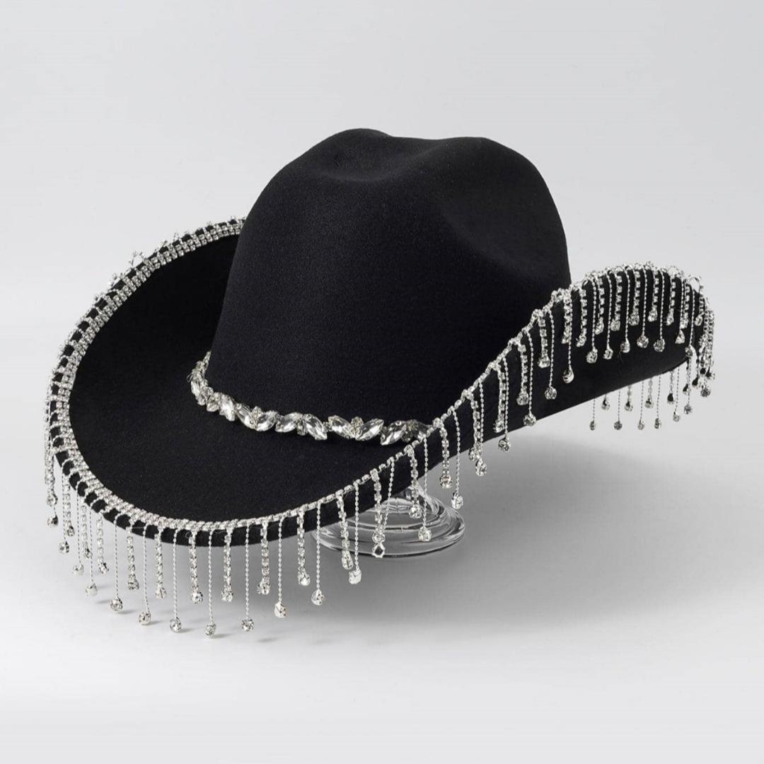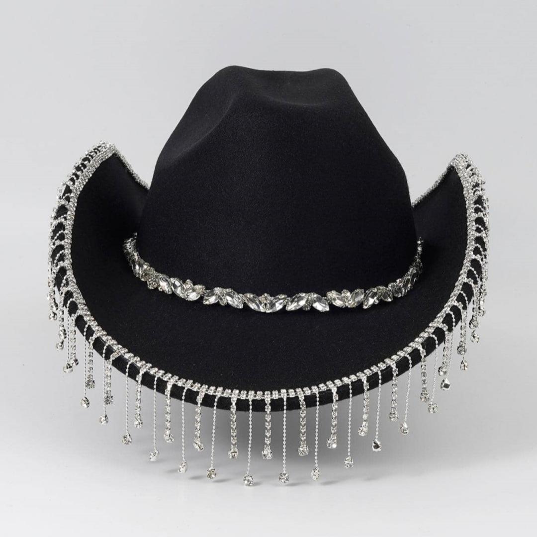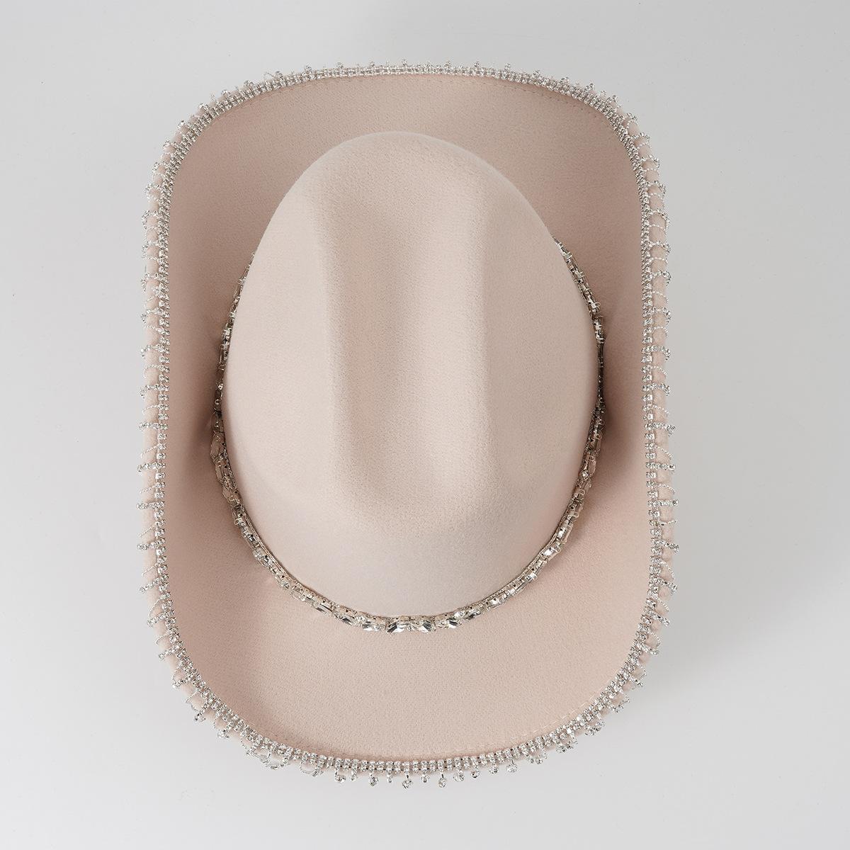Sombrero vaquero occidental para hombre y mujer, sombrero para exteriores, nueva moda, protector solar, sombrero de jazz de ala grande, cadena de metal con diamantes.