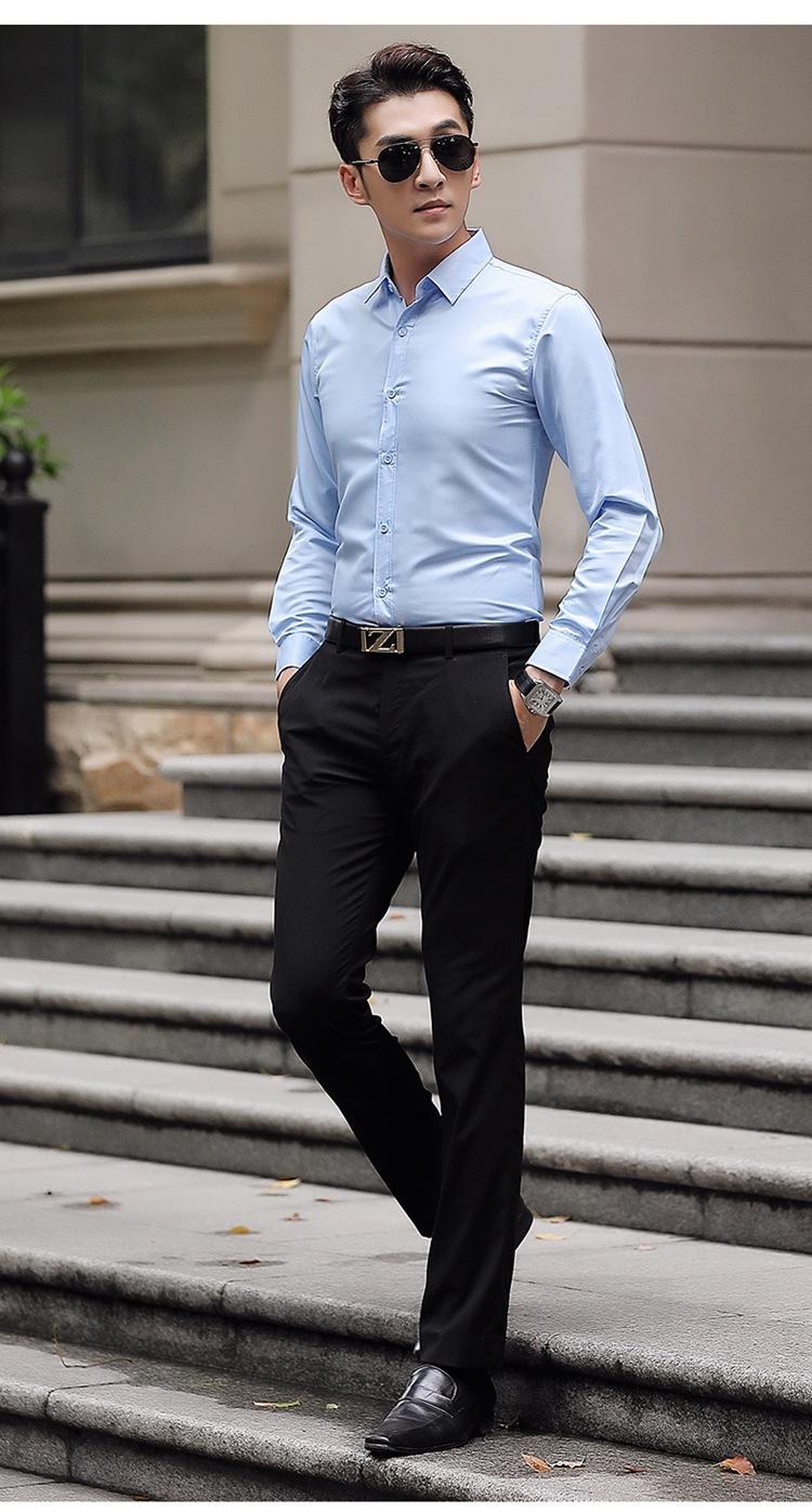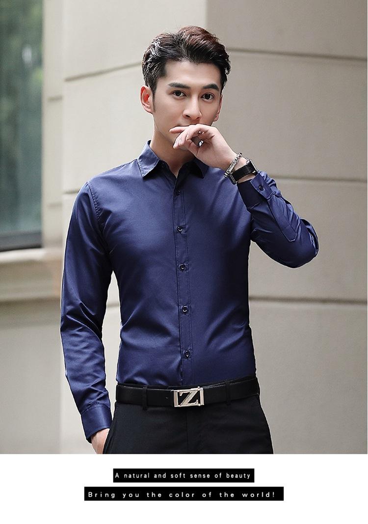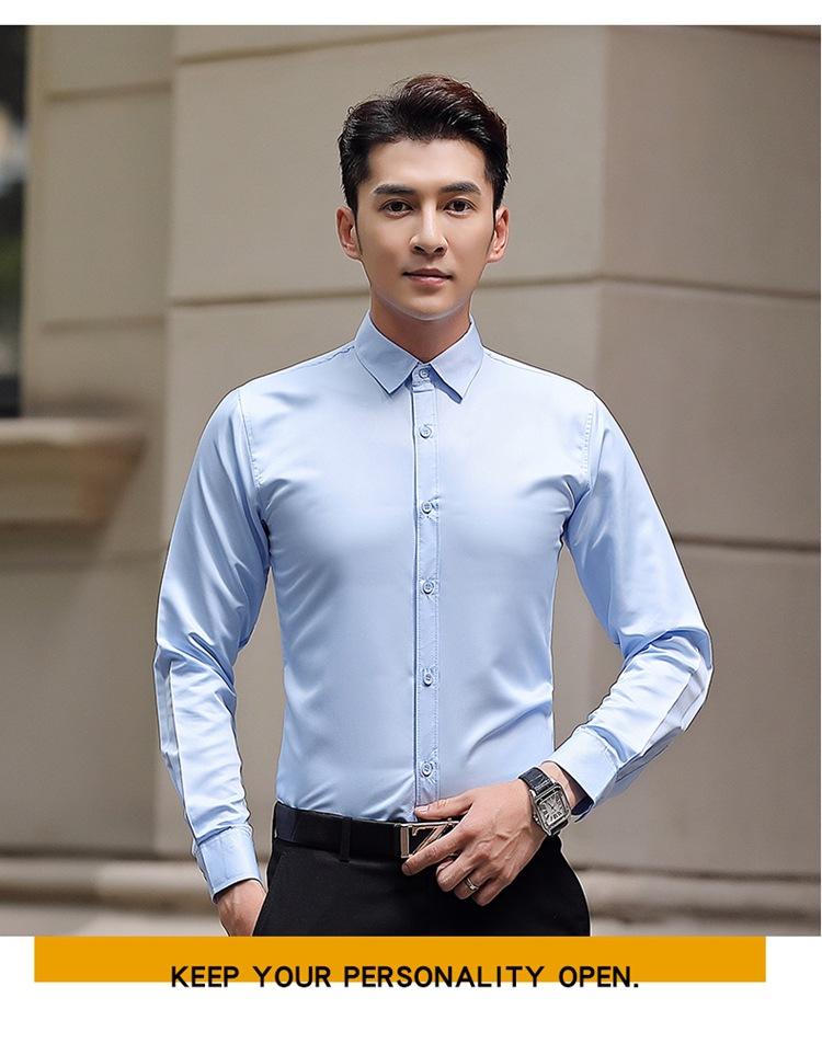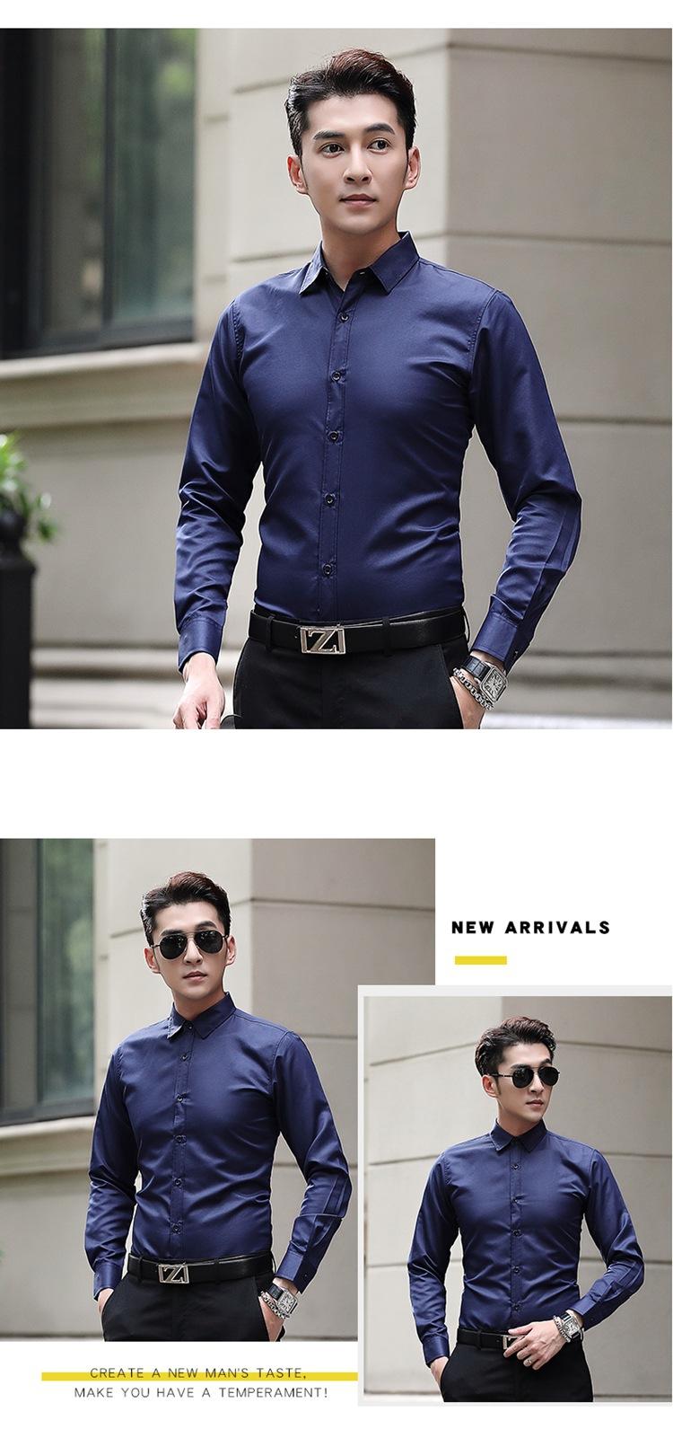 Camisa de negocios, camisa de manga larga para hombre, primavera 2021, nueva camisa de color puro para hombre, camisa profesional para hombre de negocios.