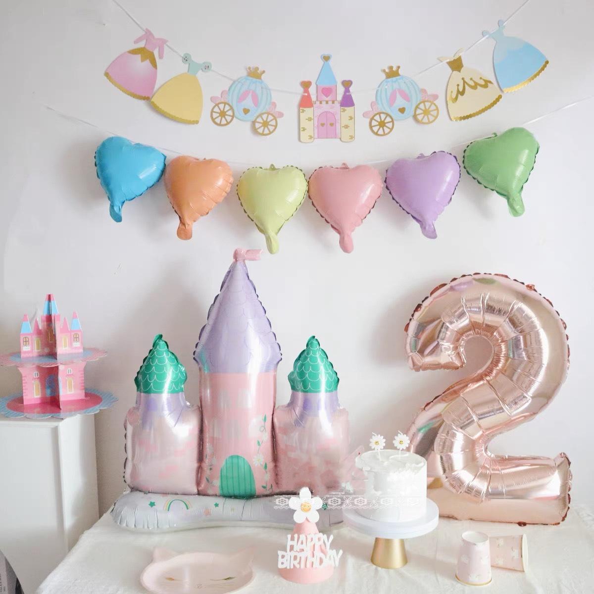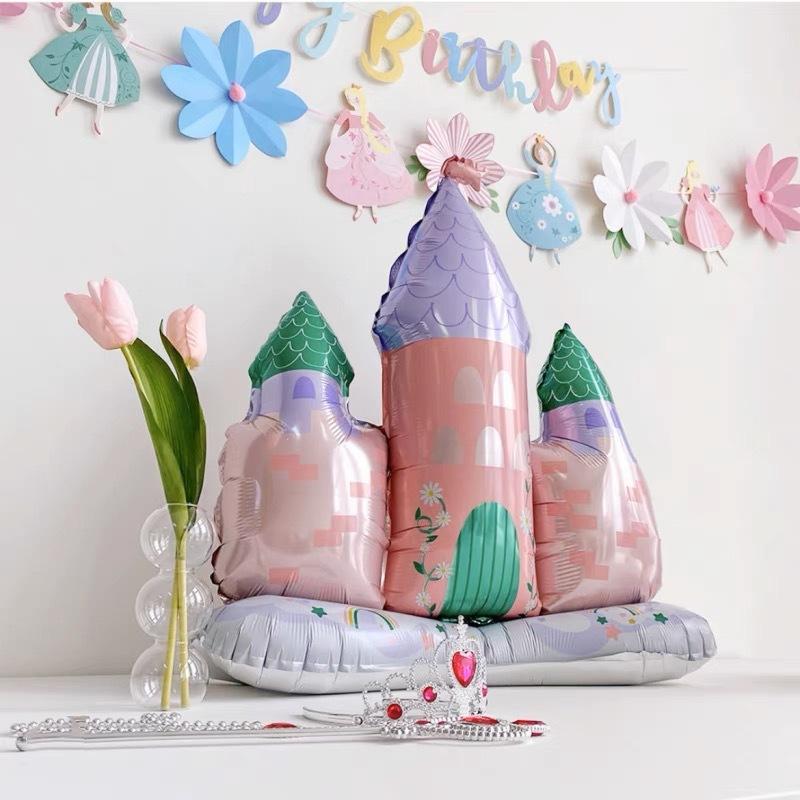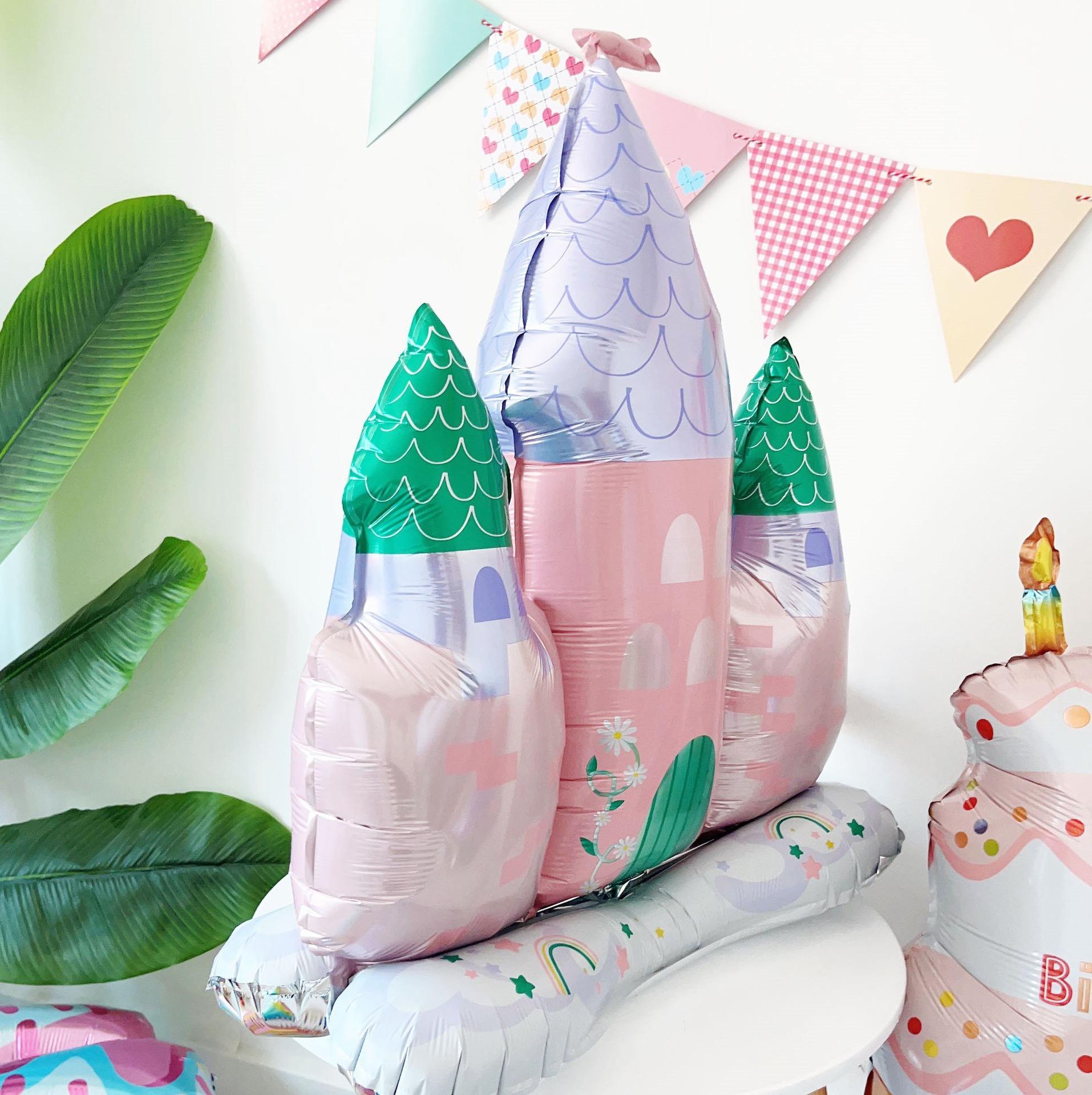 Base fantasy castle balloon, Pink and purple princess castle, Base wedding cake balloon, Base pink gold birthd...