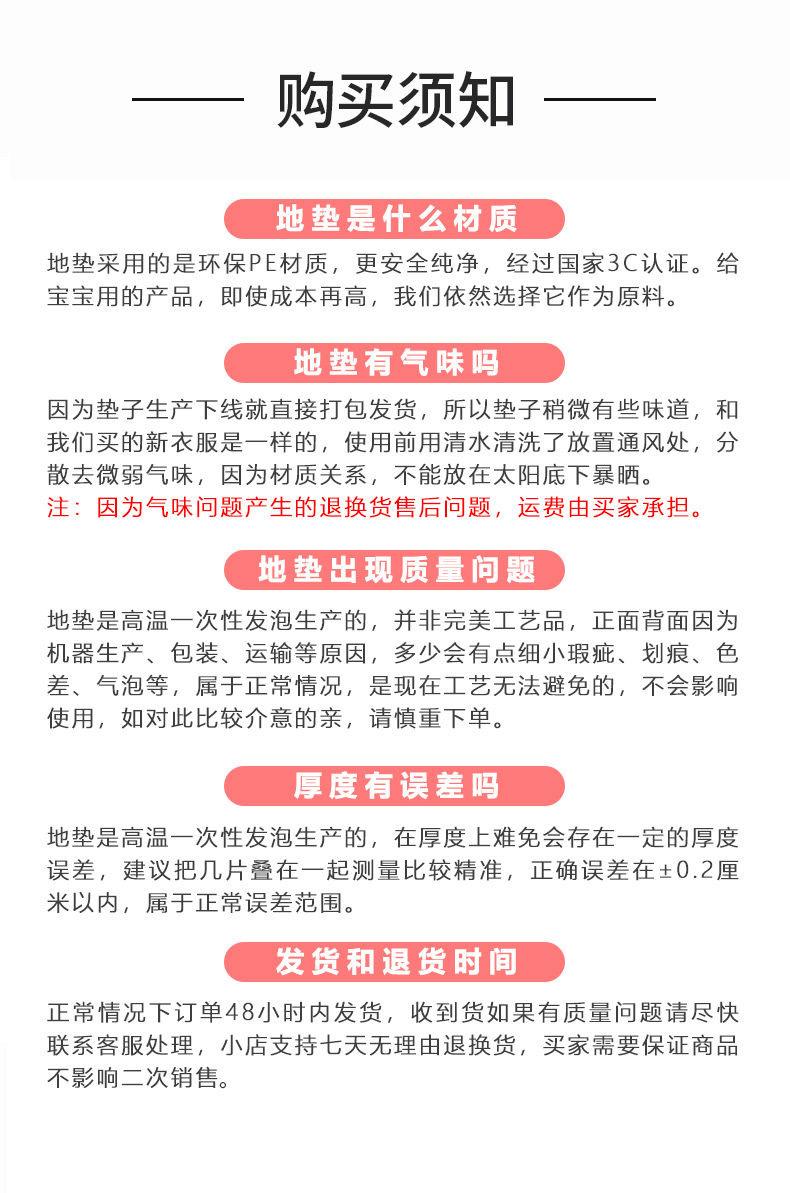 ⑧ En el enlaceLos productos de segunda calidad se seleccionan manualmente de los productos de primera calidad., productos con defectos, como marcas de quemaduras, rayones, poros, diferencia de color, etc., los defectos son diversos, no hay fotos específicas y se producen en el mismo lote que los productos de primera clase. La calidad es ligeramente inferior, lo que afecta la apariencia pero no afecta el uso para empalmar. Tiene una alta relación costo-beneficio y se utiliza ampliamente en casas de alquiler, empresas de decoración, estudios de danza, cojines de suelo, personas que buscan rentabilidad, etc. Si le importa, compre los productos de primera clase. Gracias por su comprensión.