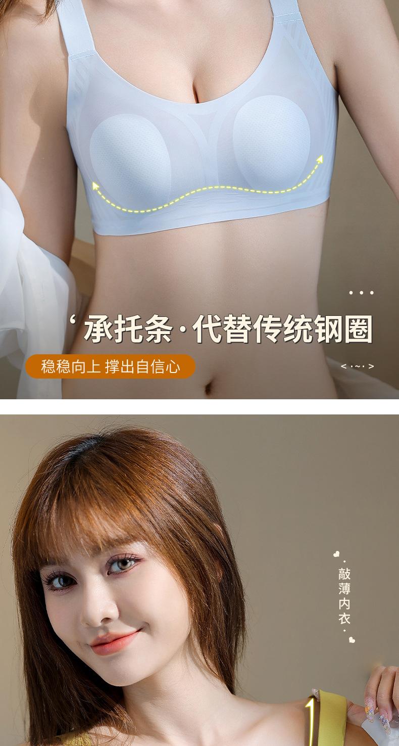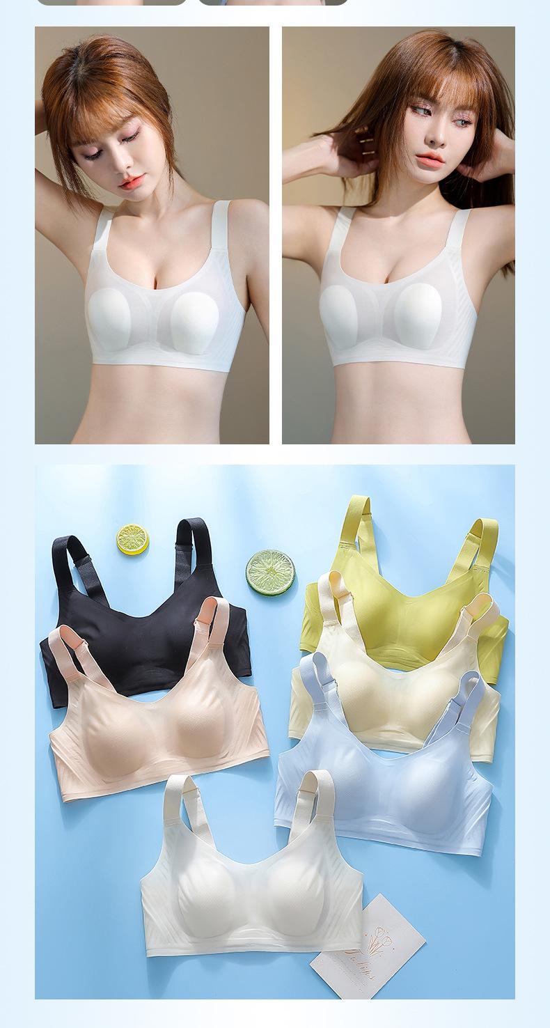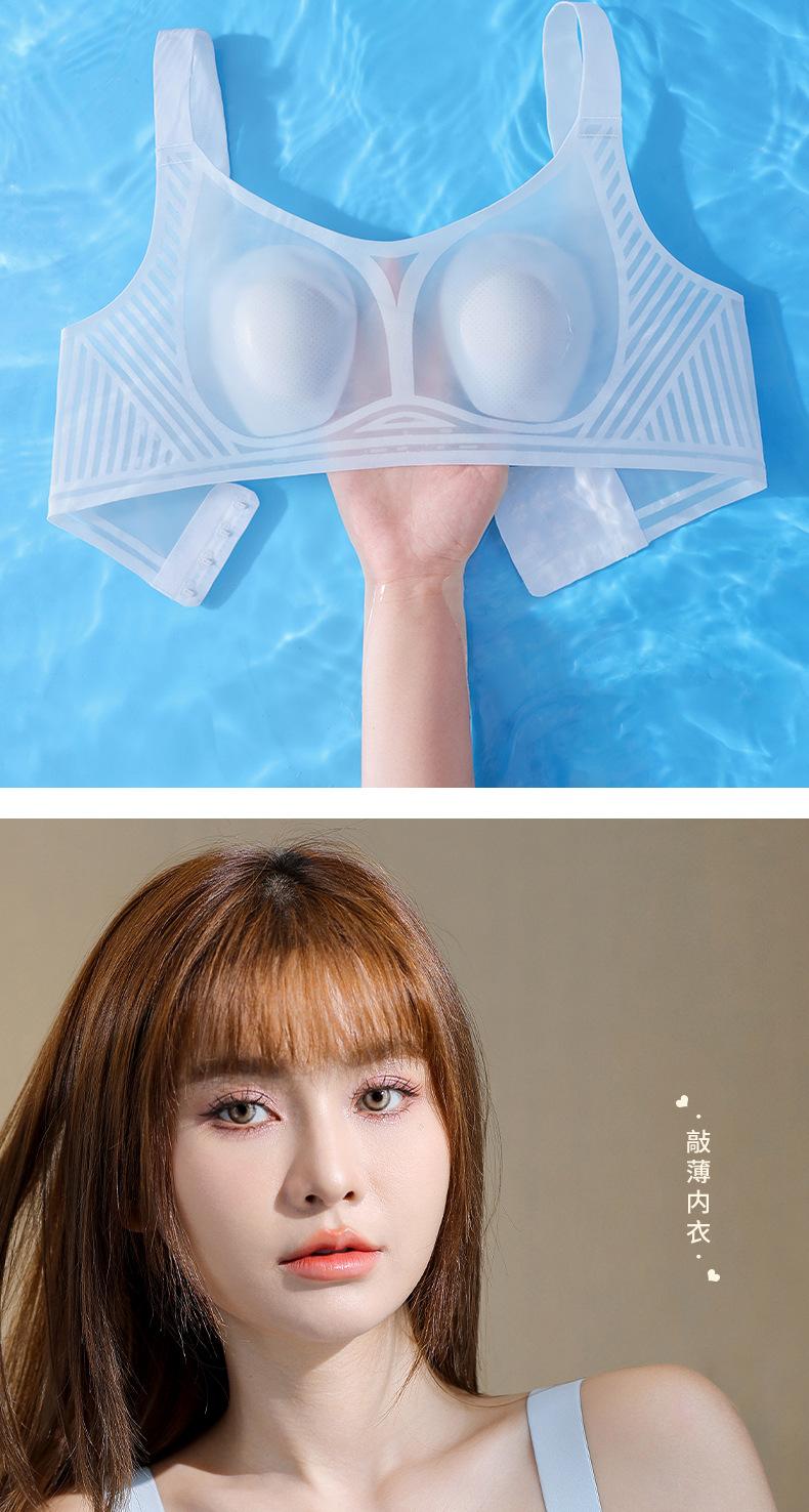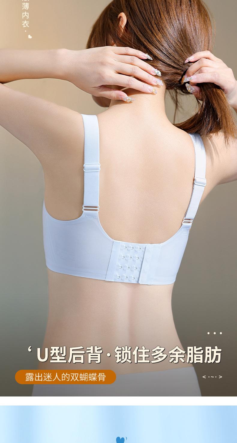 Nuevo sujetador ligero y fino sin costuras en forma de U con espalda sin aro de acero, soporte suave, fruncido, pecho grande, sujetador pequeño ajustable