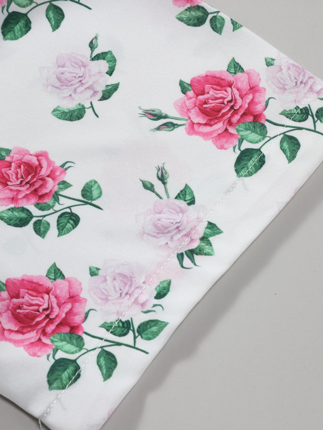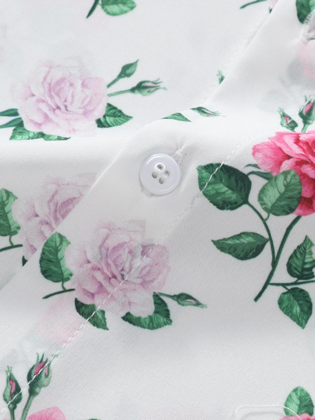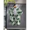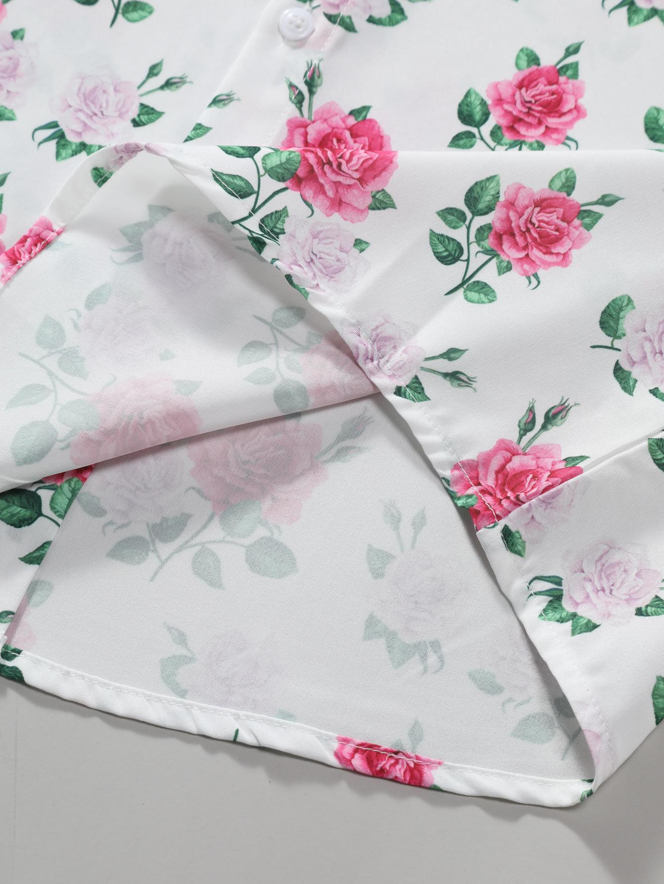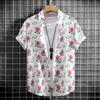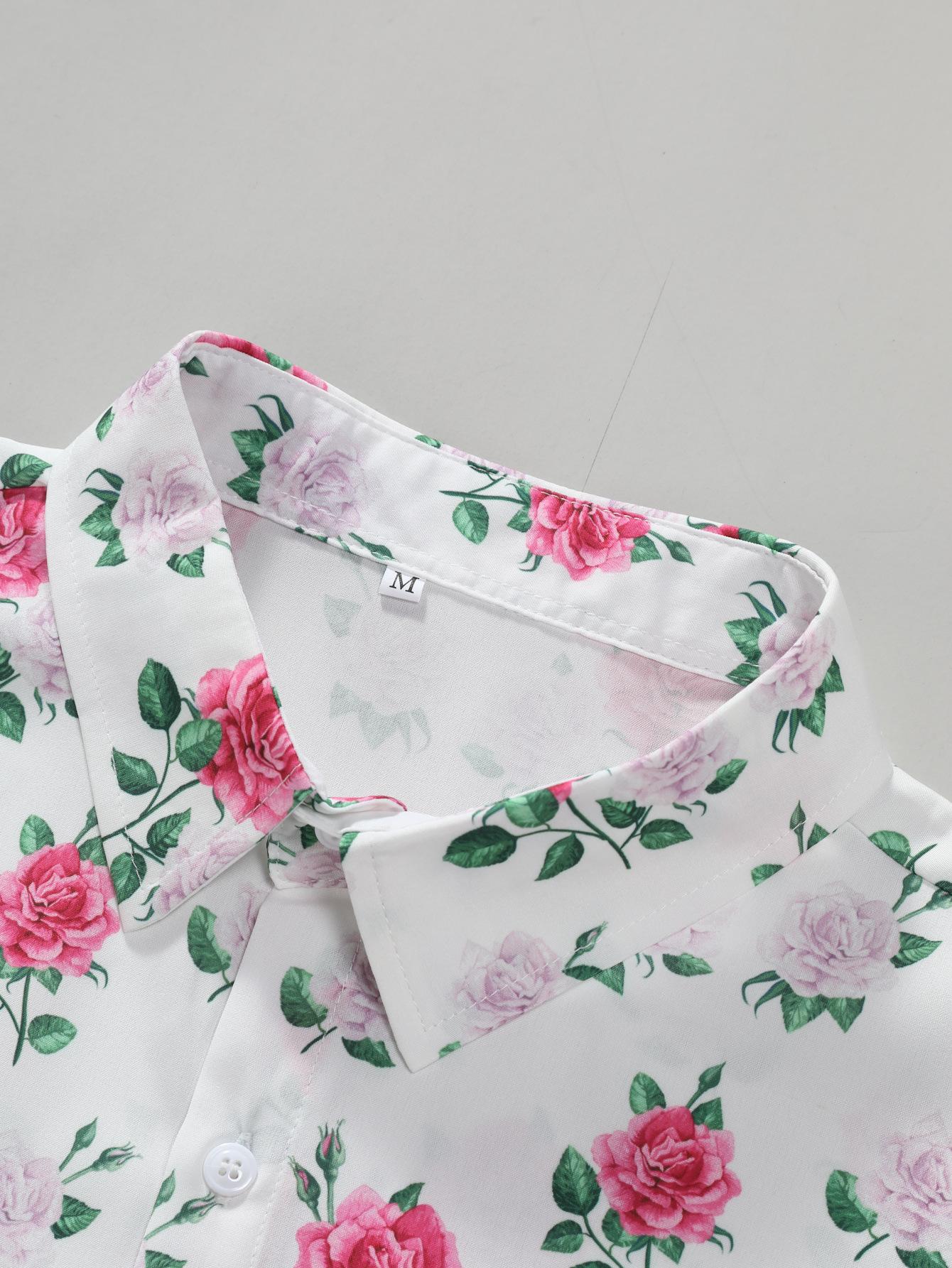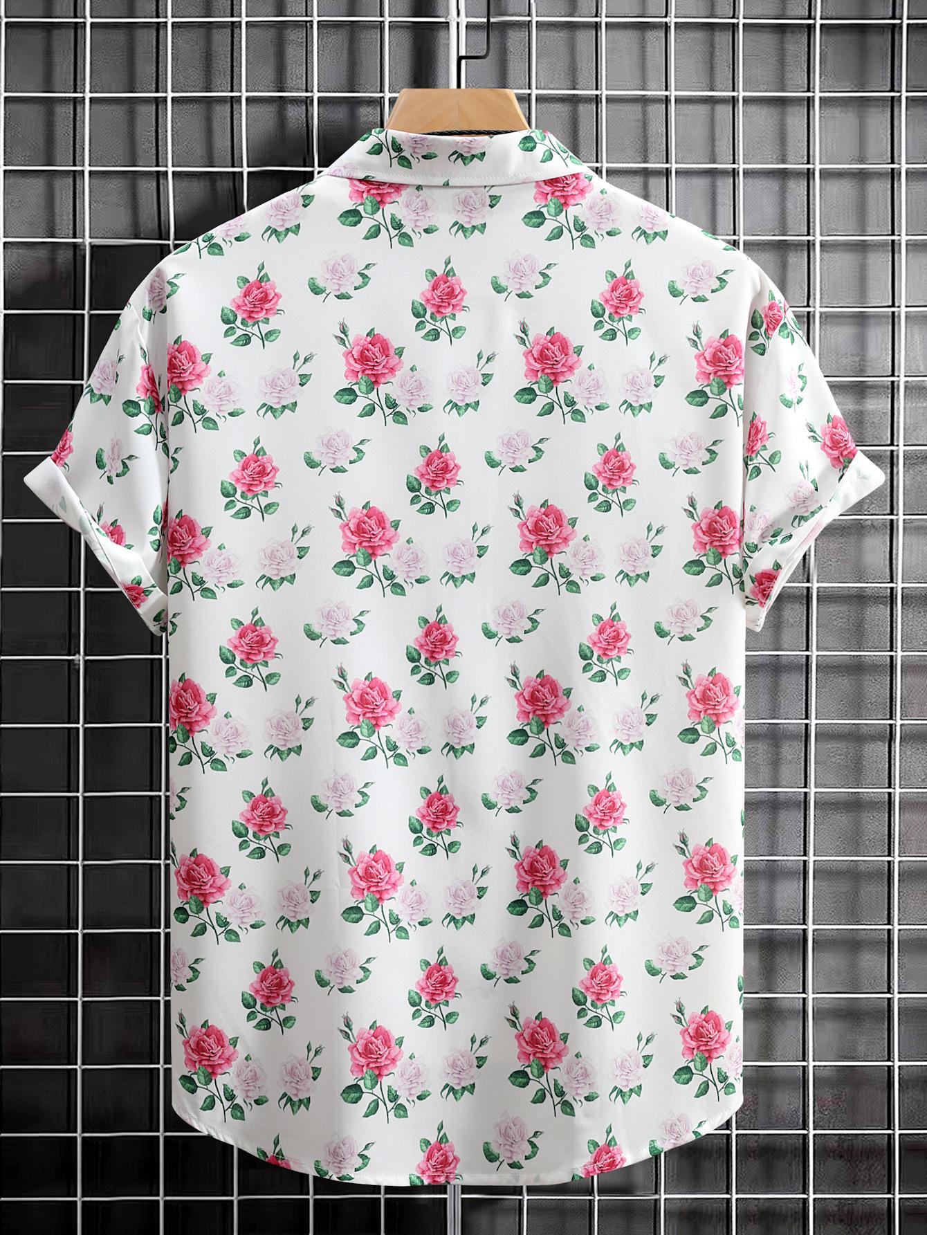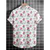 Camisa de manga corta de verano para hombre, estilo casual, moderna, con estampado floral digital blanco.