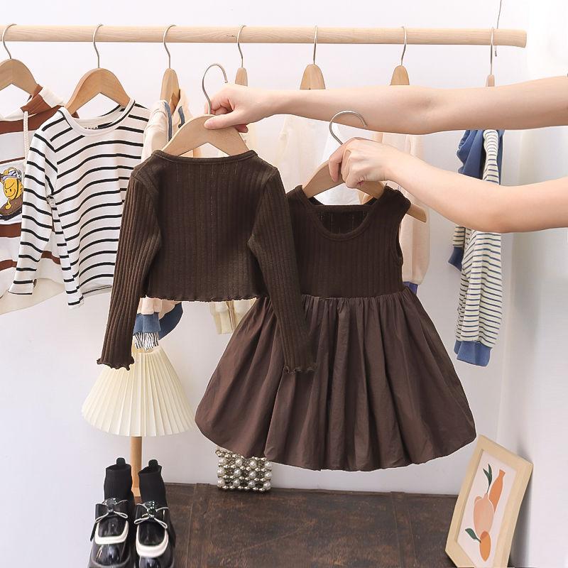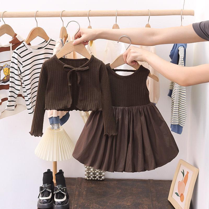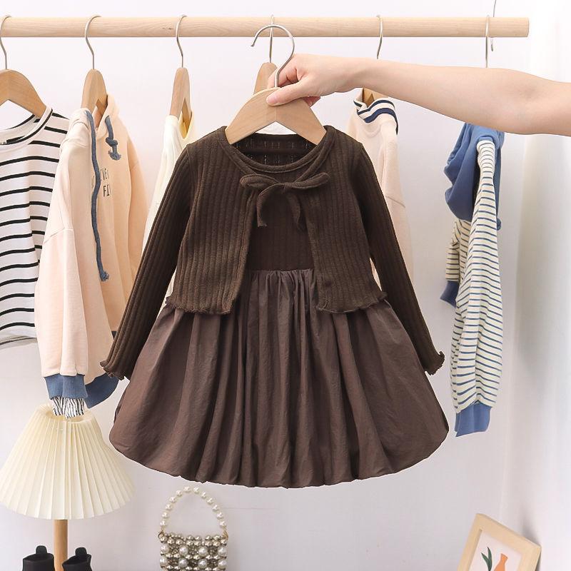 Ropa infantil 2023 primavera y otoño vestido de niña traje de bebé niña cárdigan de punto de manga larga falda de capullo de flores pettiskirt moda
