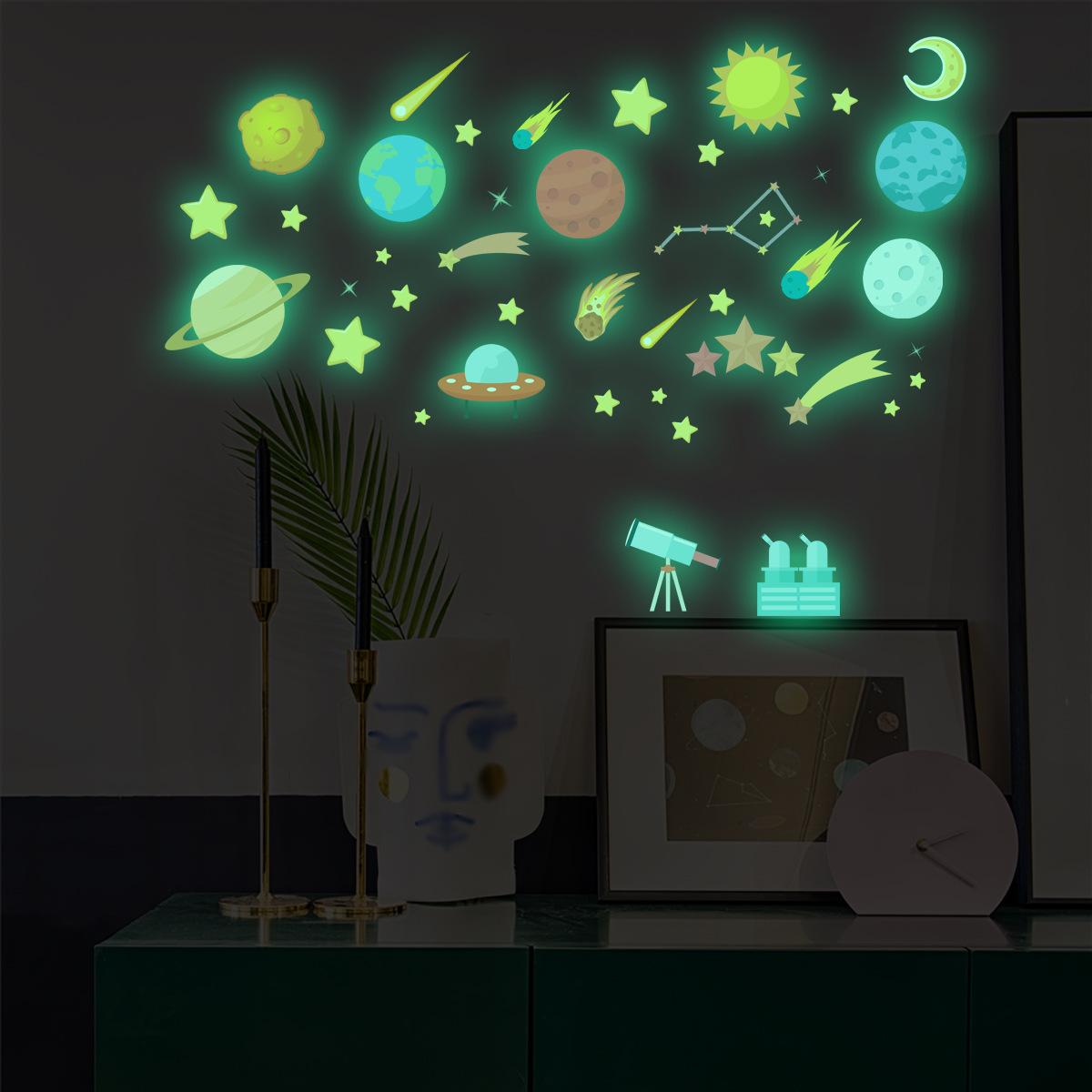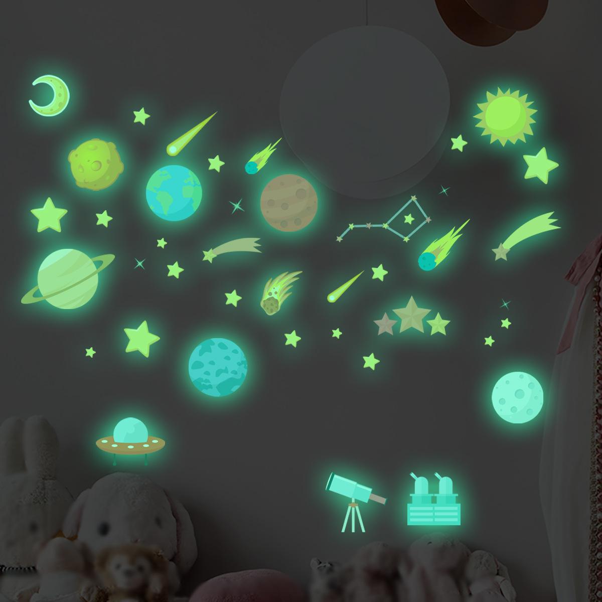 HP-YG033 Pegatinas luminosas transfronterizas de estrellas y luna para habitación infantil, pegatinas decorativas luminosas, autoadhesivas fluorescentes