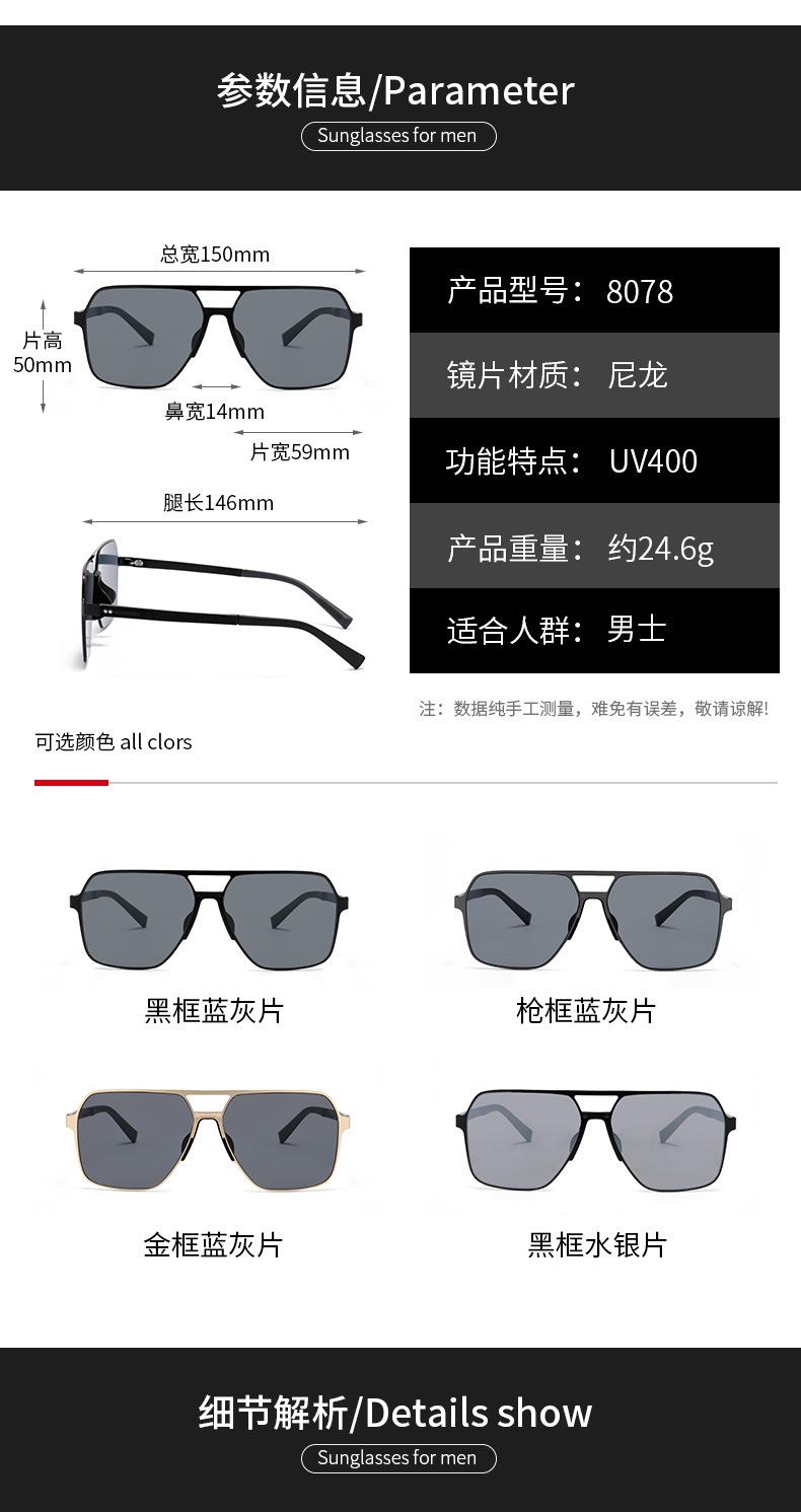 B8078 Gafas de sol polarizadas para hombre, gafas de sol de nailon, gafas de sapo cuadradas de doble haz, nuevas gafas de Tiktok Live 2022