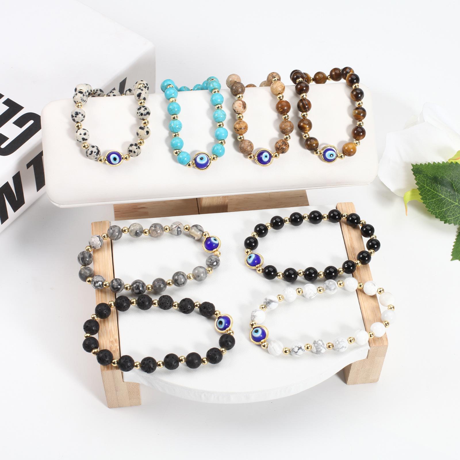 Comercio exterior transfronterizo exclusivo 8 cm ojo mágico vidrio piedra natural pulsera pulsera elástica con cuentas ajustable en stock venta al por mayor