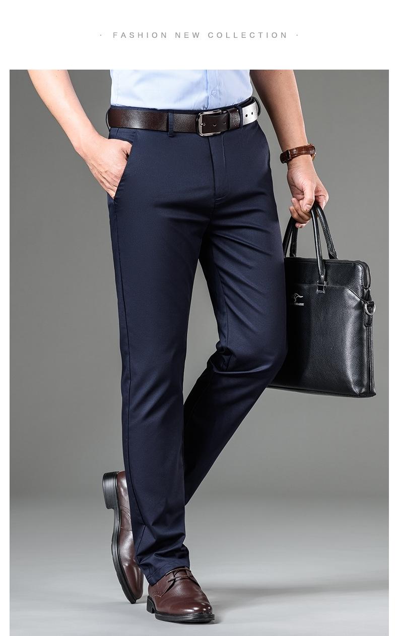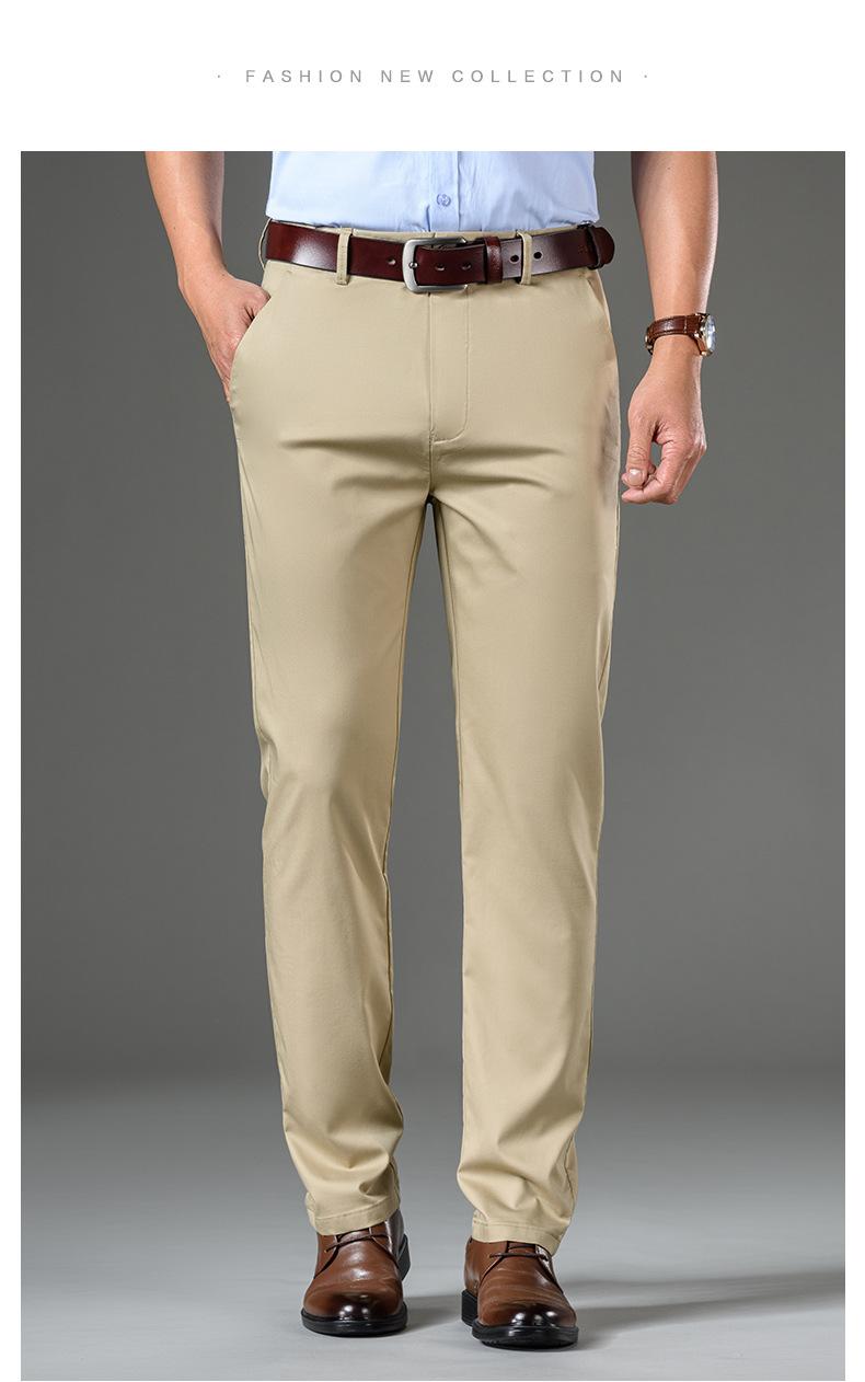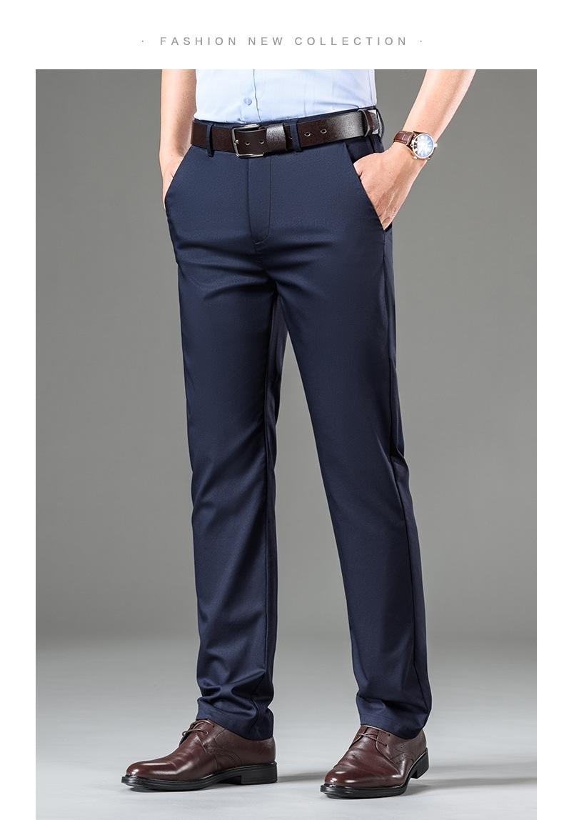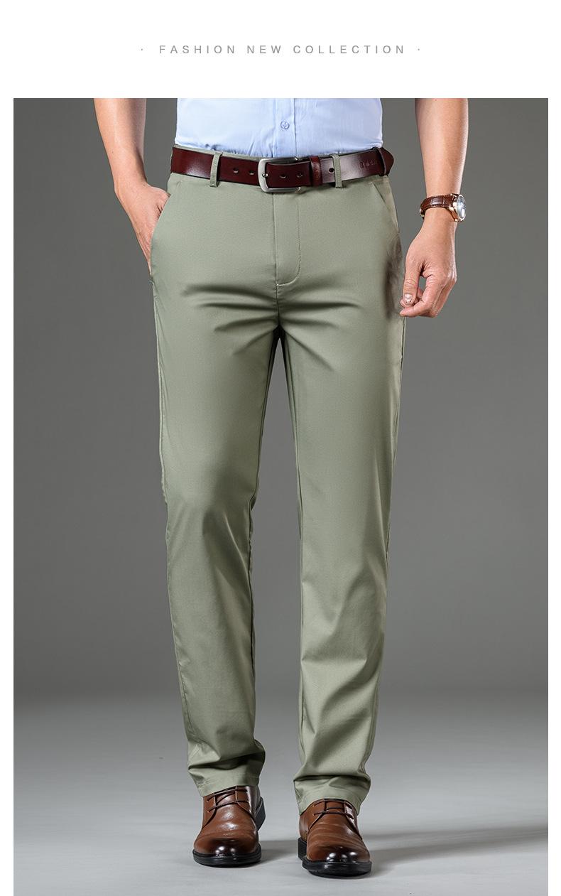 Compra Pantalones casuales de seda de hielo para hombre, pantalones de negocios de primavera y verano, nuevos pantalones rectos de cintura alta, pantalones suaves al por mayor, sueltos, elásticos y delgados al por mayor en Joom.pro