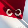 Pendientes de perlas de dos piezas estilo Chanel, pendientes de perlas de aguja plateada, diseño de nicho, pendientes ligeros de lujo de alta calidad, encantadores