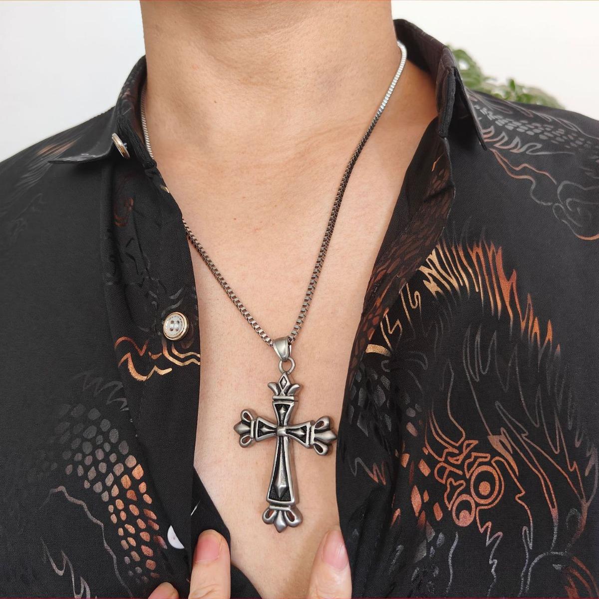 Joyería retro europea y americana colgante de cruz de acero inoxidable de alta calidad collar personalizado para hombre accesorios al por mayor