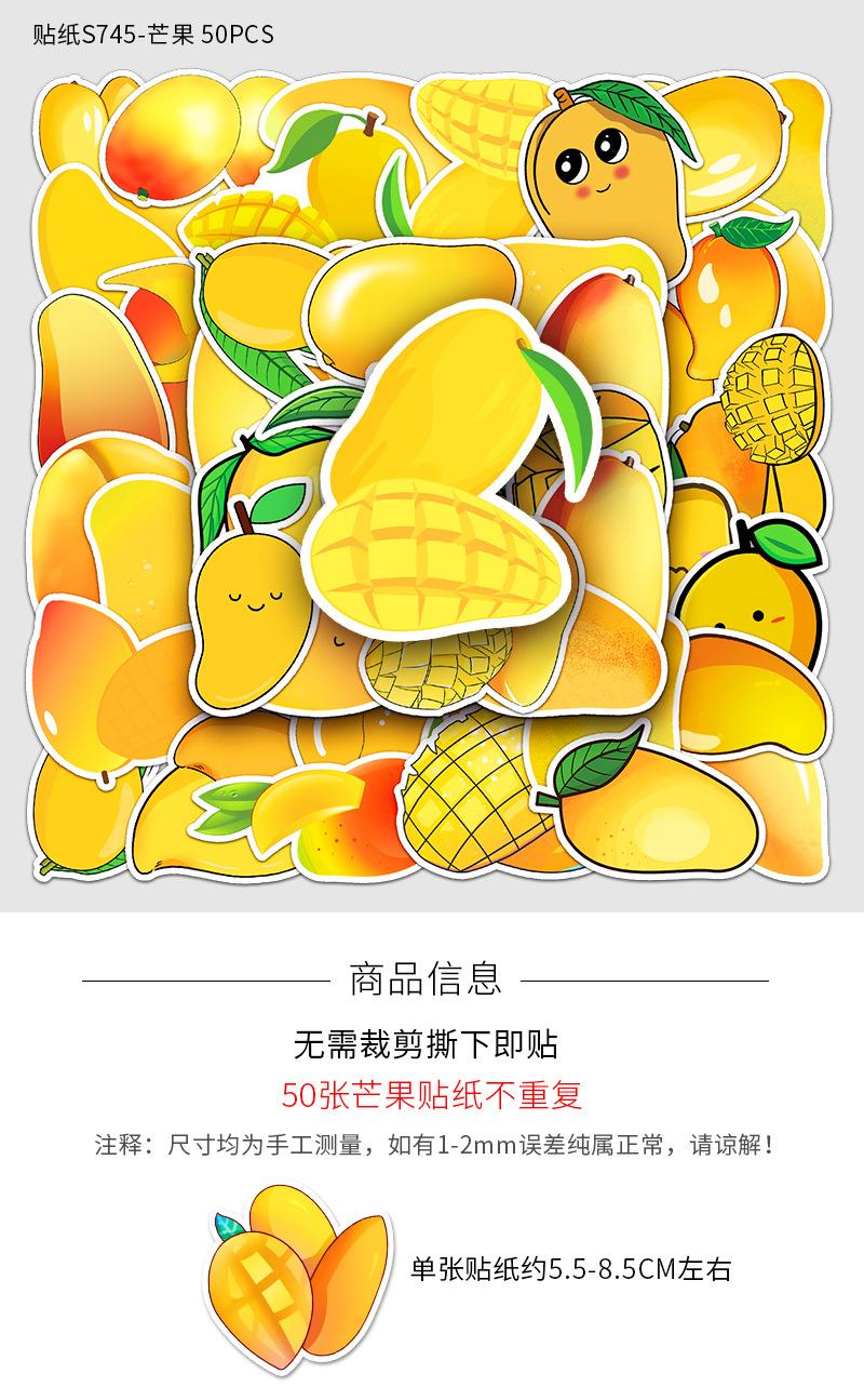 50 pegatinas de la serie de dibujos animados de mango, creativas, para manualidades, material de decoración de tarjetas, pegamento impermeable.