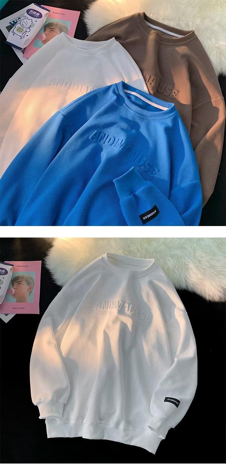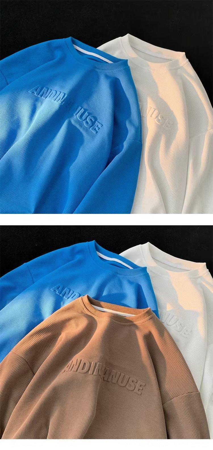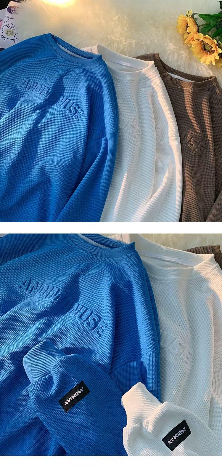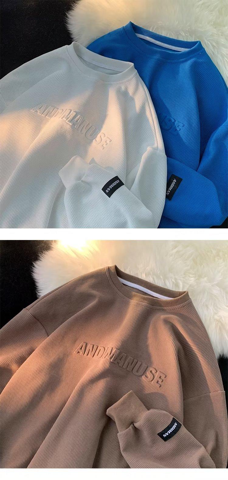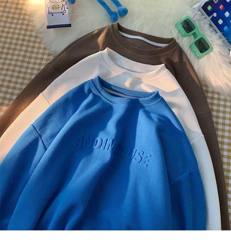 Suéter estilo waffle marrón retro americano para hombre, moda de otoño, marca de moda, cuello redondo, capucha, abrigo suelto, ropa superior