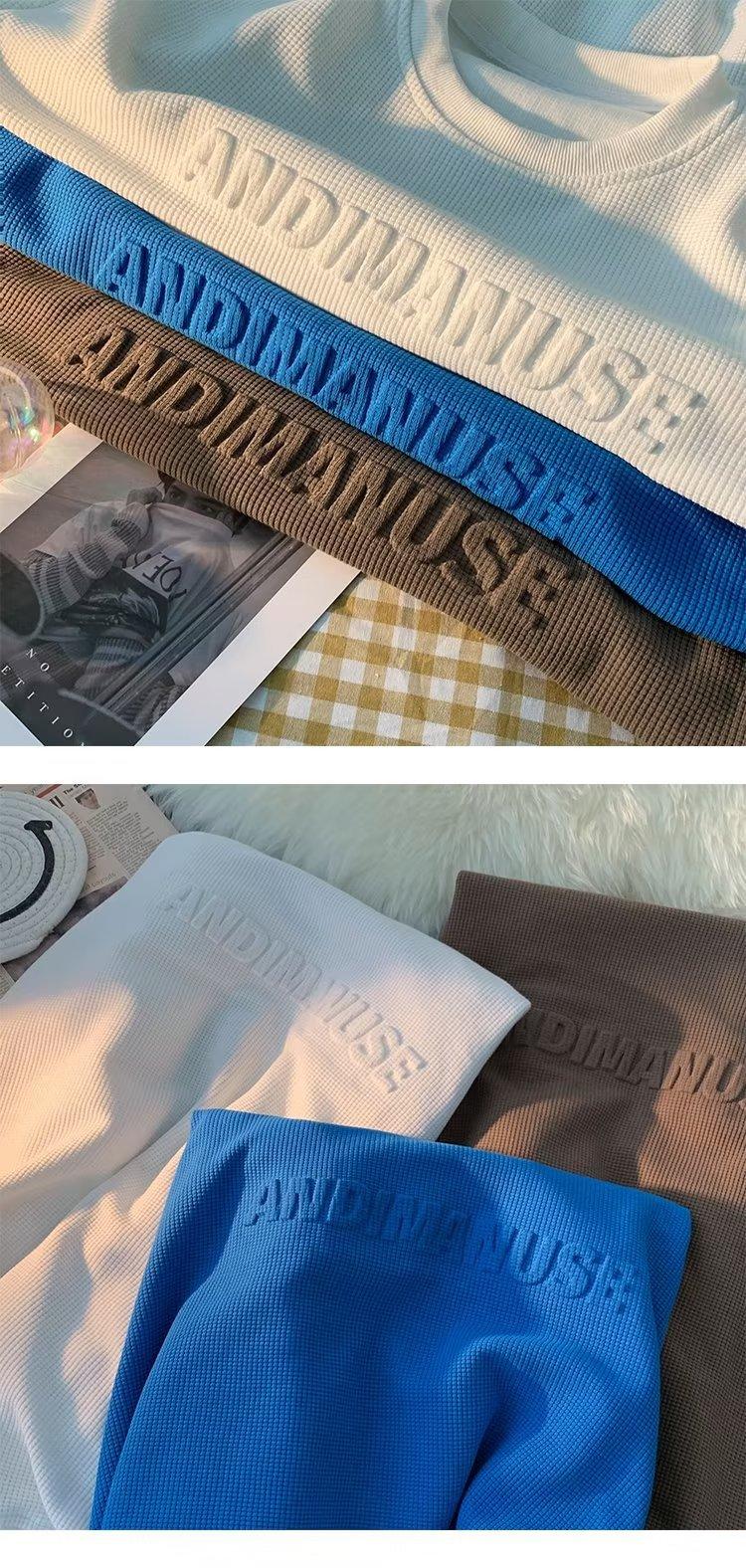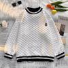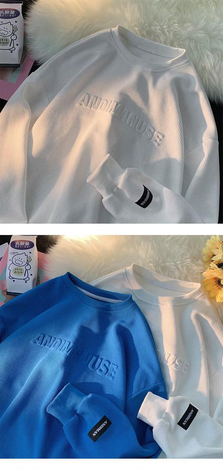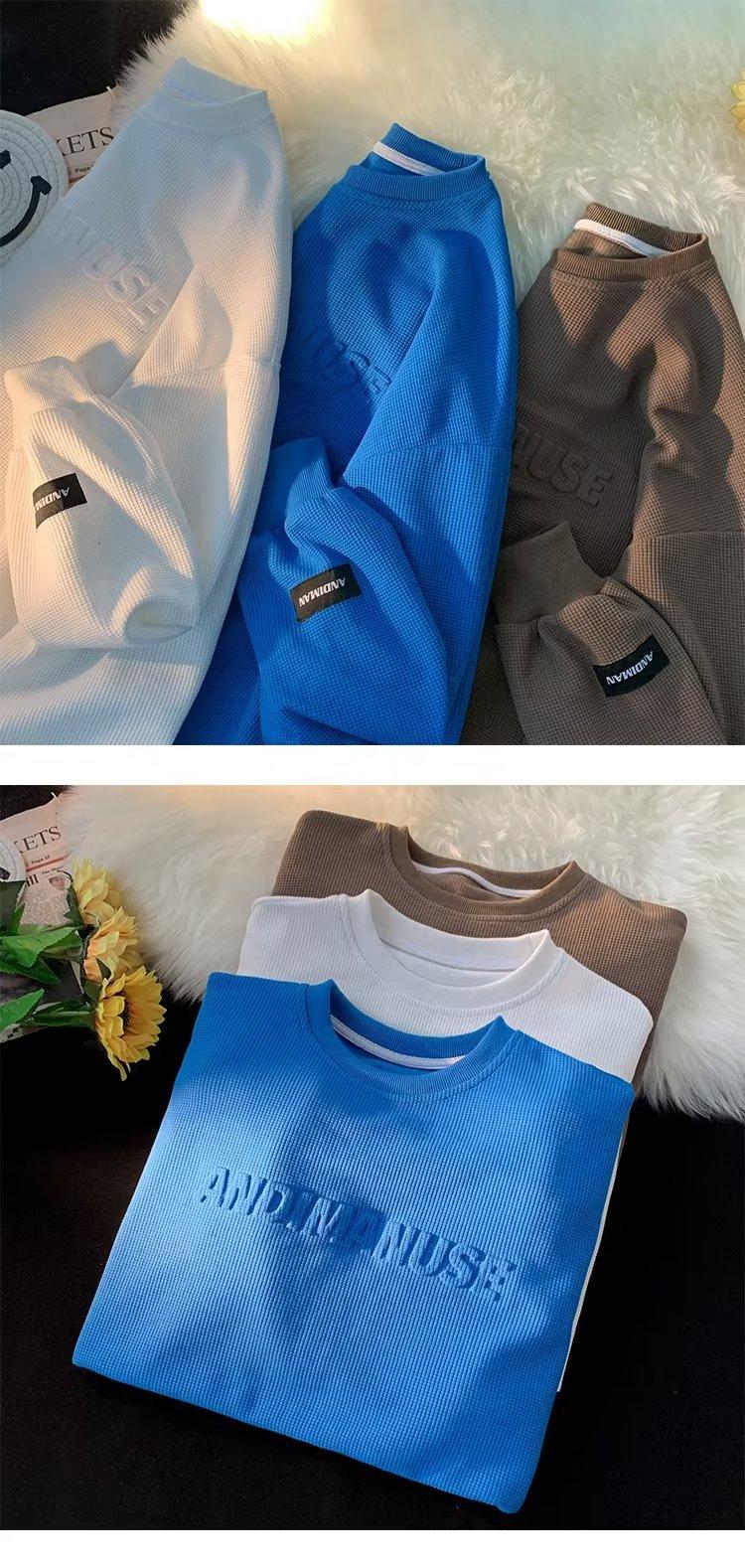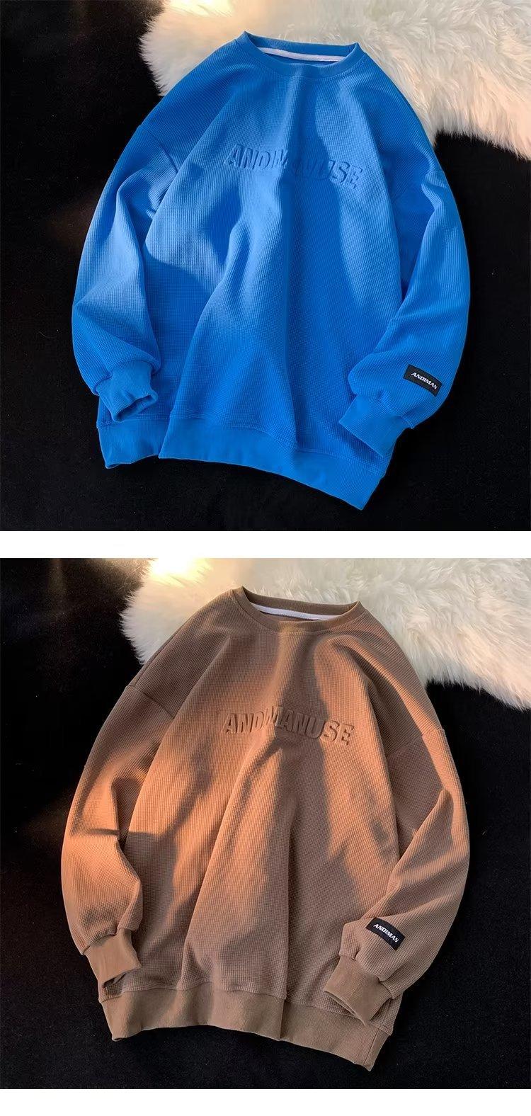 Suéter estilo waffle marrón retro americano para hombre, moda de otoño, marca de moda, cuello redondo, capucha, abrigo suelto, ropa superior
