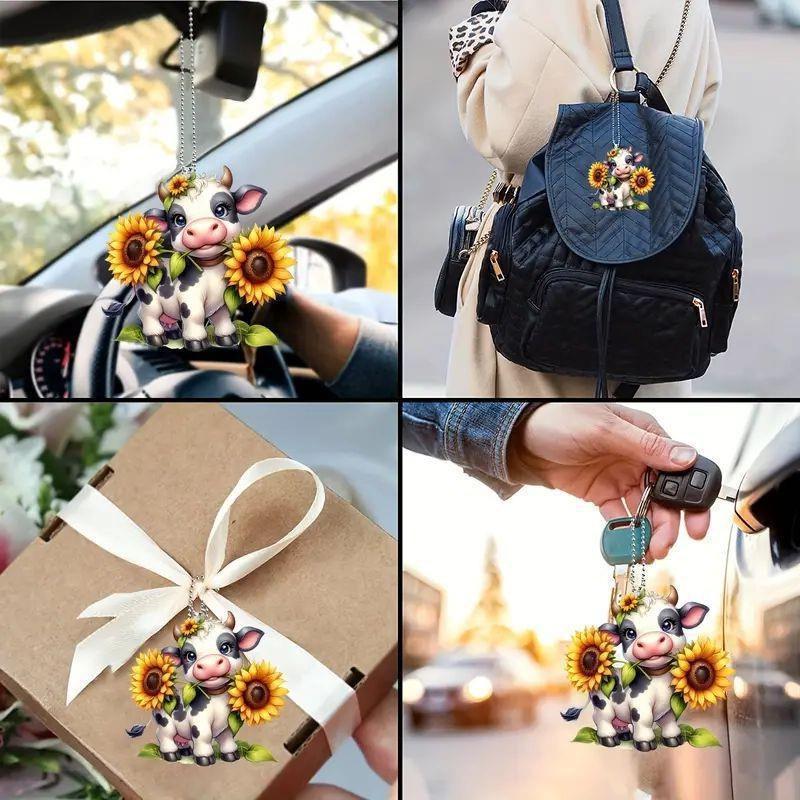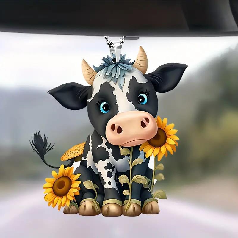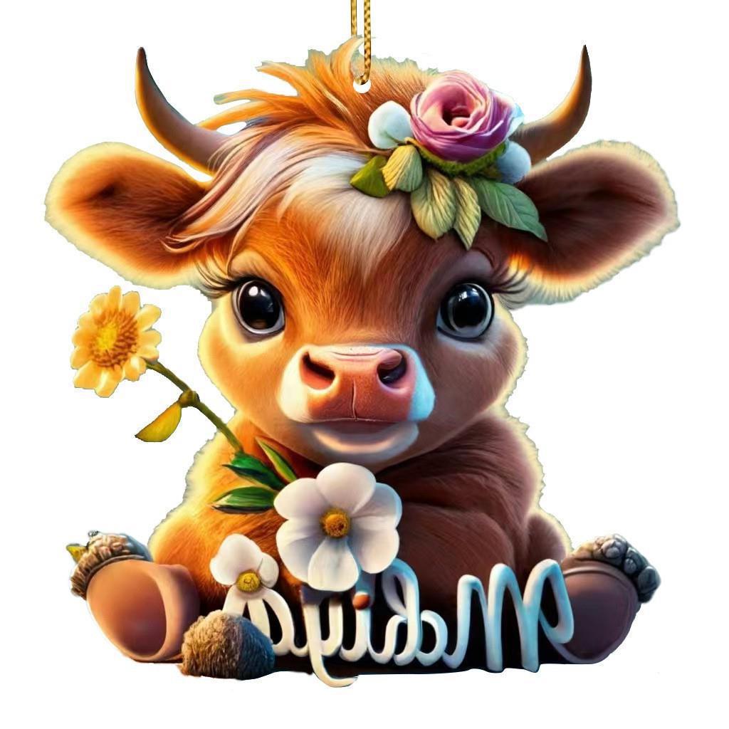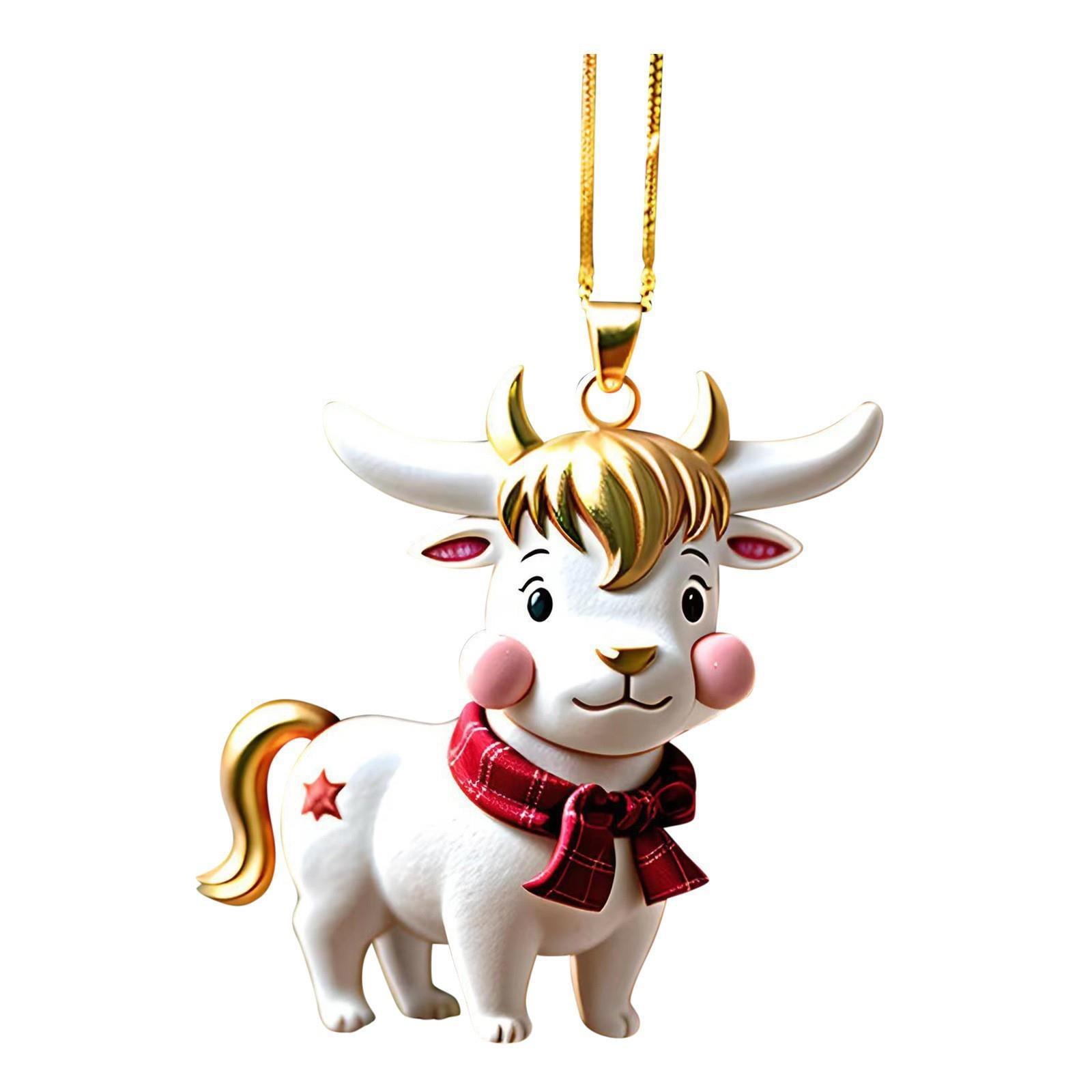 Nuevo colgante navideño transfronterizo con diseño de vaca y bufanda, colgante plano de acrílico para decoración de coche, árbol de Navidad