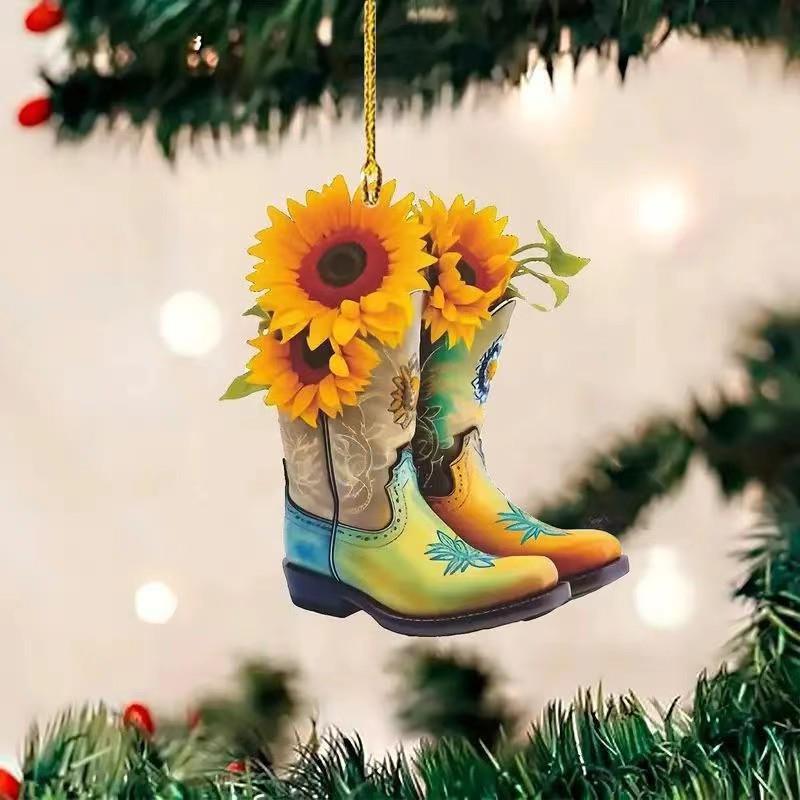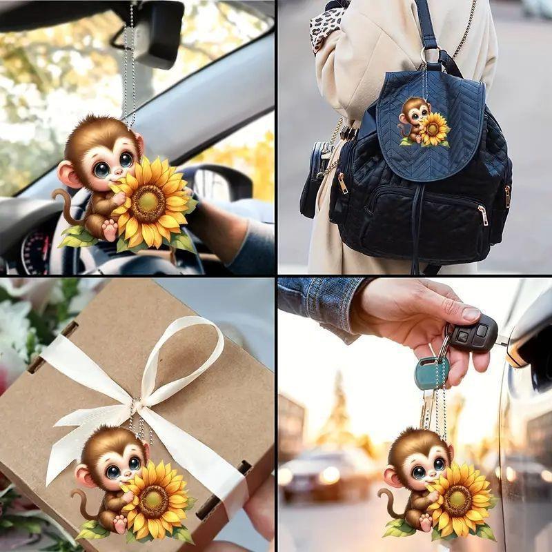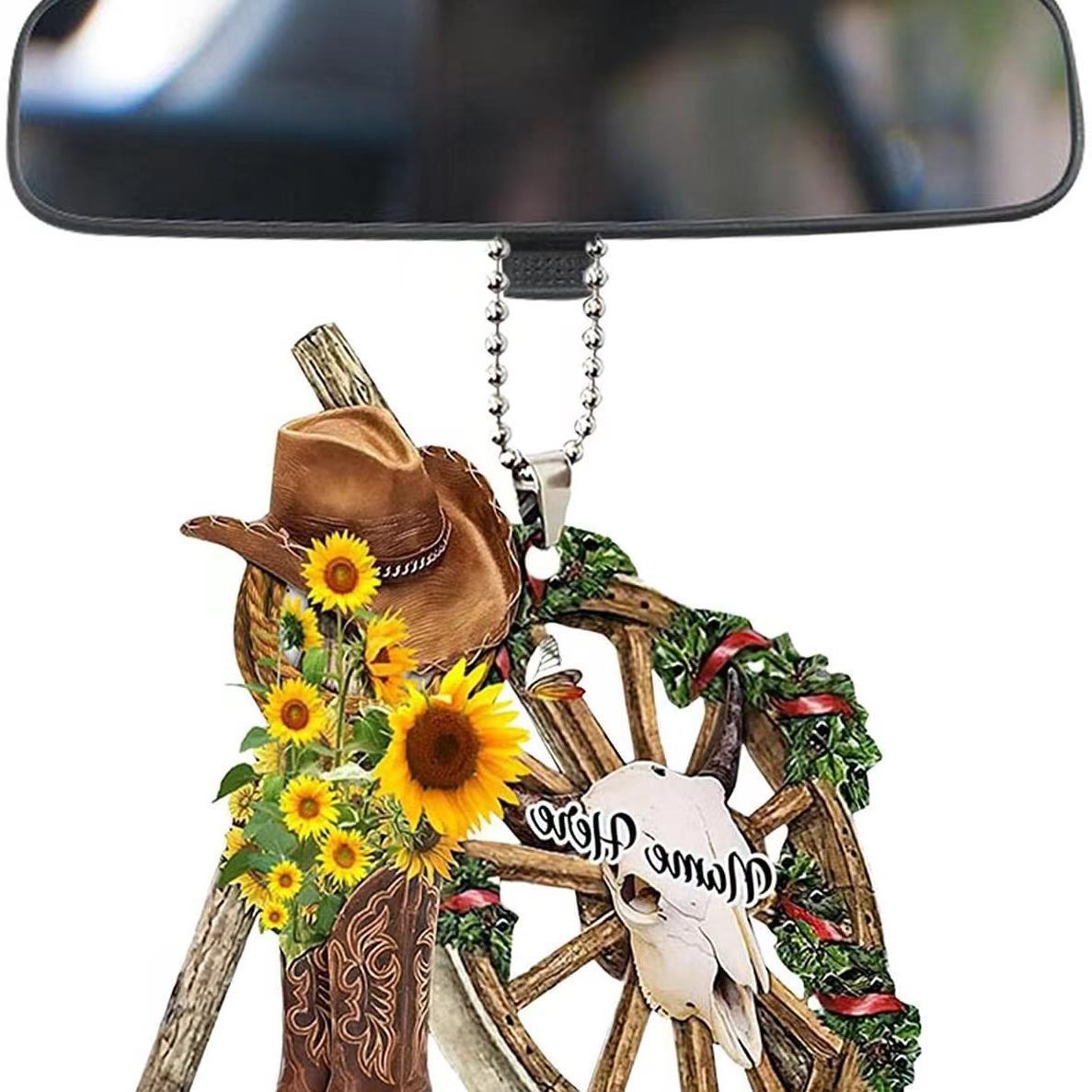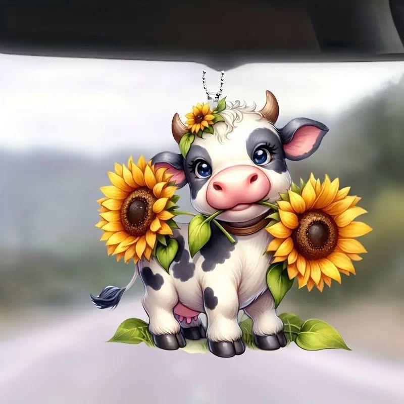 Nuevo colgante navideño transfronterizo con diseño de vaca y bufanda, colgante plano de acrílico para decoración de coche, árbol de Navidad