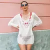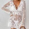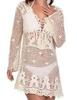 Nueva blusa bordada de encaje de Amazon, ropa de playa con protección solar, jersey, bikini, traje de baño, blusa con cuello en V hueco para mujer