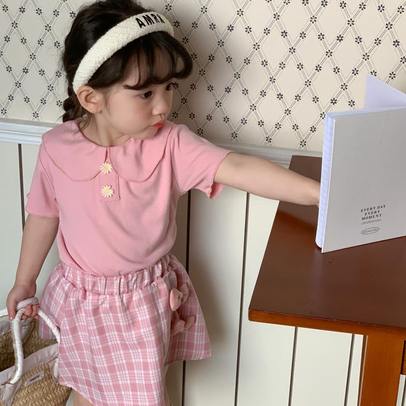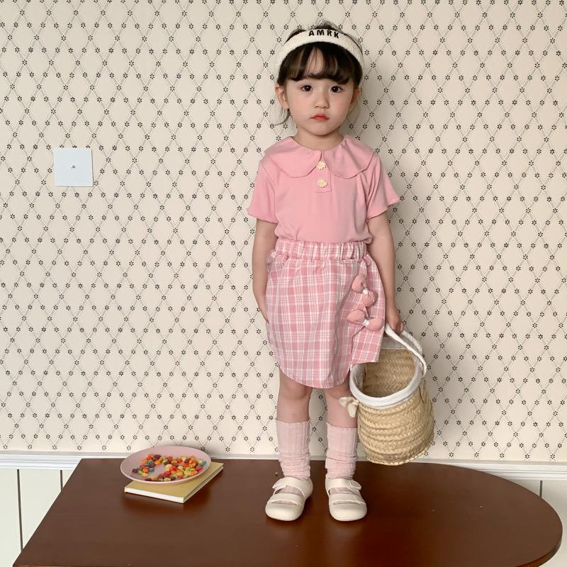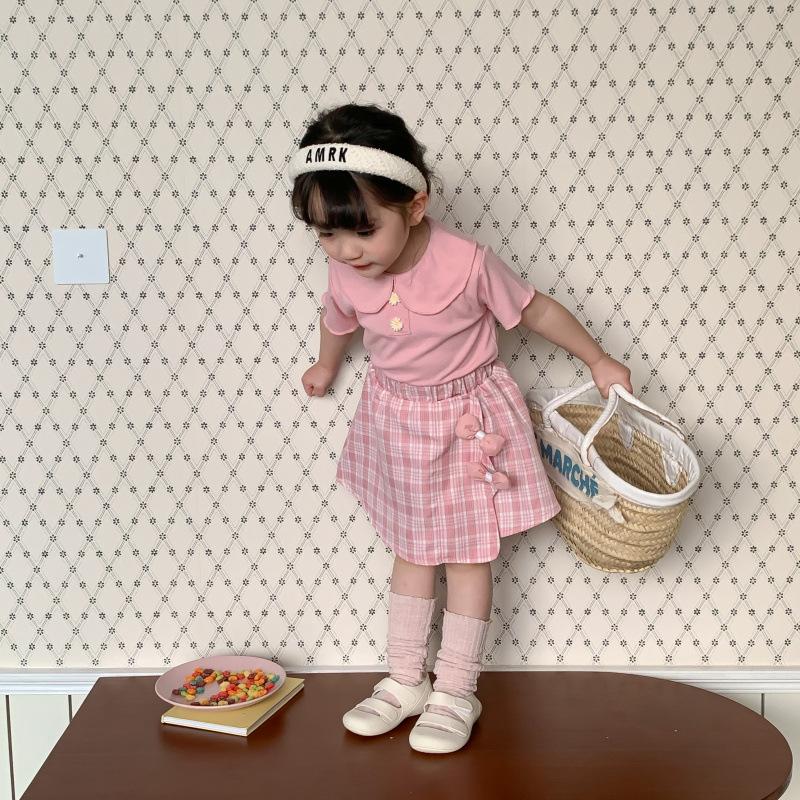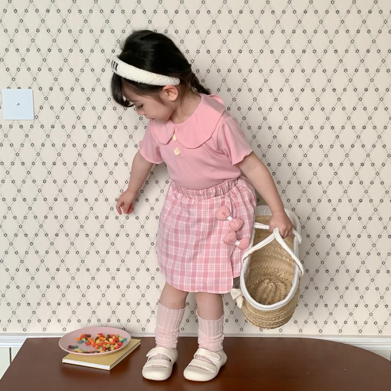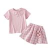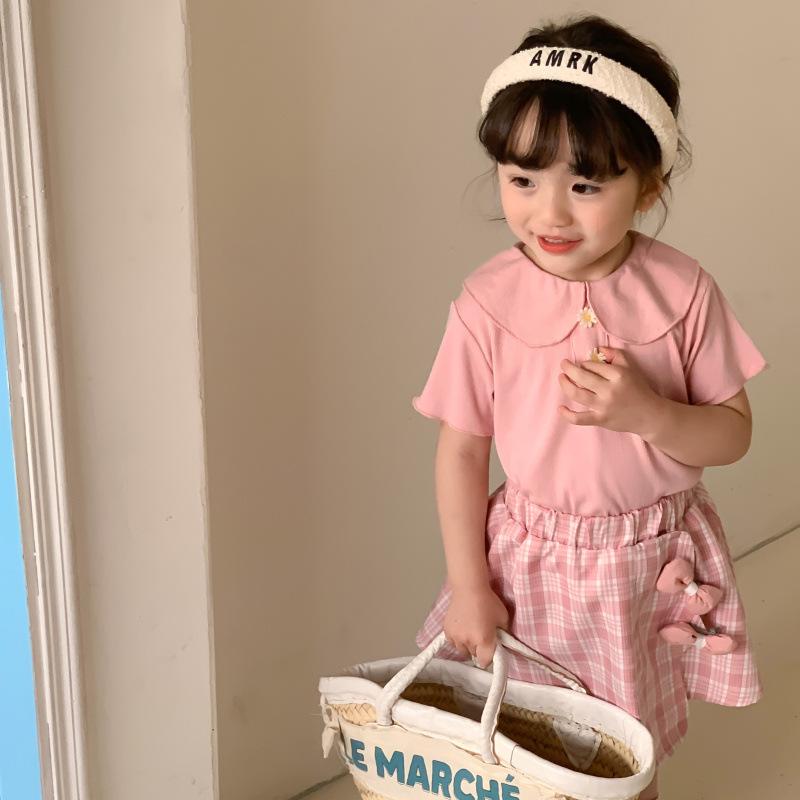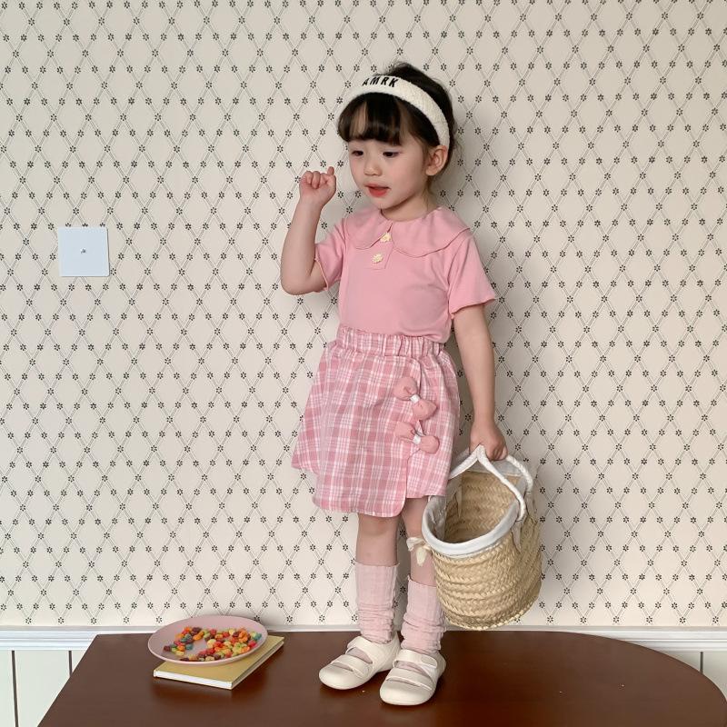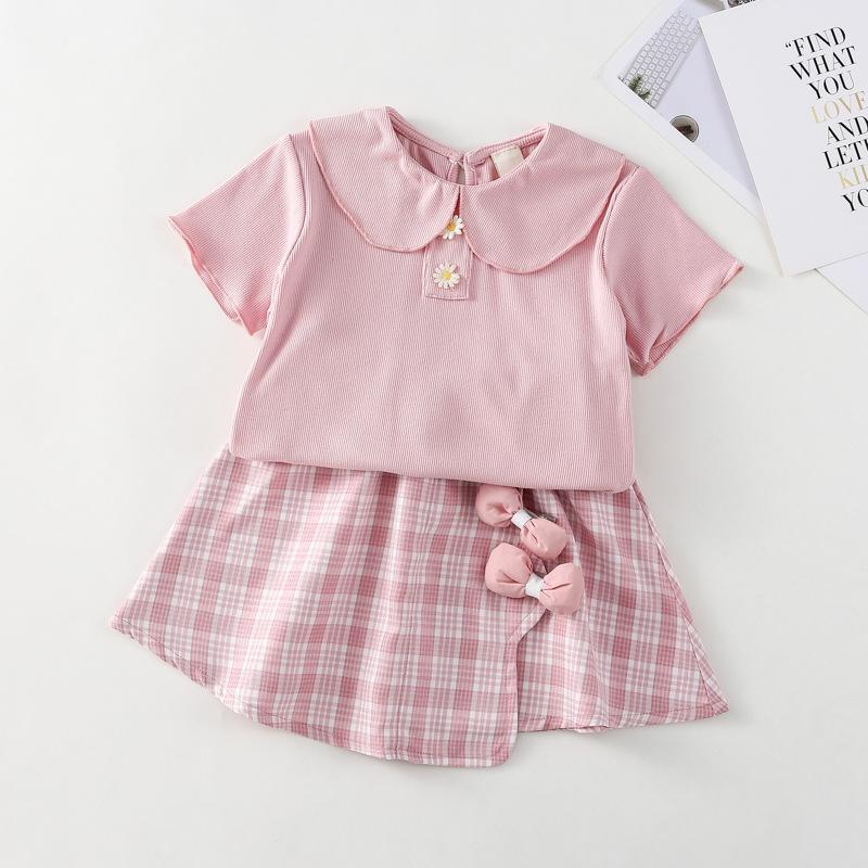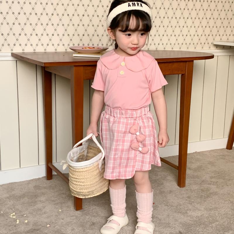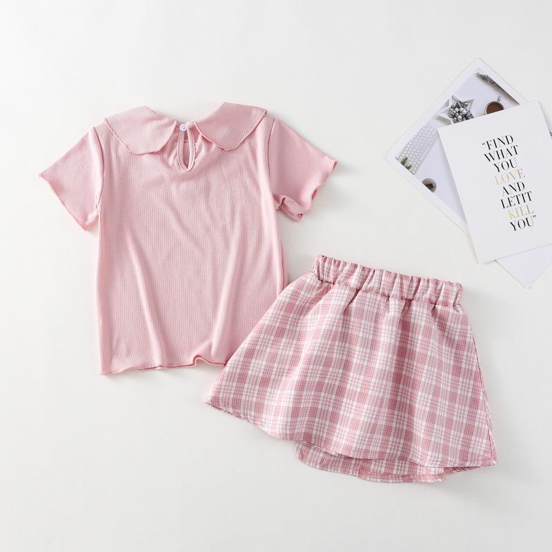Compra Traje para Niñas Coreano 2024 Verano Nuevo Estilo Moda Infantil Top Rosa de Manga Corta Falda Corta Casual Conjunto de Dos Piezas al por mayor en Joom.pro