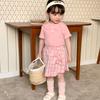 Traje para Niñas Coreano 2024 Verano Nuevo Estilo Moda Infantil Top Rosa de Manga Corta Falda Corta Casual Conjunto de Dos Piezas