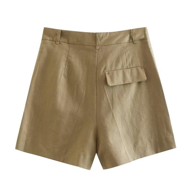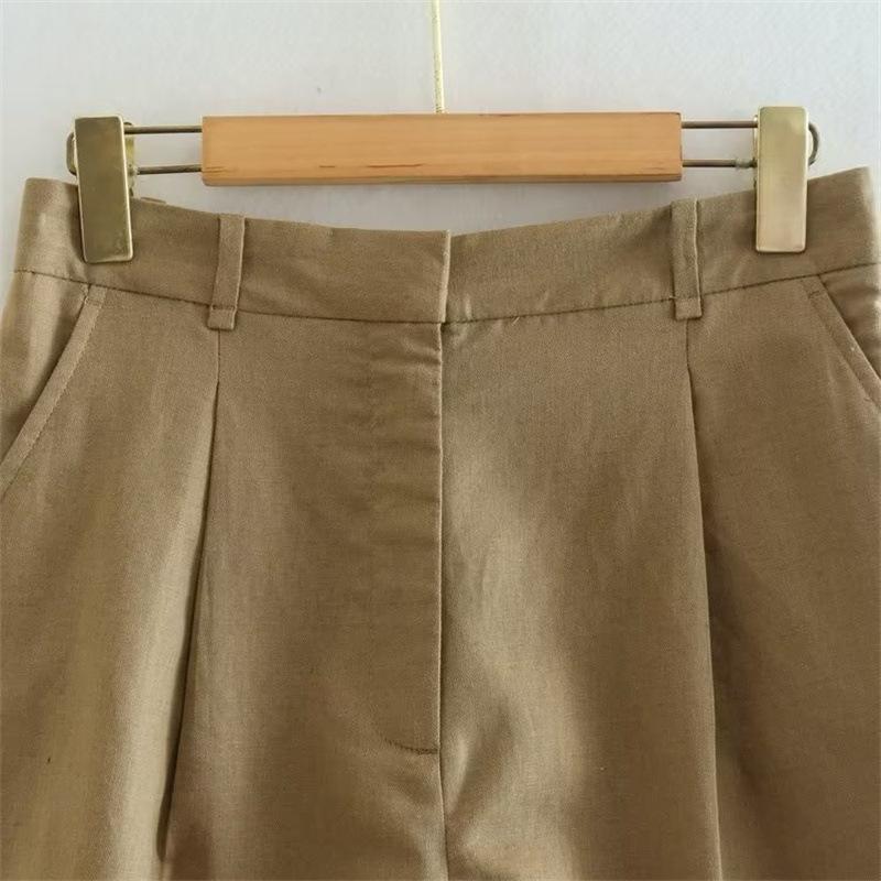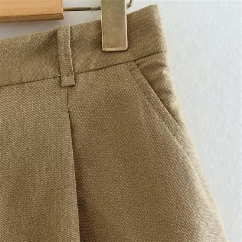 Exportación Transfronteriza Venta al Por Mayor Otoño 2022 Estilo Europeo y Americano Ins Shorts Casuales Decorativos Plisados de Mezcla de Lino para Mujer
