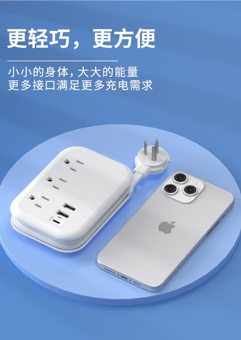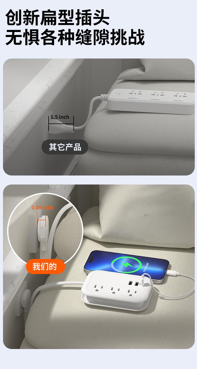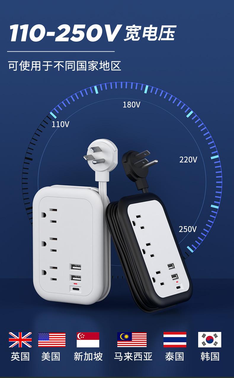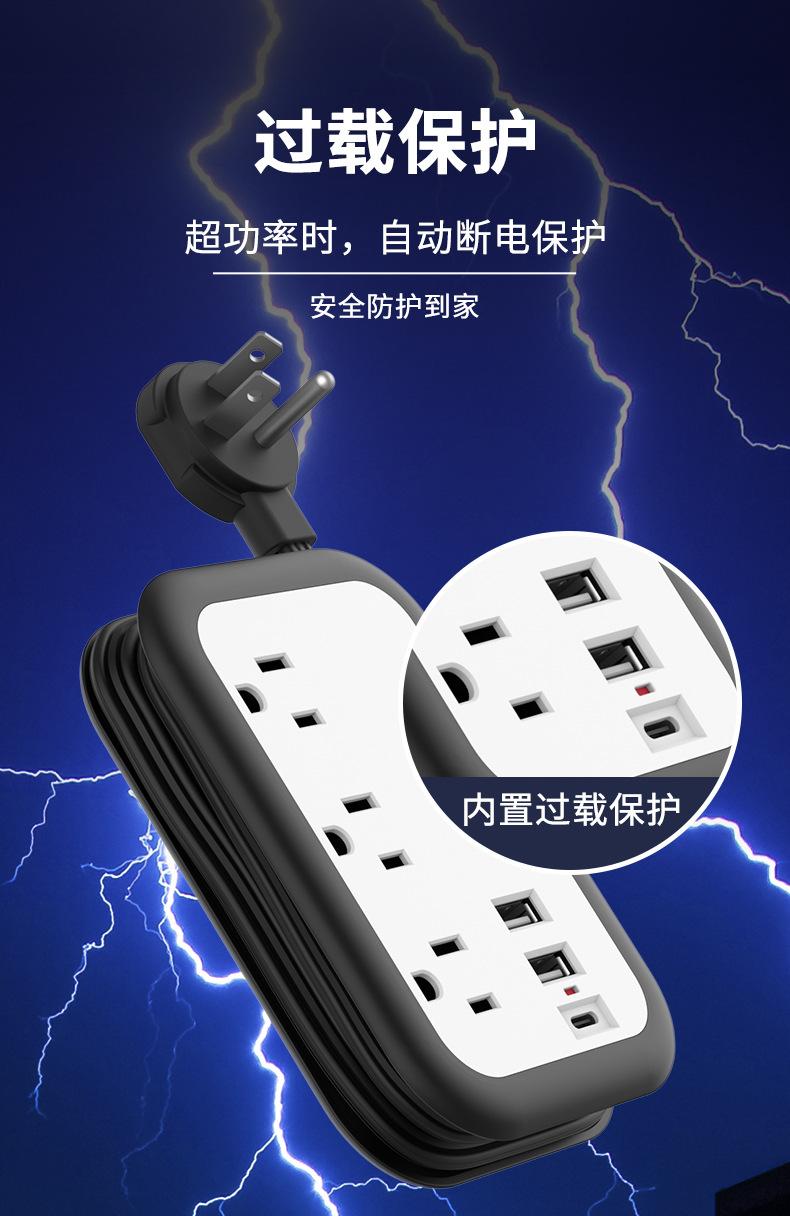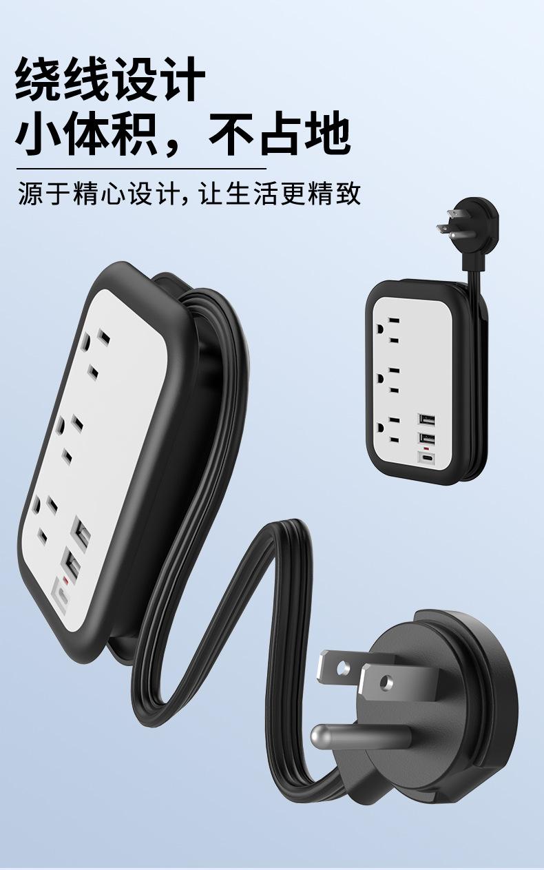 Enchufe plano inteligente con USB, calibre EE. UU., para el hogar, viajes, portátil, línea de bobinado, extensión de 1,5 m, tablero de enchufe eléctrico