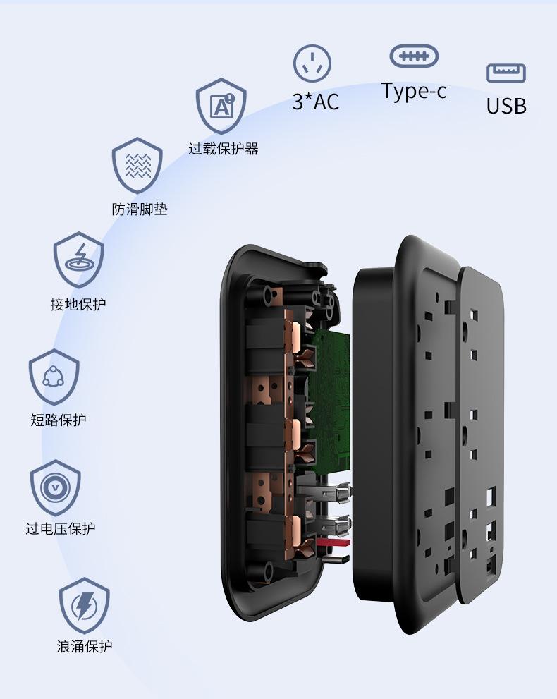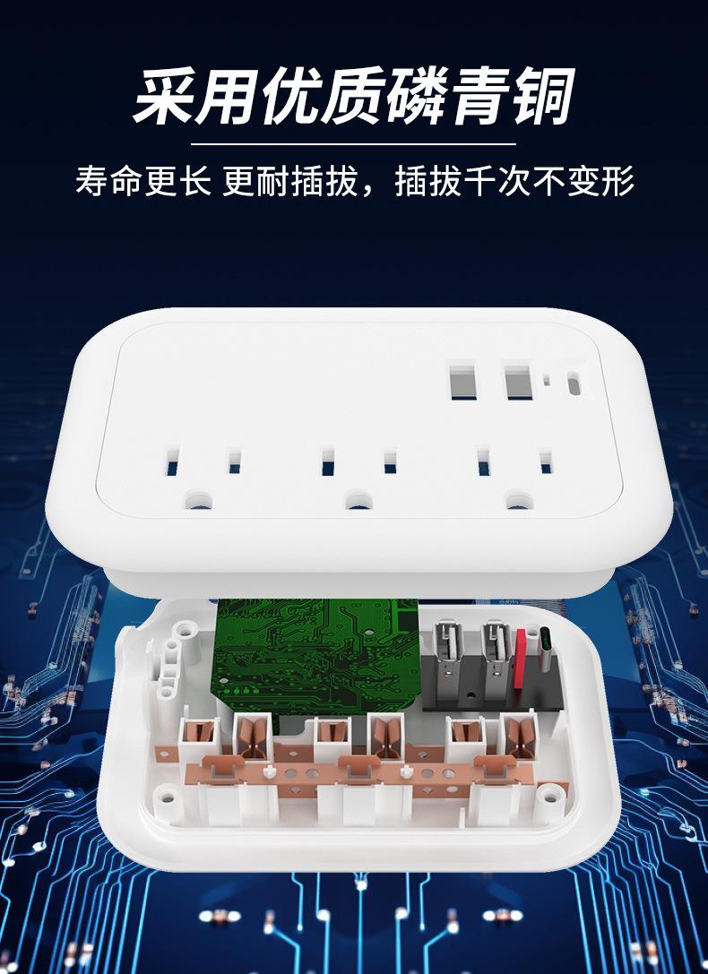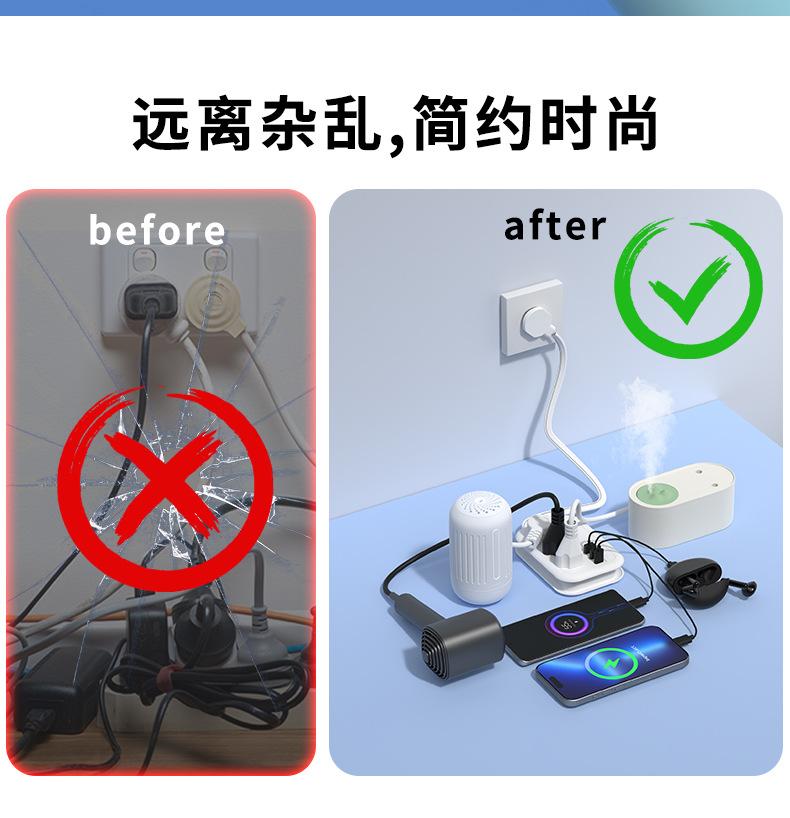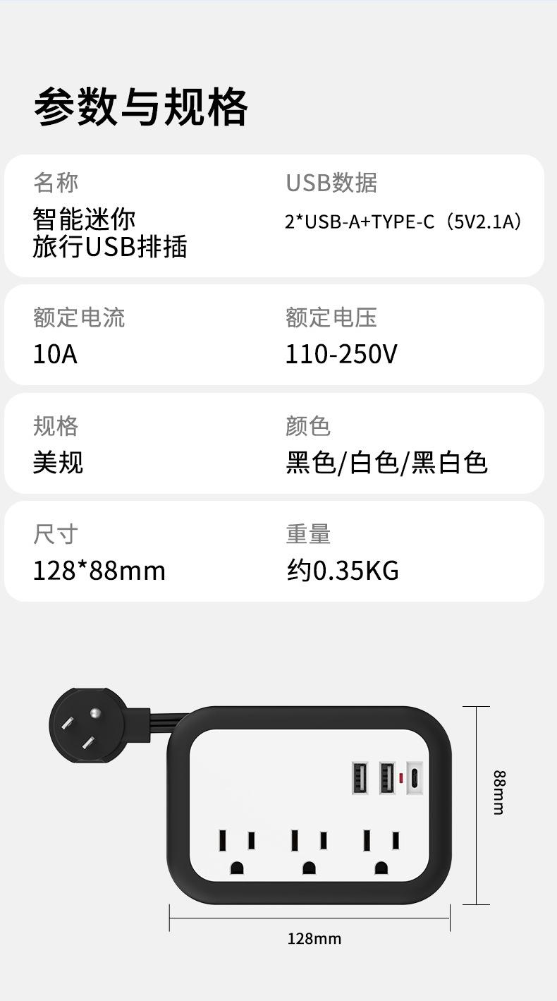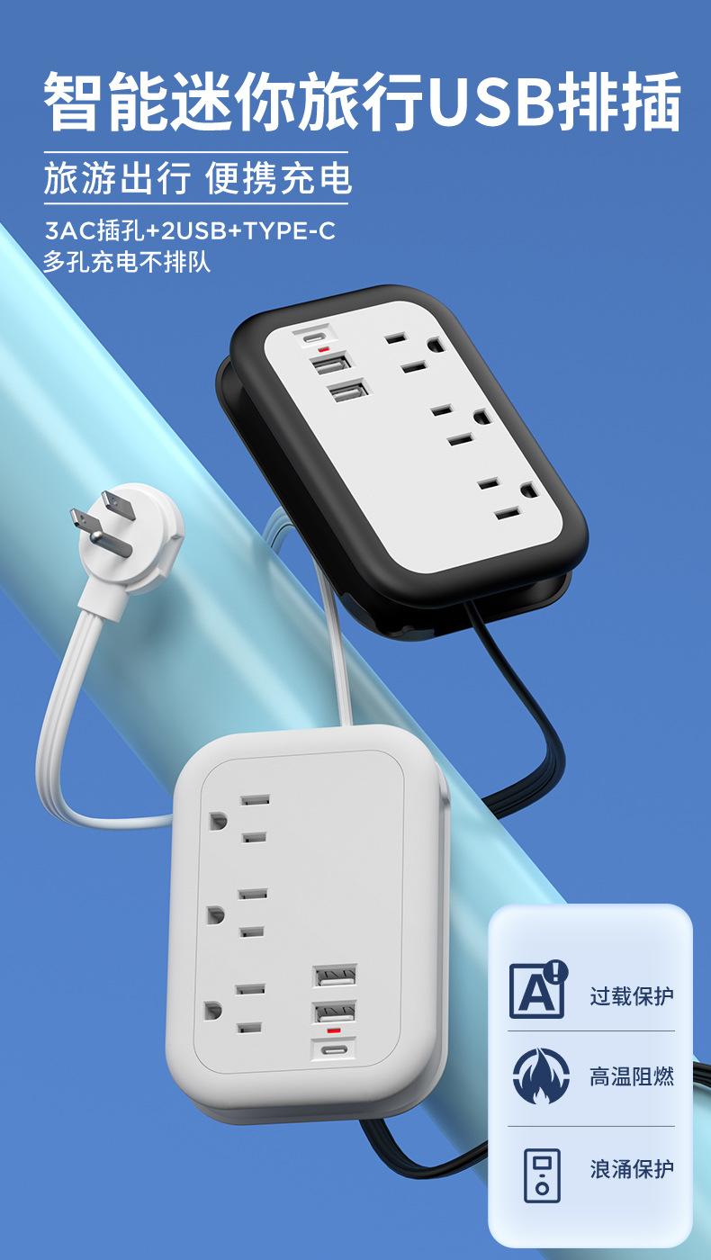 Enchufe plano inteligente con USB, calibre EE. UU., para el hogar, viajes, portátil, línea de bobinado, extensión de 1,5 m, tablero de enchufe eléctrico