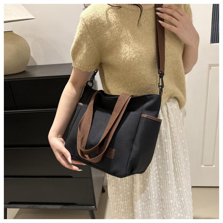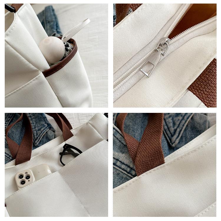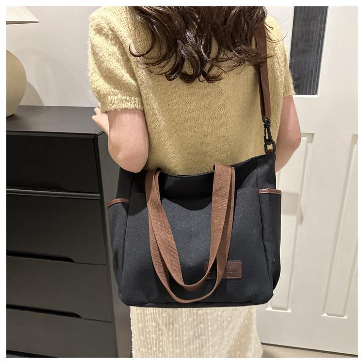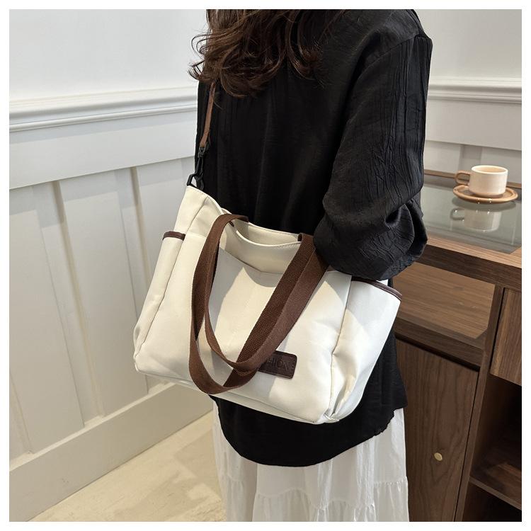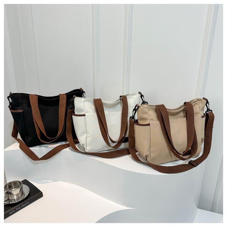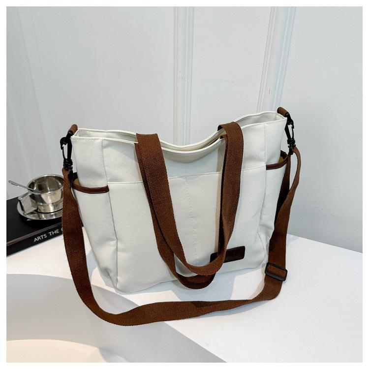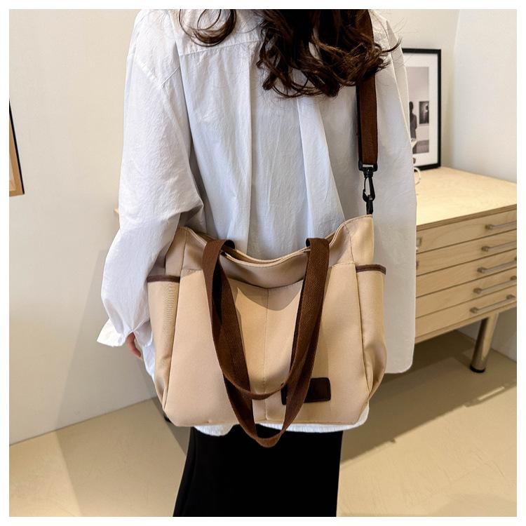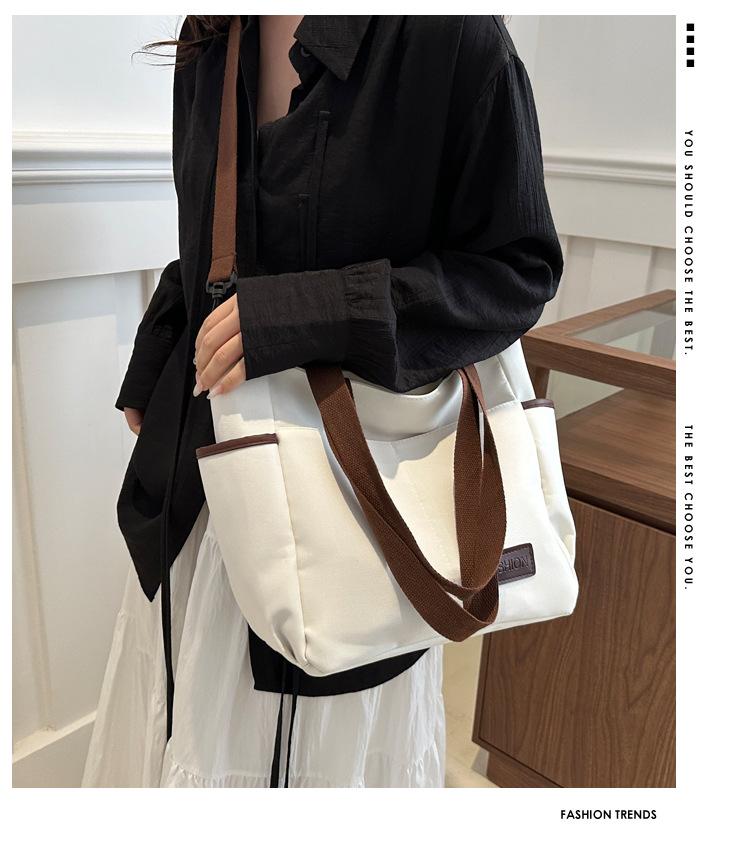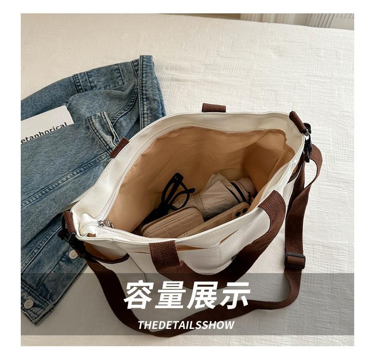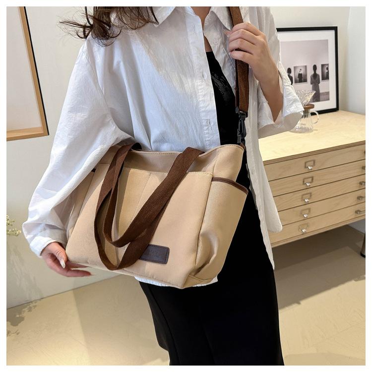 Bolso de lona para mujer, novedad de 2024, bolso de hombro de gran capacidad, estilo universitario, bolso de mano informal, bolso de compras