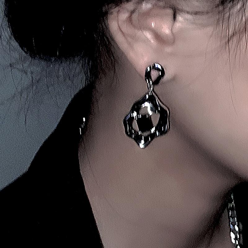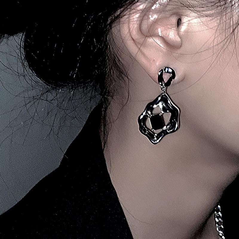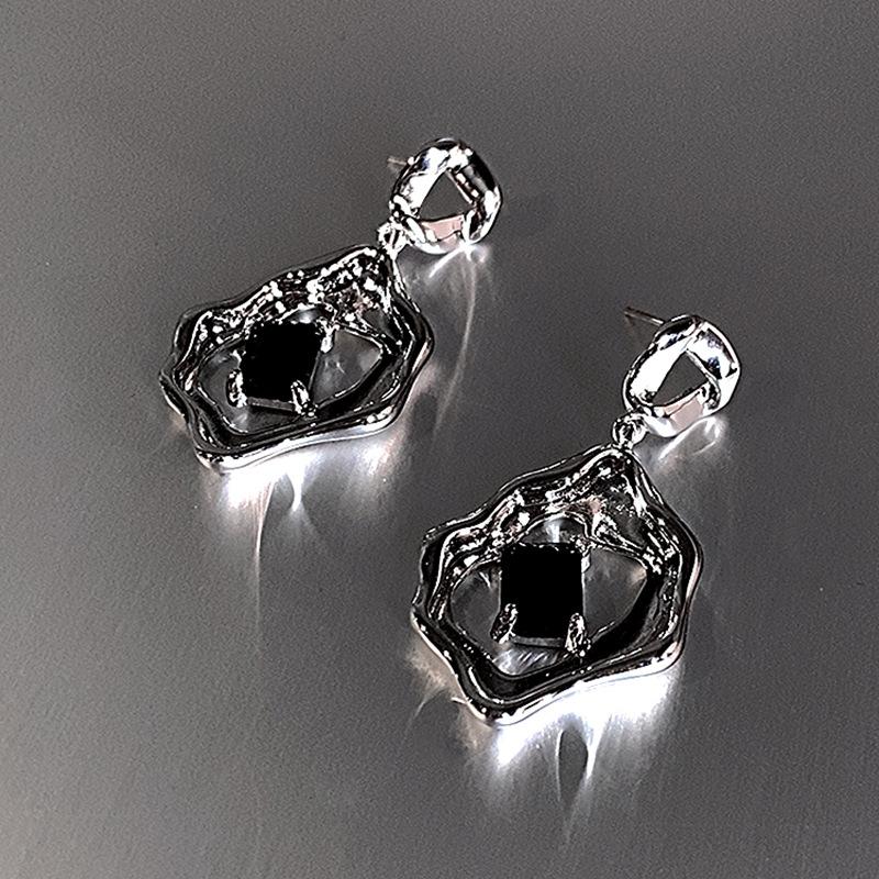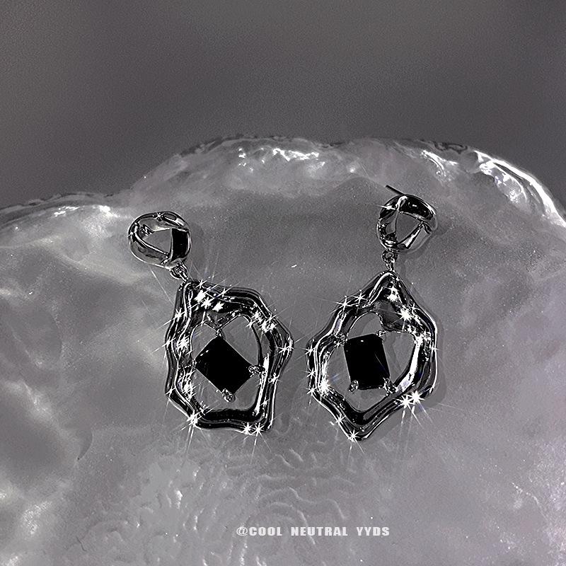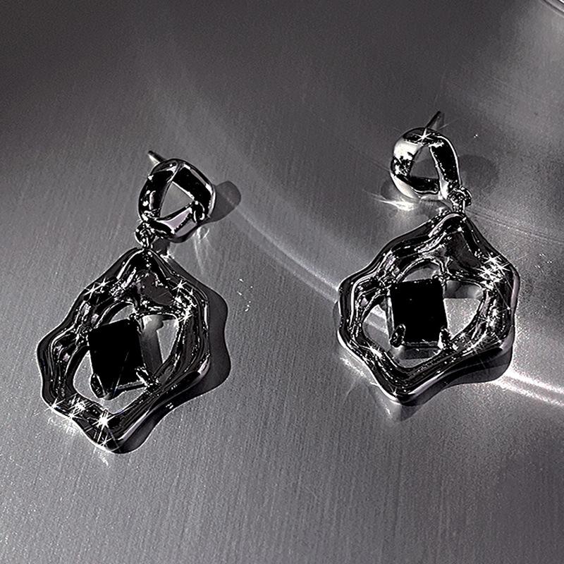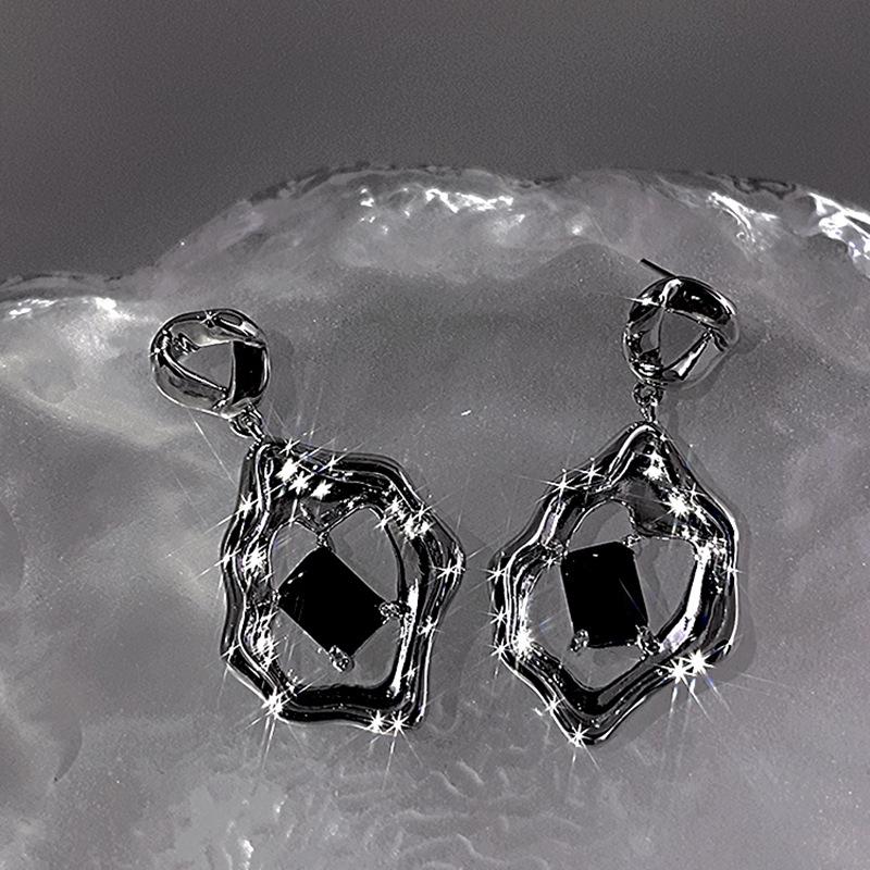 Dulce Estilo Cool Zircón Negro Pendientes Líquidos Pendientes de Círculo Irregular Elegantes de Alto Grado Estilo Frío ins para Mujer Coreana