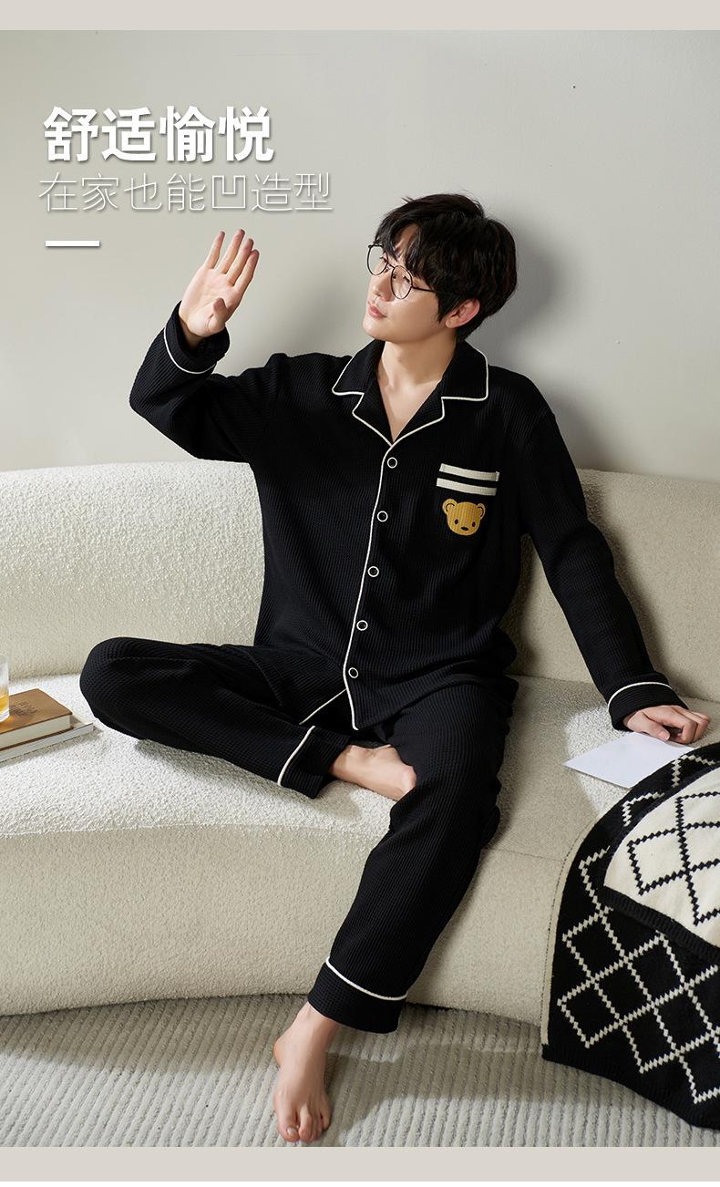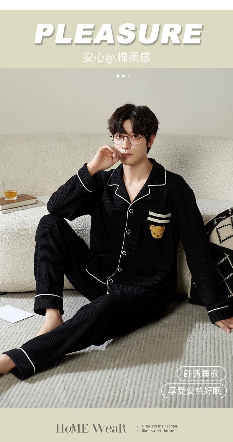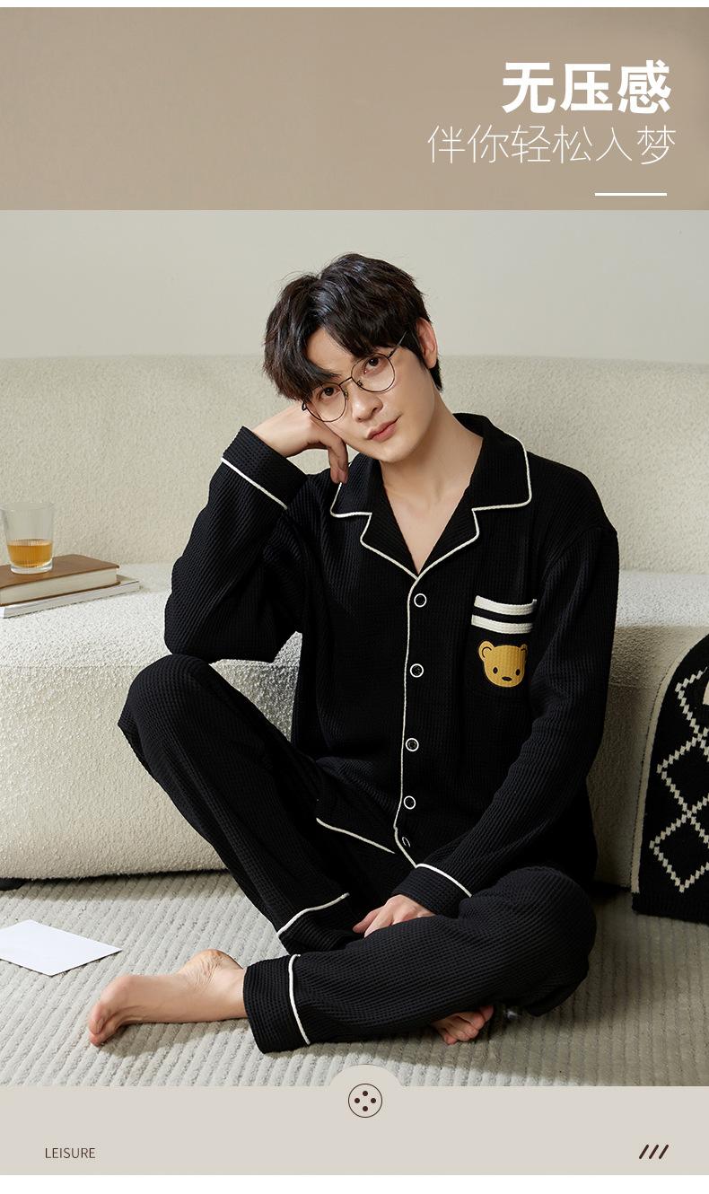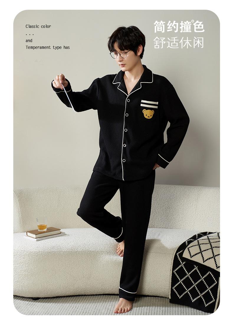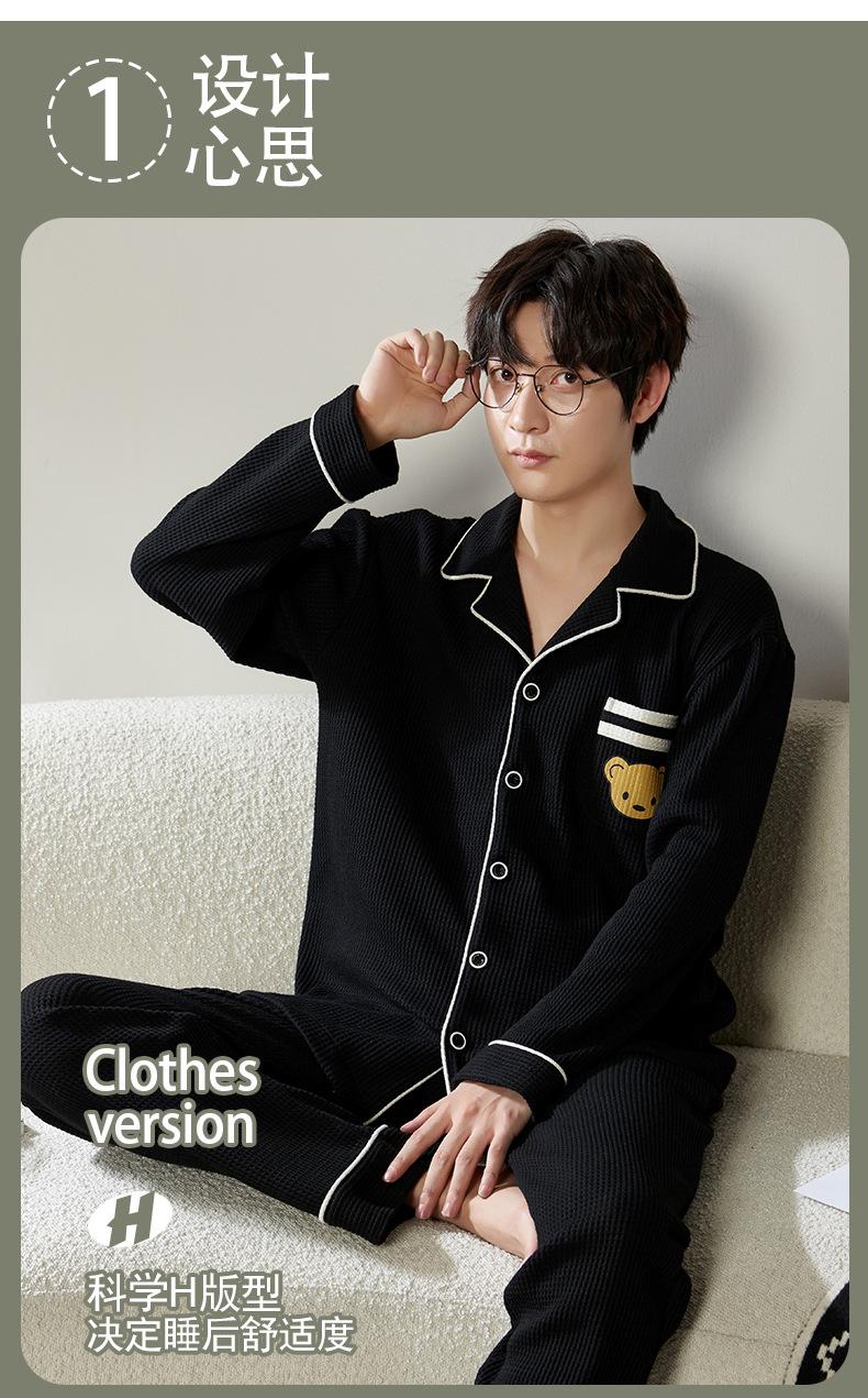 Pijama de hombre, cárdigan de algodón de primavera y otoño, de manga larga, con dibujos animados para jóvenes, para otoño e invierno, fino, para uso en el hogar al aire libre.