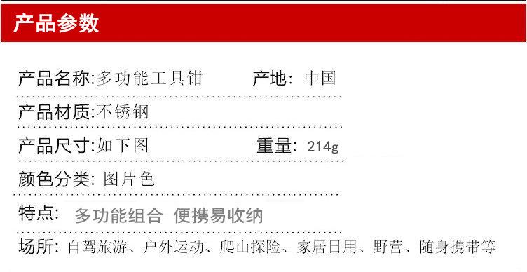 Alicates plegables para acampar al aire libre al por mayor, alicates de llave, herramienta multifunción, alicates combinados, herramienta multiusos