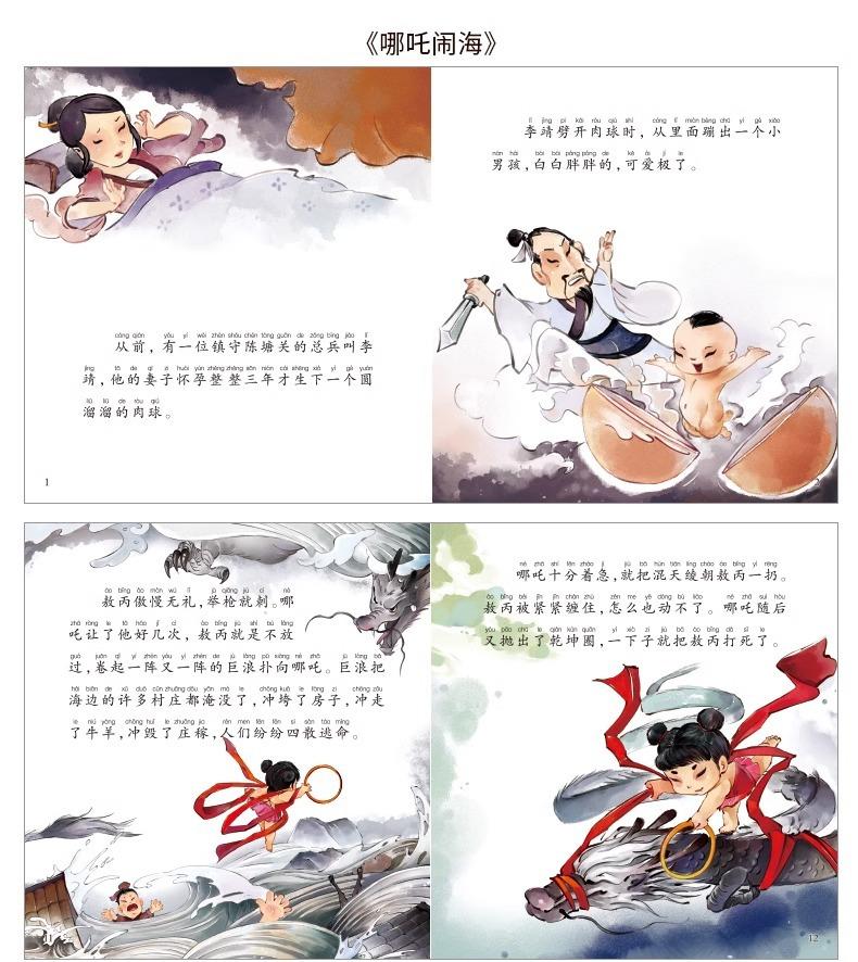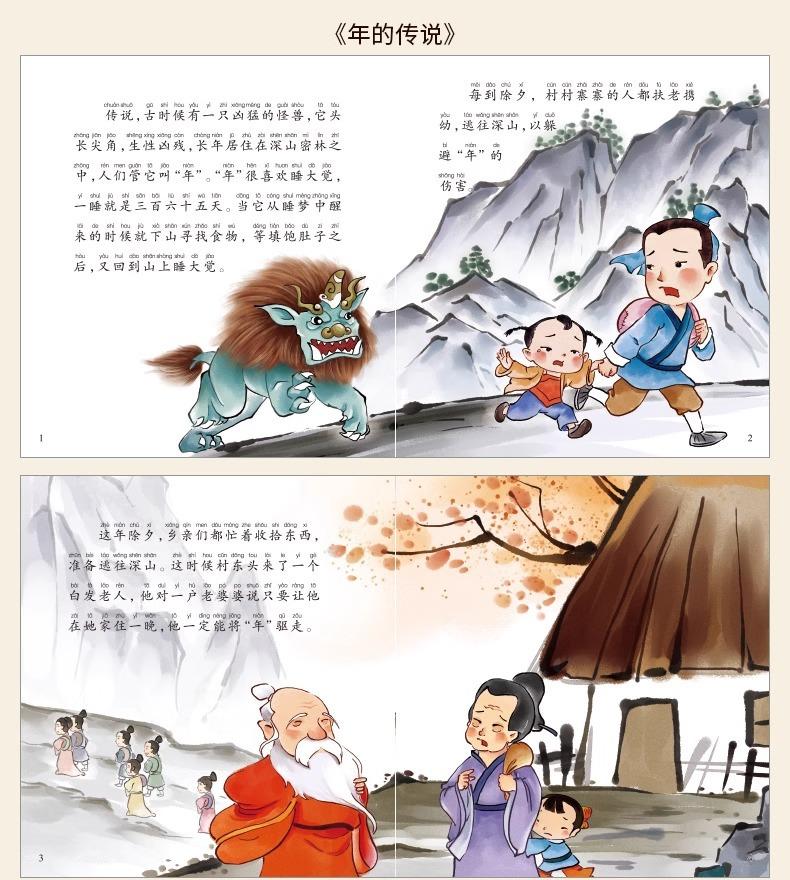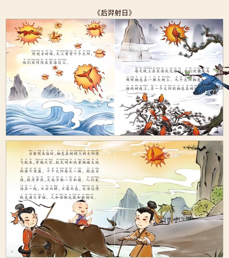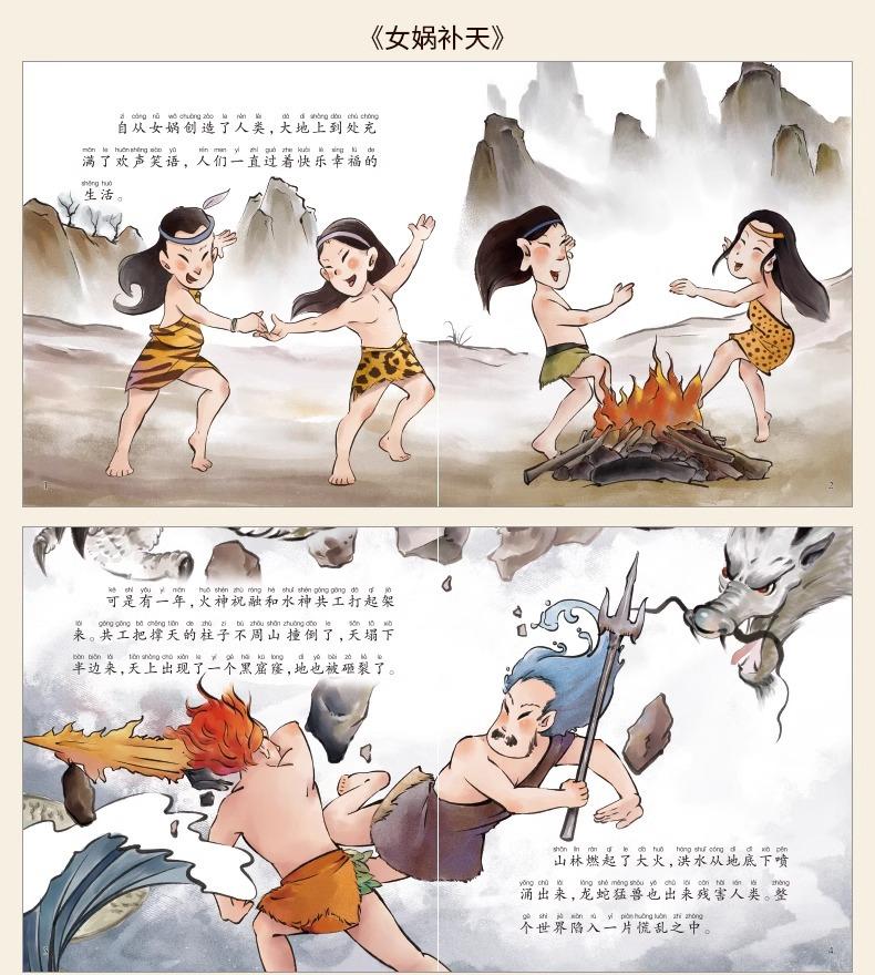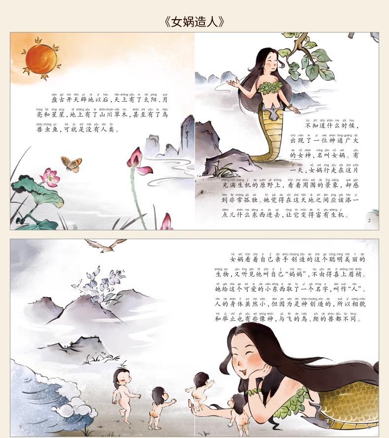 Libro ilustrado de cuentos clásicos chinos, conjunto completo de 40 volúmenes, versión fonética con imágenes a color de antiguos mitos y leyendas chinos: Nuwa reparando el cielo