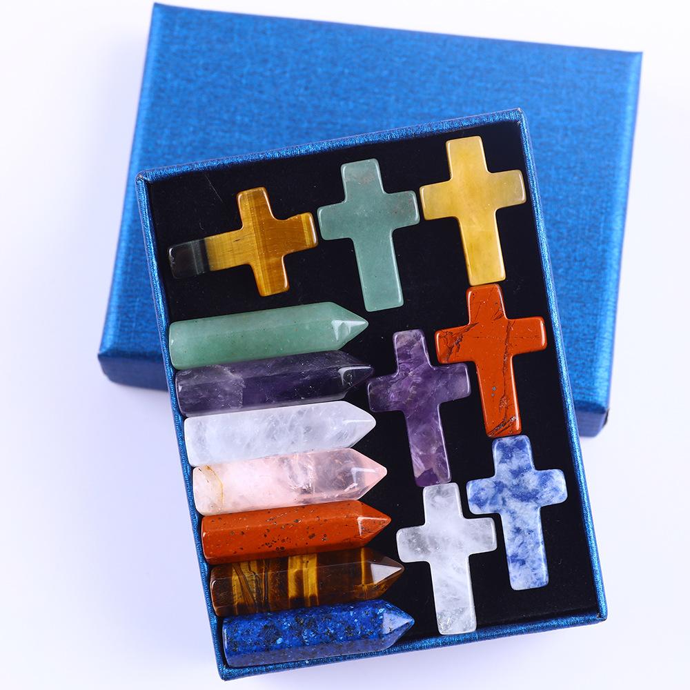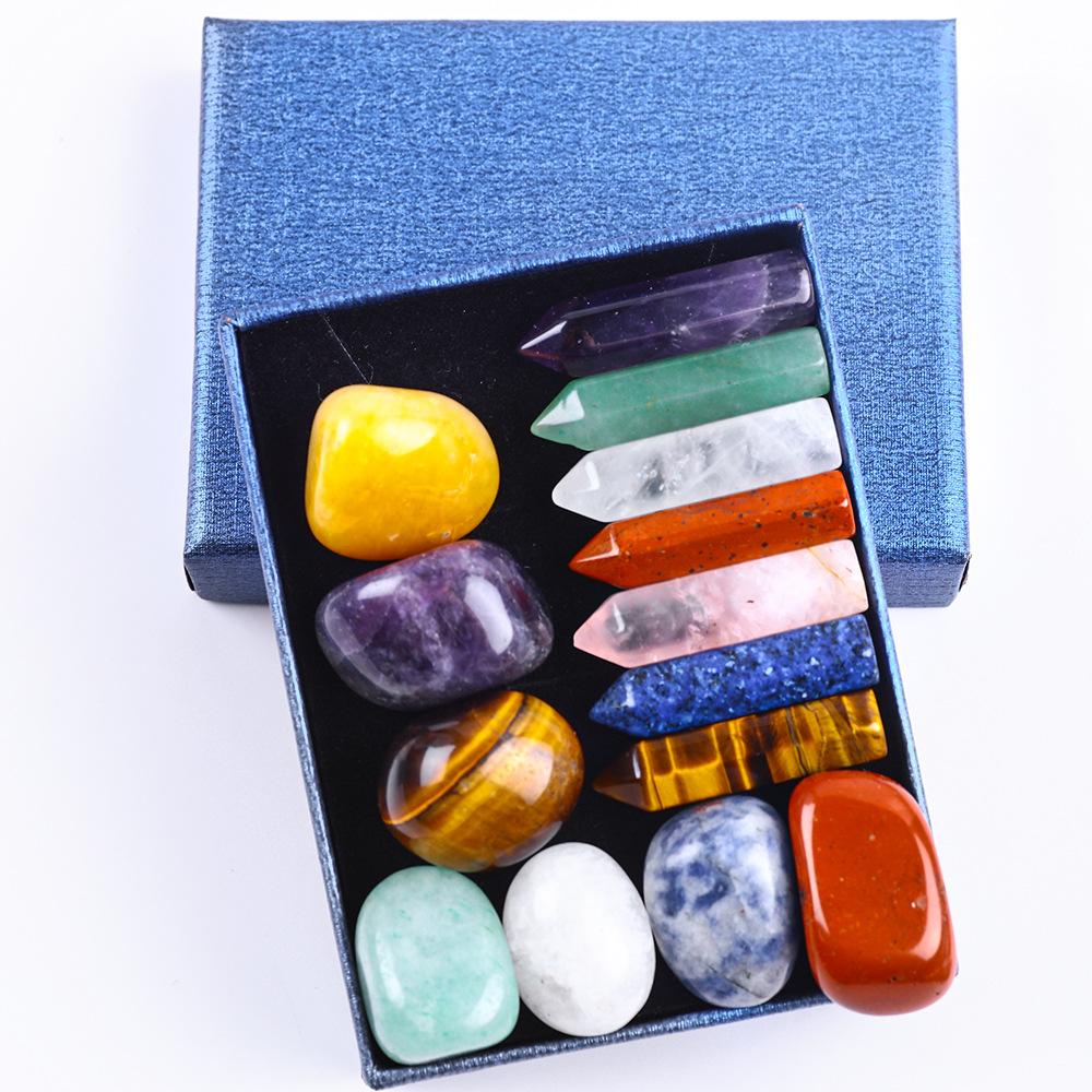 nombre:Conjunto de 14 piezas, conjunto de 8 piezas - Conjunto de columnas hexagonales de cristal de piedra natural (incluye caja de regalo)