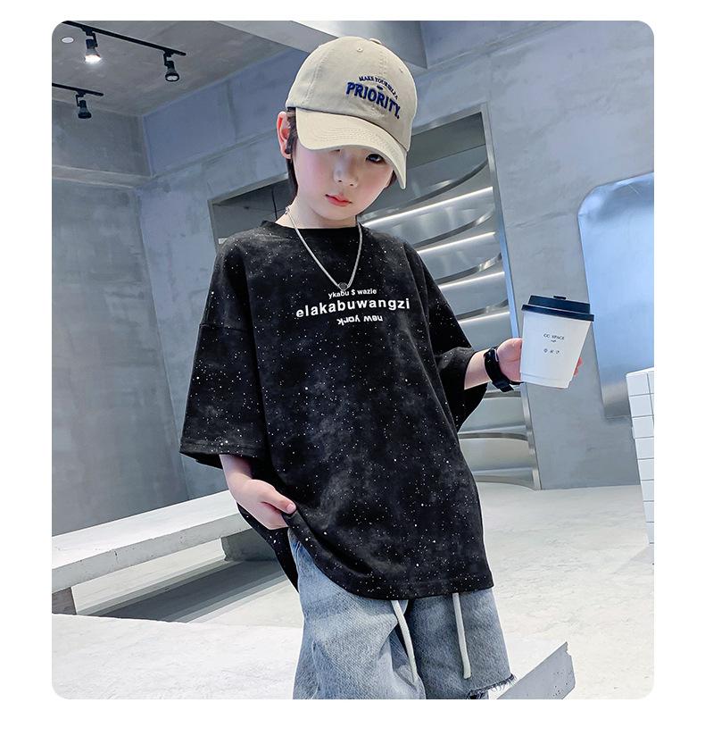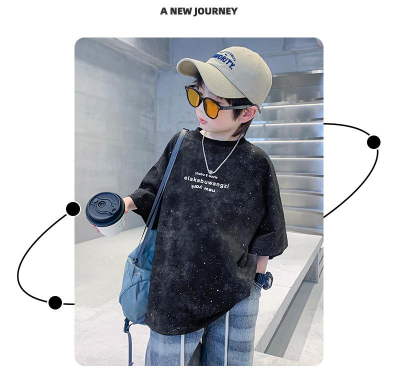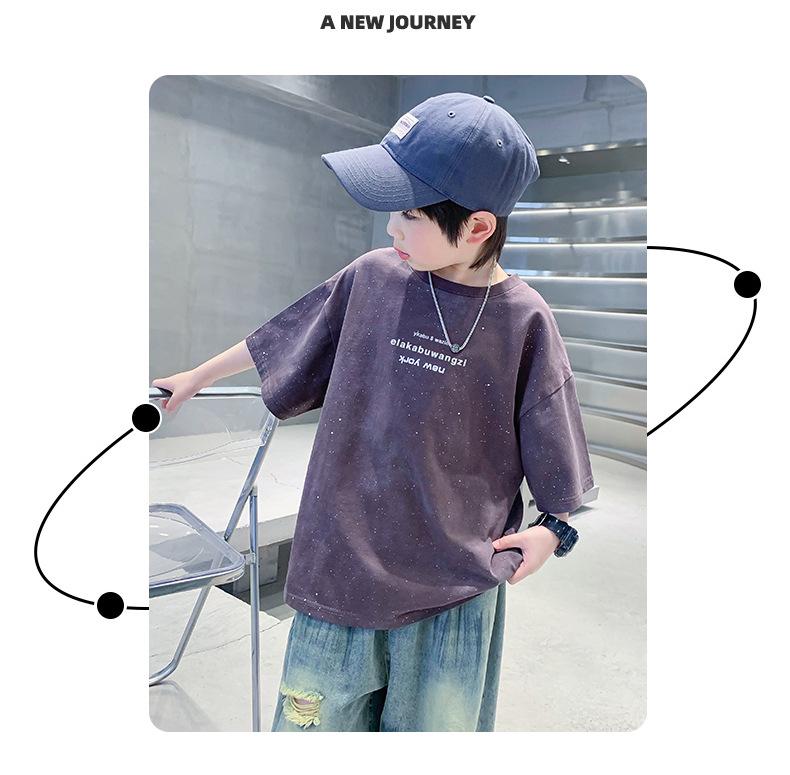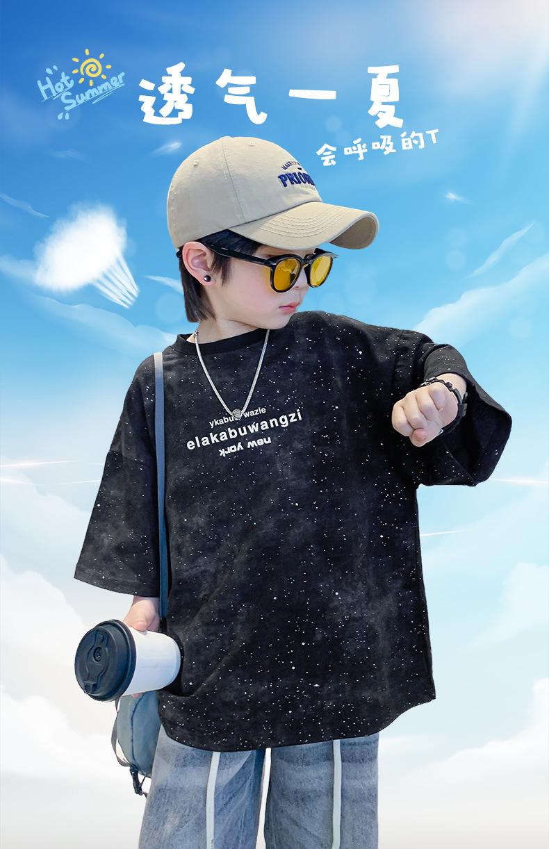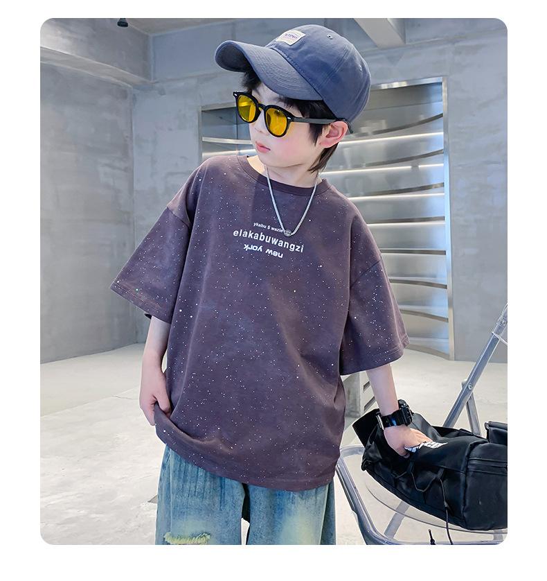 Camiseta de manga corta de marca de moda para niños Verano 2025 Nueva llegada Zhongda Camiseta de media manga de verano para niños Algodón puro Handsome Fried Street