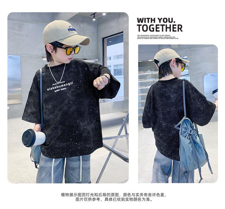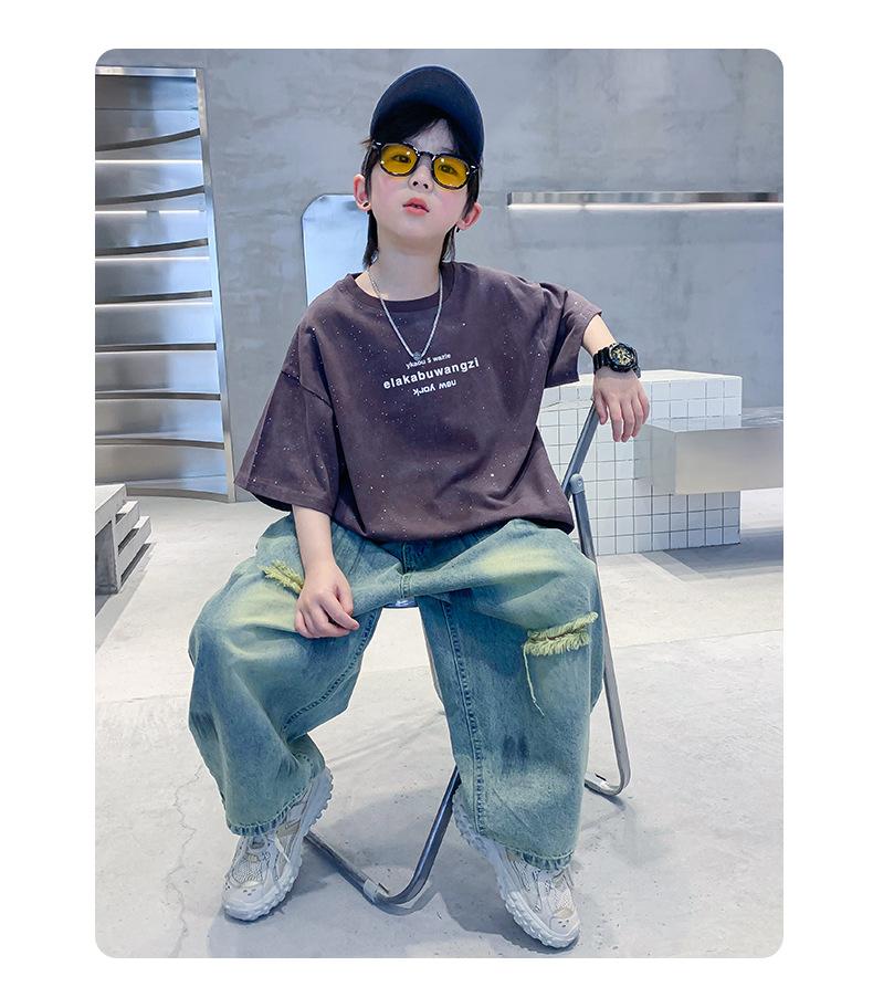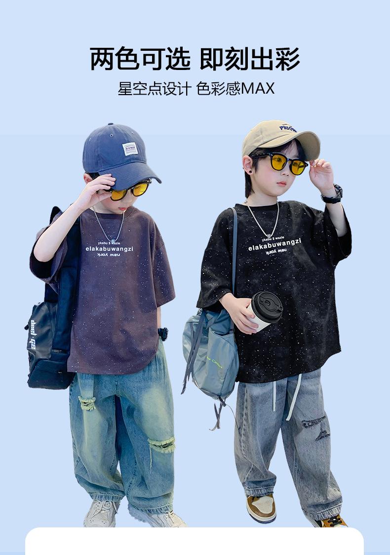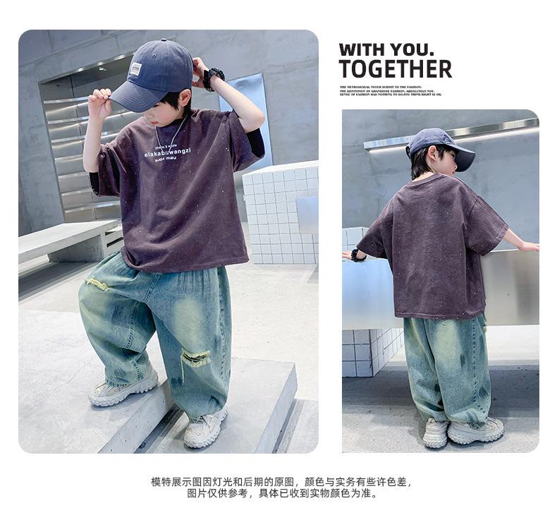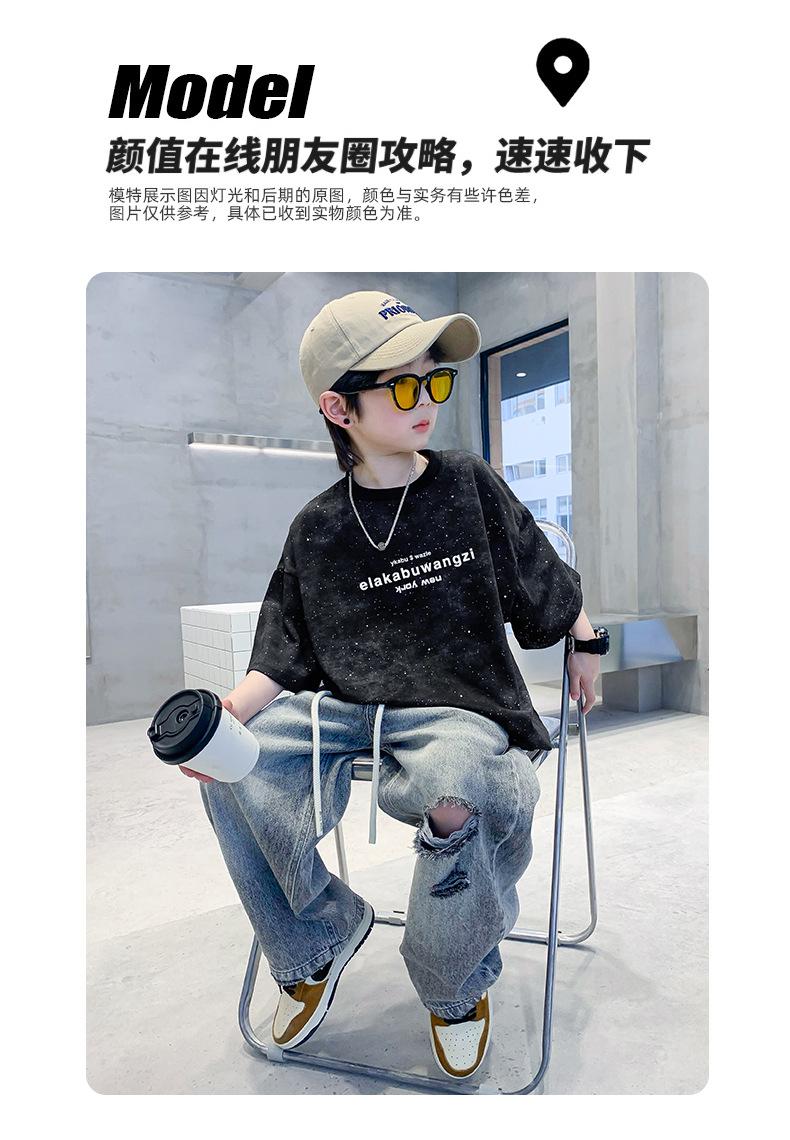 Camiseta de manga corta de marca de moda para niños Verano 2025 Nueva llegada Zhongda Camiseta de media manga de verano para niños Algodón puro Handsome Fried Street