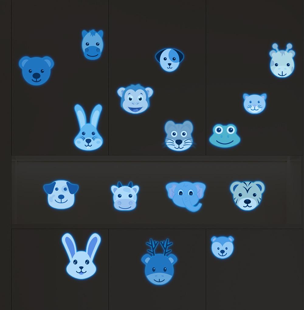 HP-YG004 Pegatinas luminosas con forma de cabeza de animal, diseño transfronterizo, para pared, para habitación infantil, autoadhesivas, fluorescentes