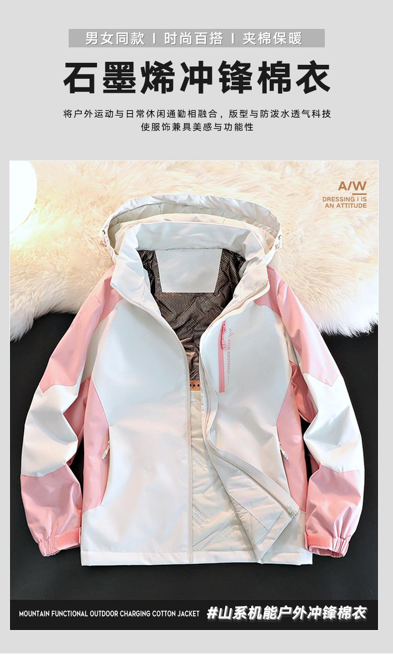 Abrigo acolchado de algodón con carga de grafeno para mujer, con capucha desmontable, resistente al viento, impermeable, para parejas, ropa de montañismo, chaqueta deportiva para exteriores para hombre