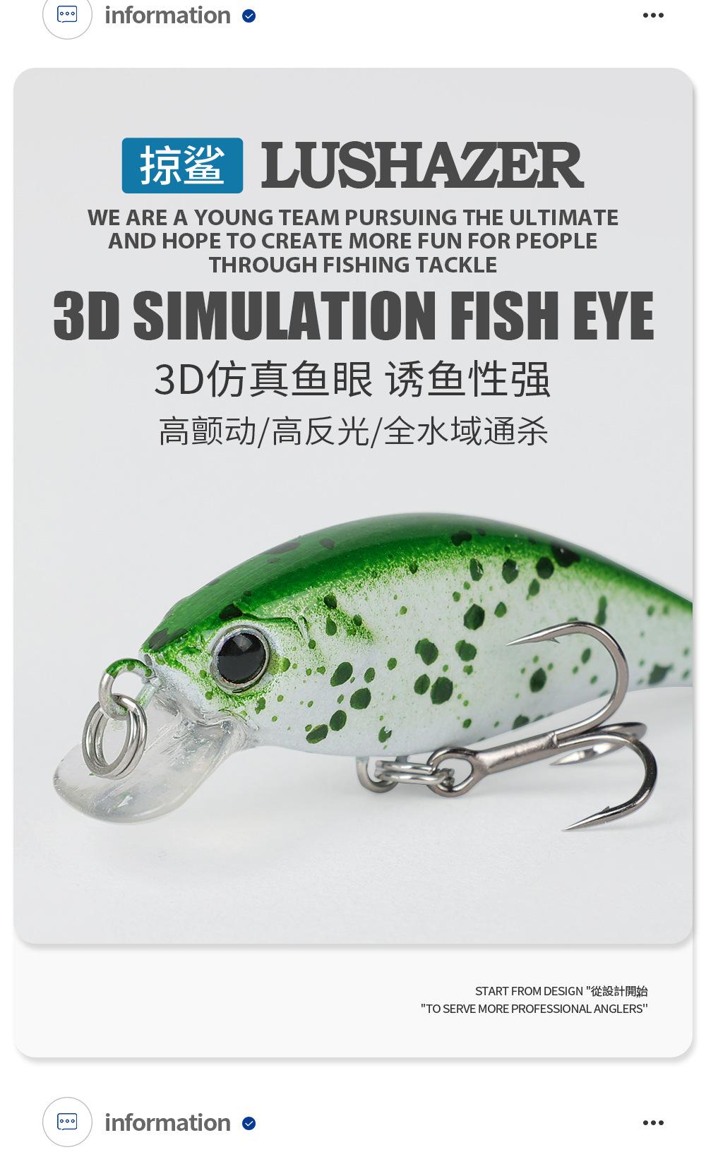 Tiburón Skimming | Cebo Mimi Micro Sumergible de 52 mm y 3,8 g, Cebo Duro Luya, Cebo Falso de Plástico, Cebo de Simulación, Equipo de Pesca